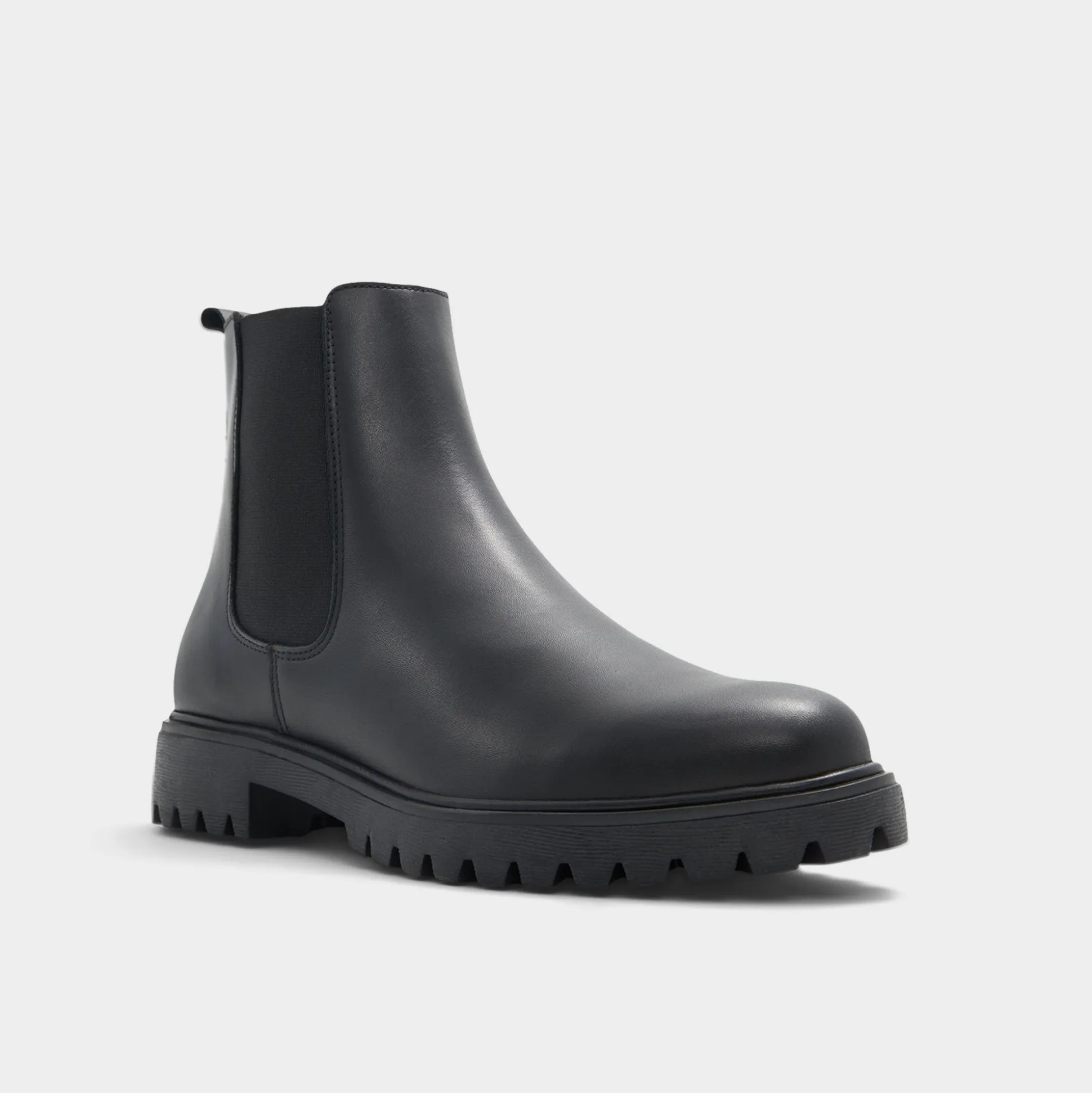 Supple black leather sharpens these Chelsea boots’ clean lines, with stretch panels and a chunky lug sole providing confident grip and just-enough lift to roam slick sidewalks or jump curbs without overthinking it. Pair with cropped denim for coffee commutes, or anchor a knitted midi when late-night hangs require warmth without sacrificing polish.