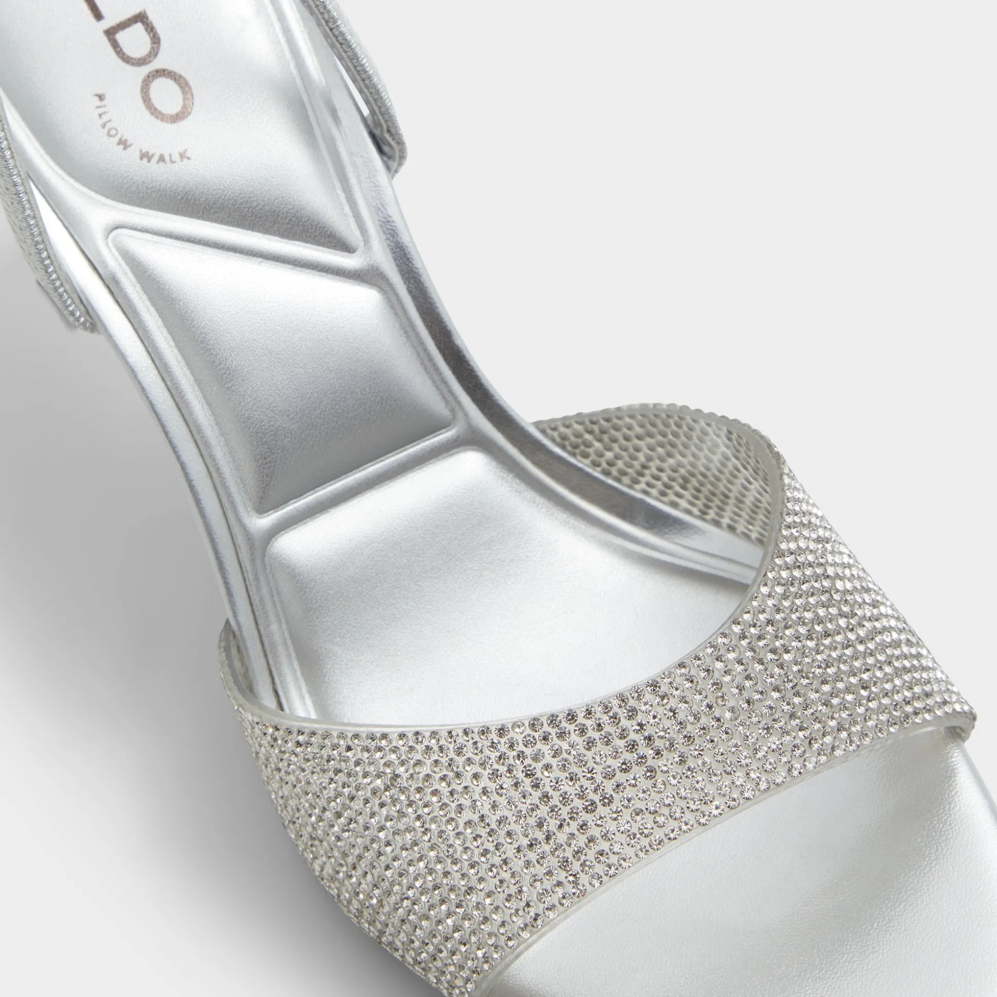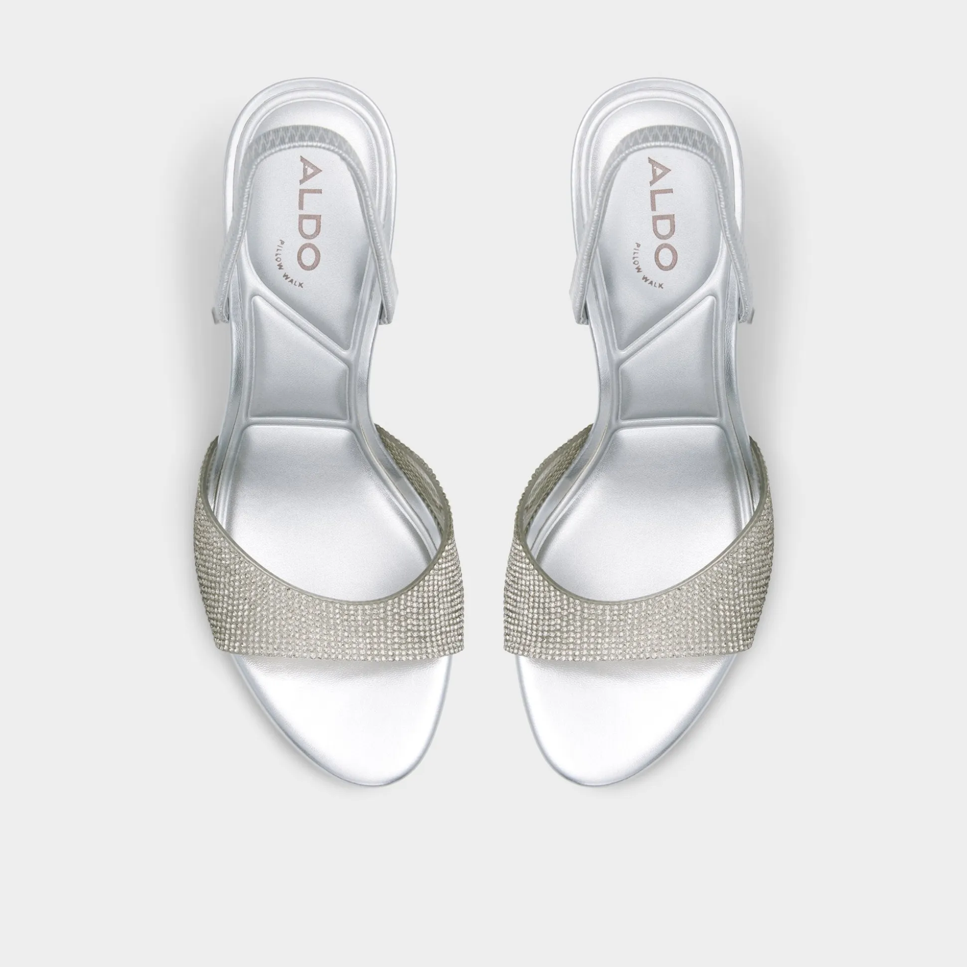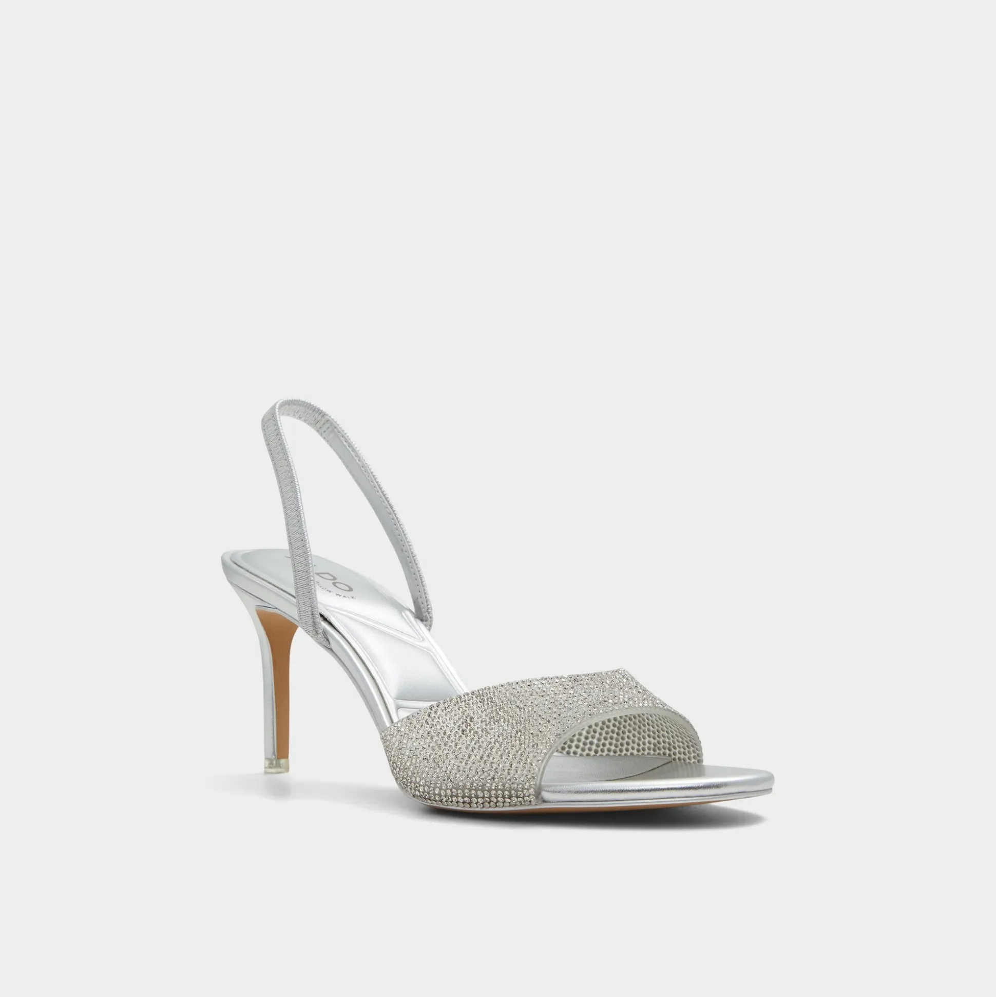 A classic sling back silhouette lends sophisticated appeal to these elegant nude heeled sandals.