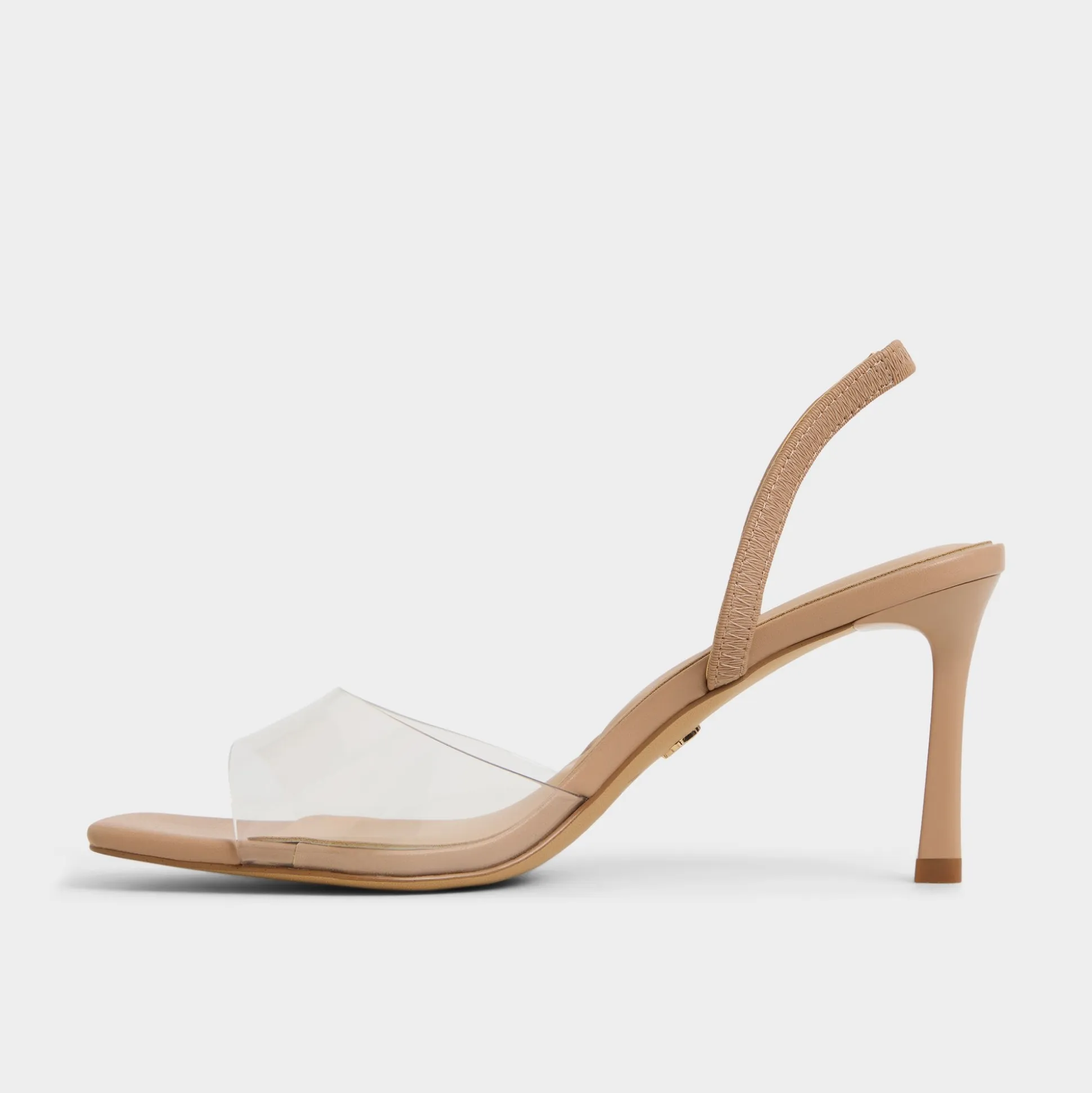 Barely-there clear PVC glides over a softly squared toe, while a slender slingback stiletto and cloud-soft padding promise calm confidence from elevator to after-hours sparkle through busy commutes and midnight strolls. Pair with tailored shorts for gallery afternoons, or slip beneath a satin dress when rooftop cocktails beckon.
