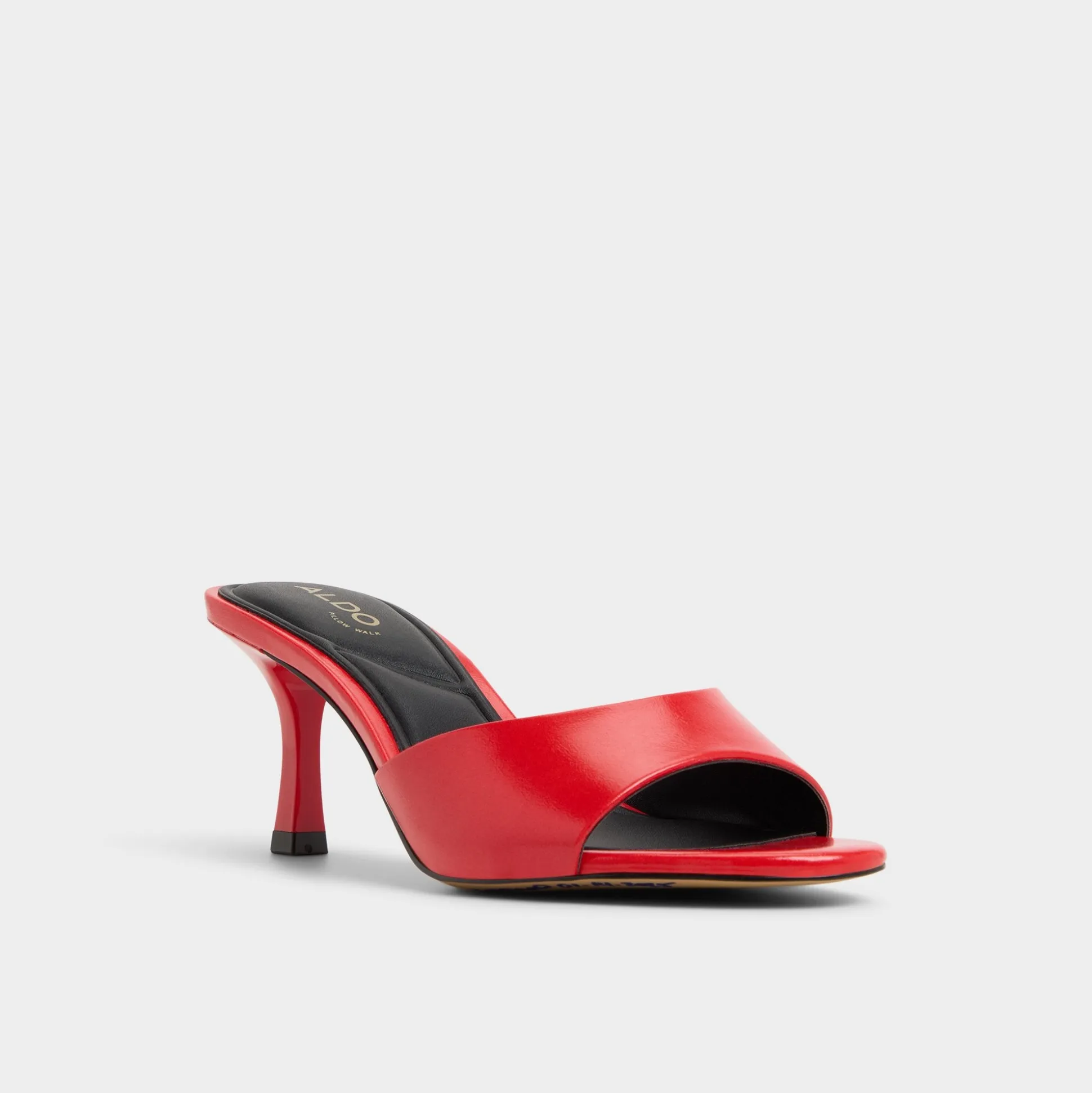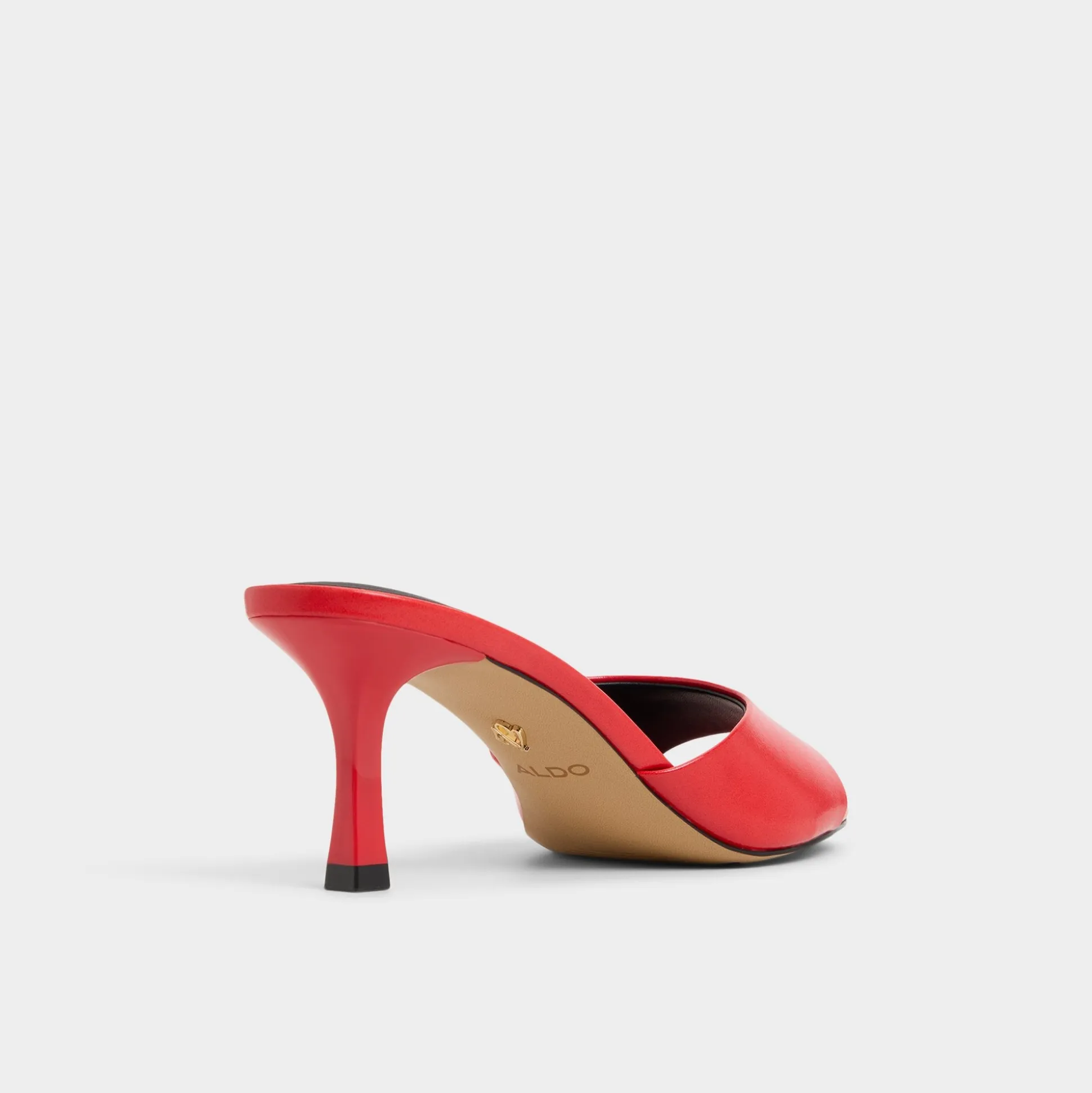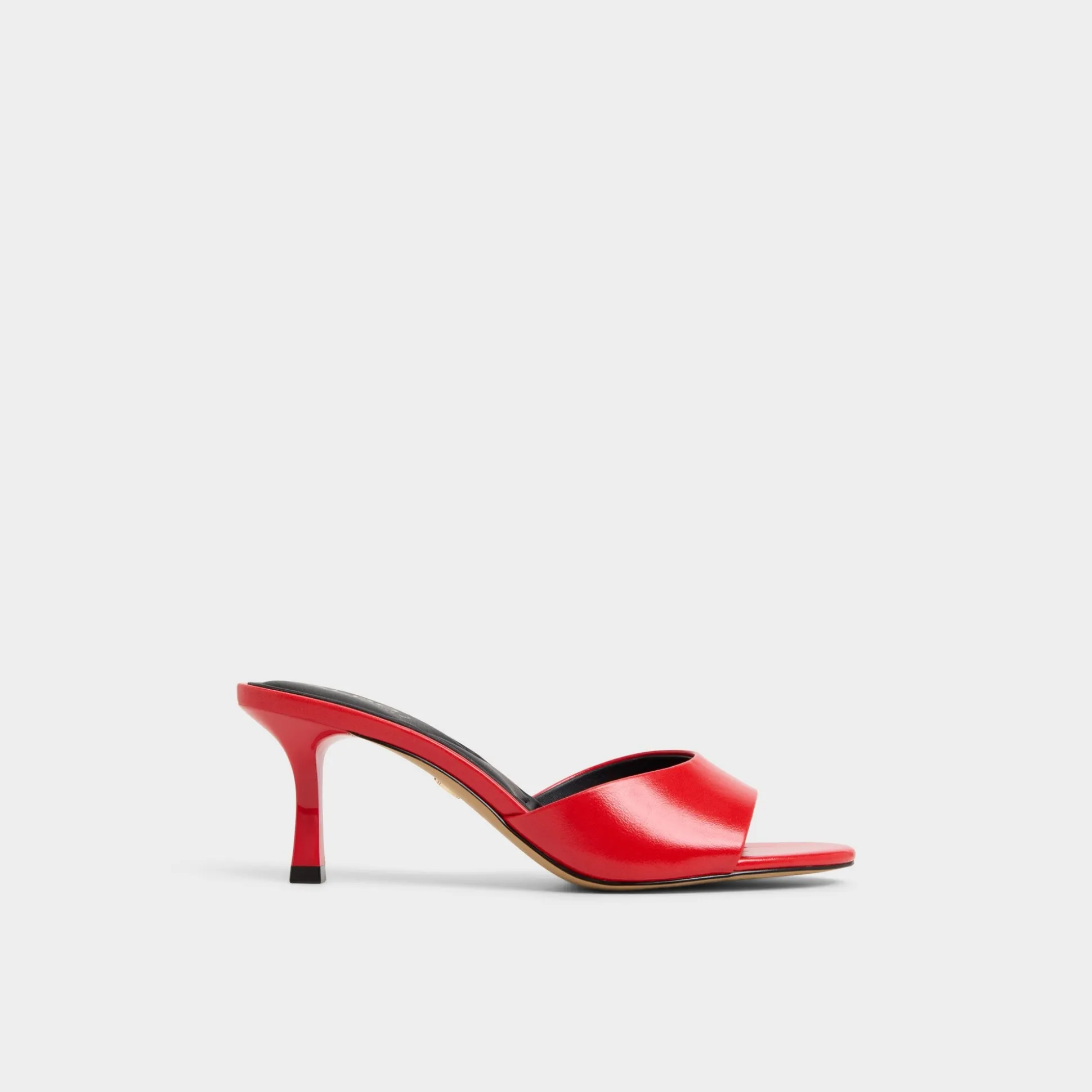 Fire-red leather curves across the foot, meeting a cushioned square footbed and a poised stiletto heel that turns each step into a confident flicker of energy. Pair with cropped suiting for gallery openings, or slide on with a slinky slip dress when late-night tapas calls for effortless allure.