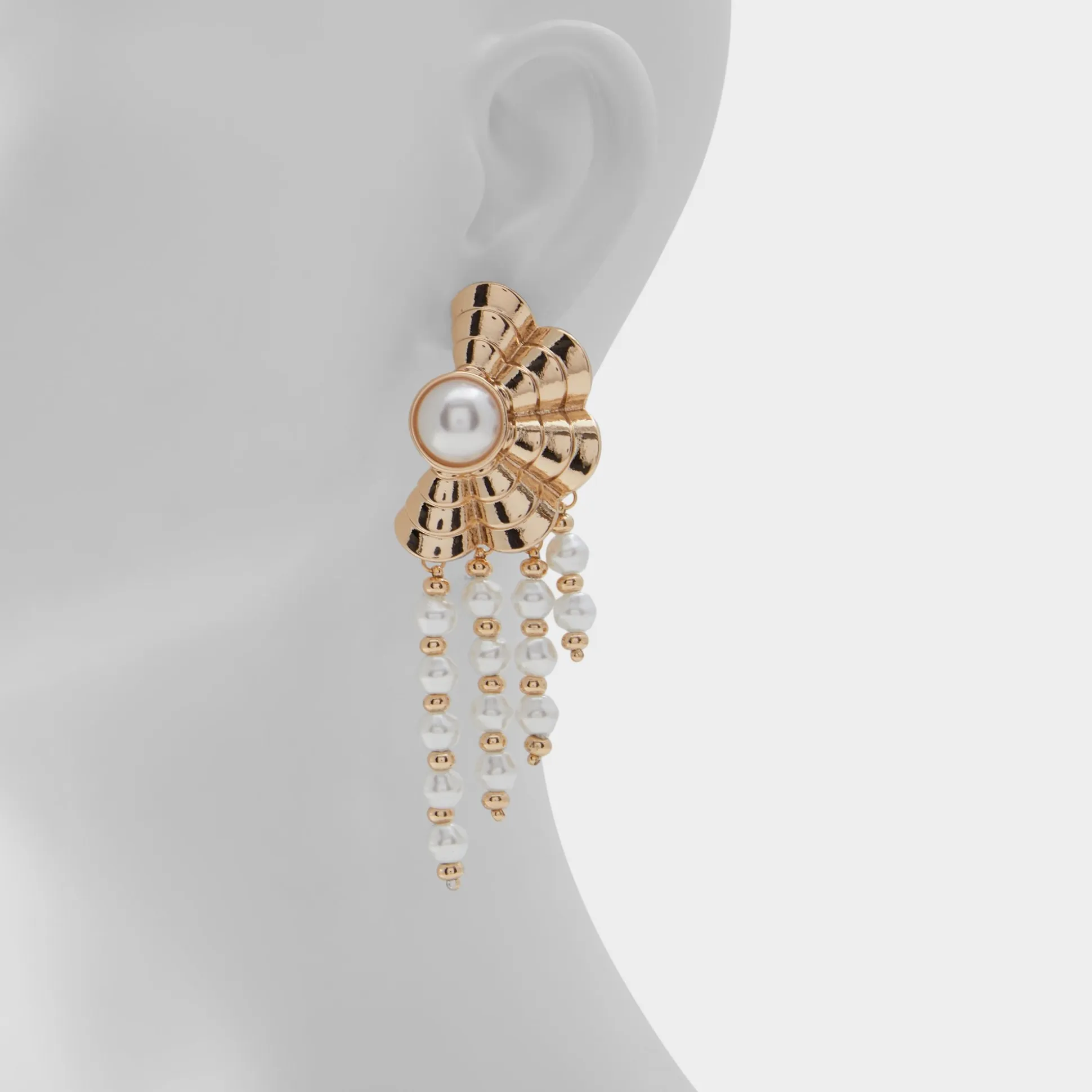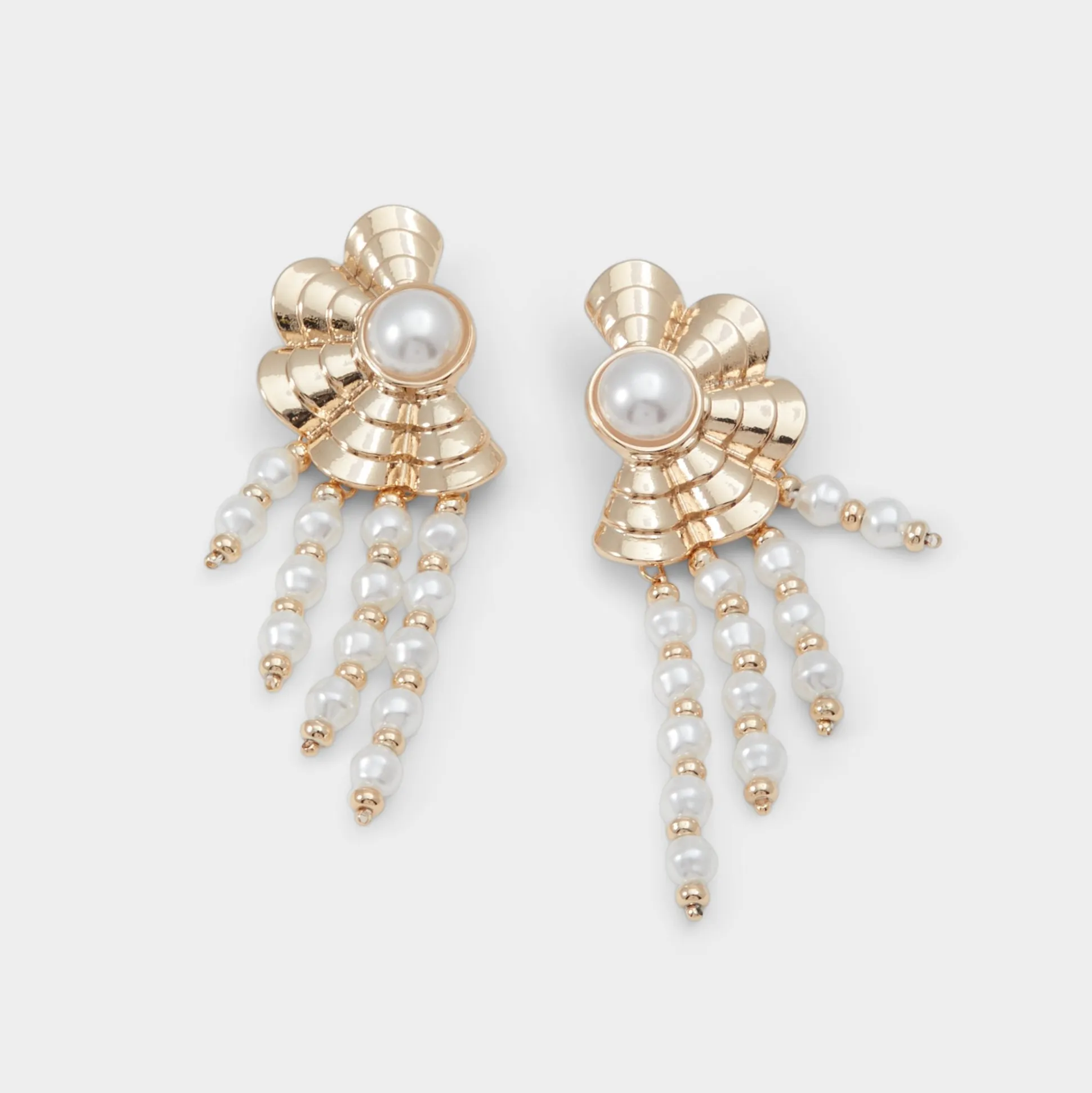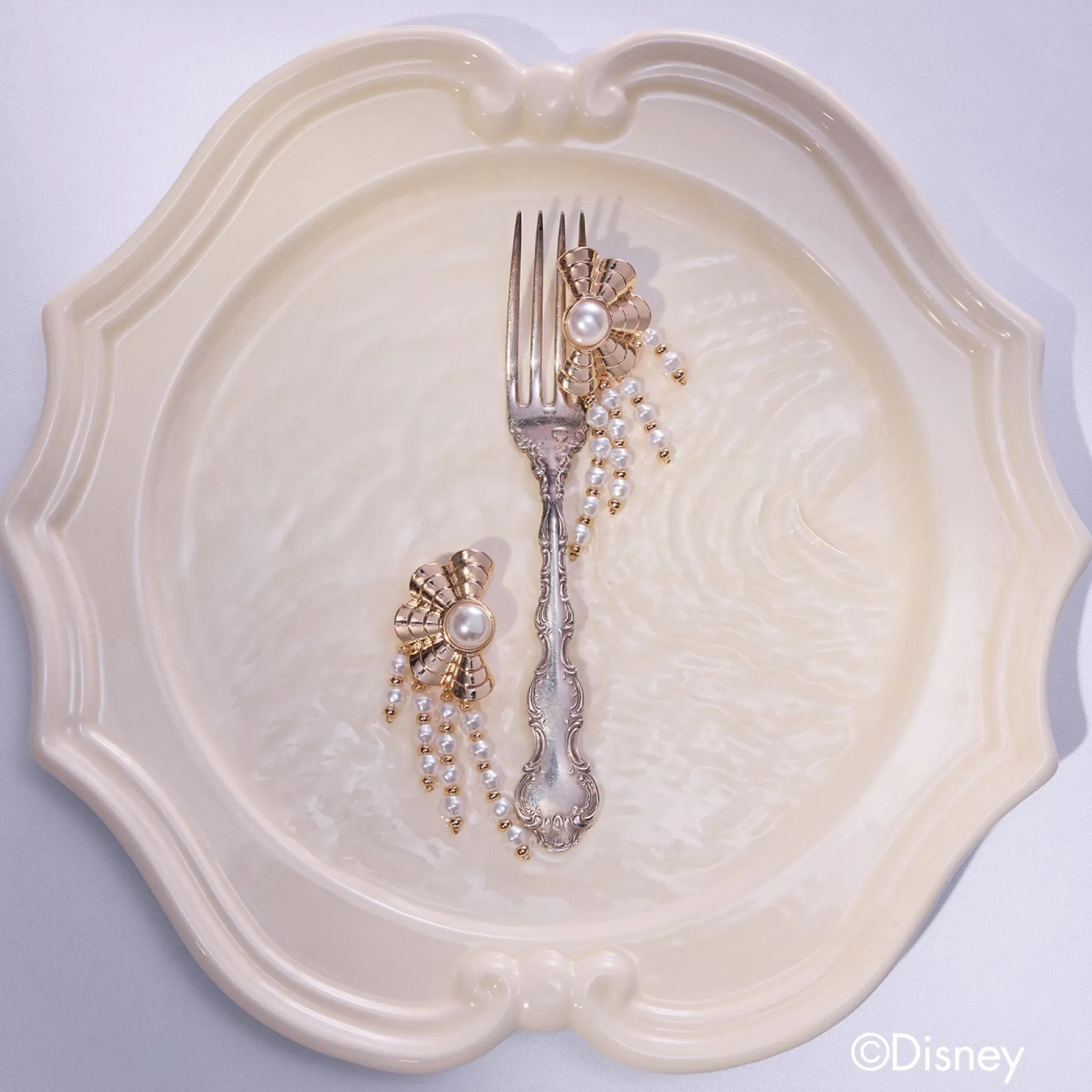 Dive into a world of elegance with these Ariel-inspired earrings. Crafted with a gold fan shape and drop pearl detail, these earrings capture the enchanting beauty of the sea.