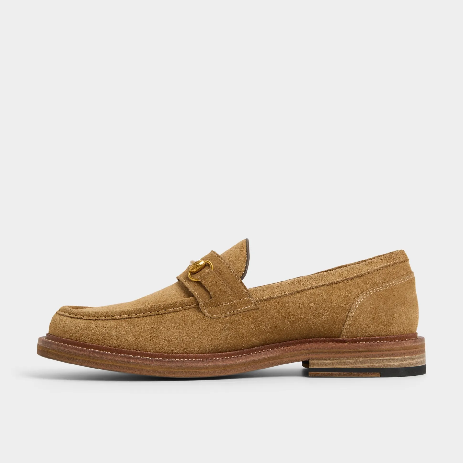 Honey-tan suede shapes lines across this loafer, with a brass bit catching the light as a signature that travels from dawn to streets, while the sole cushions every step anywhere consistently. Pair with chinos for tours or tuck under a suit for city events today.