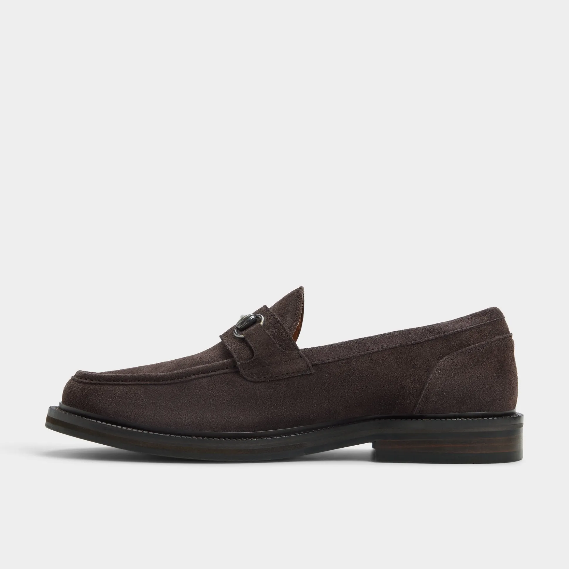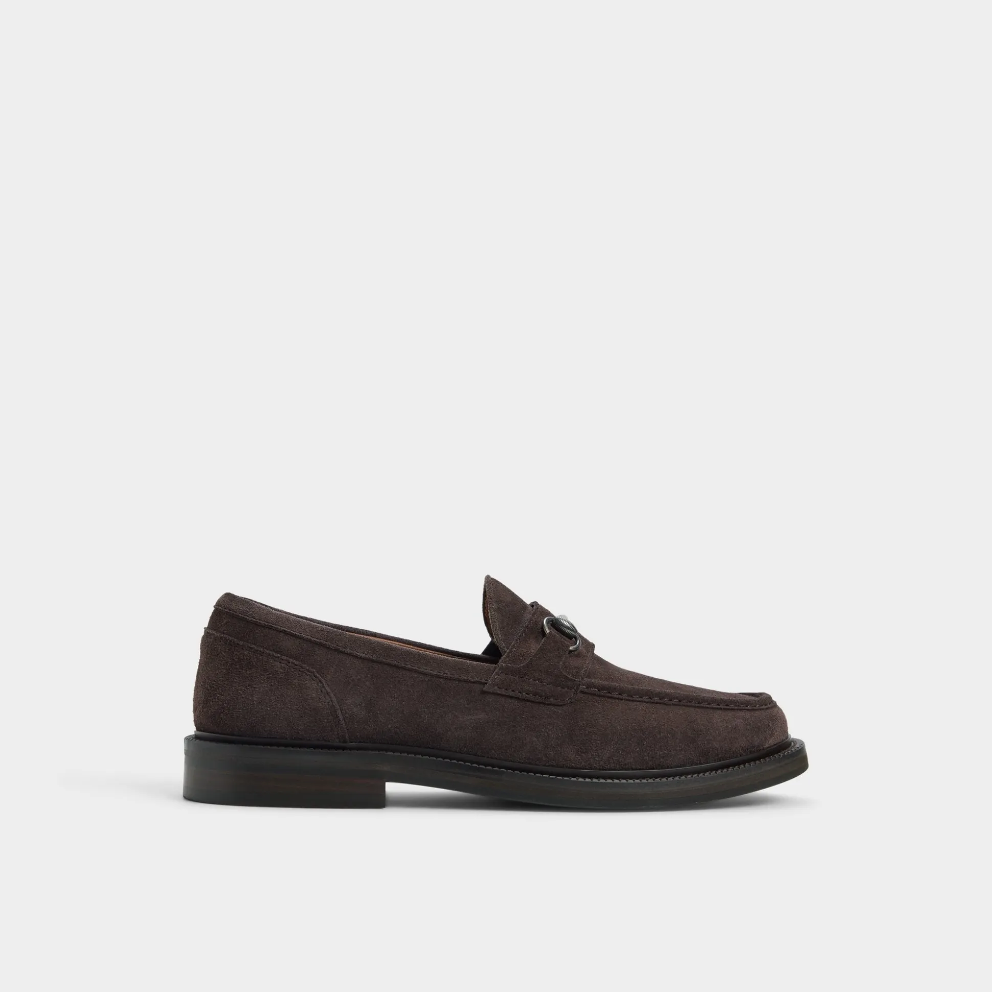 Mocha suede drapes this streamlined loafer in a cozy, refined silhouette, with a gunmetal bit on the vamp adding subtle confidence and a stitched leather cupsole guiding every step. Pair it with grey flannel trousers for morning meetings, or cuffed chinos at patio dinners, and watch the warmth adapt from boardroom to after-hours.