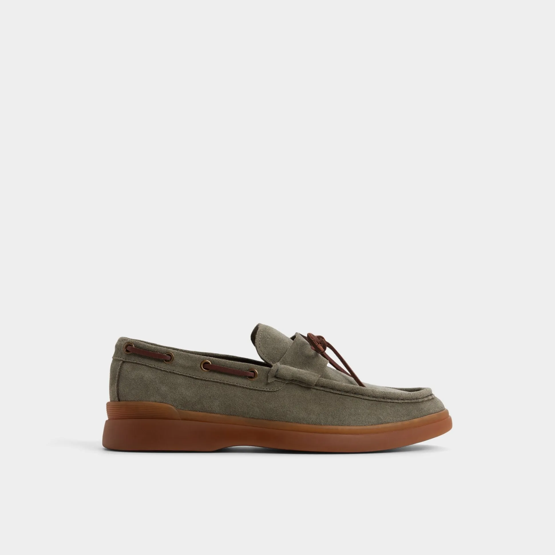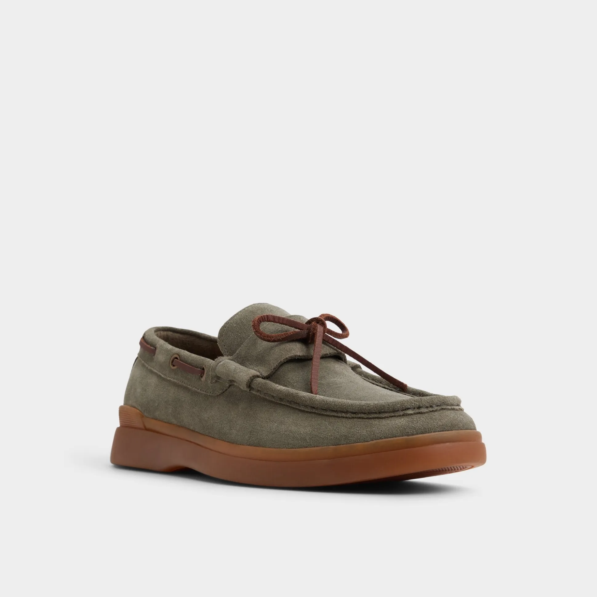 Olive-toned suede meets genuine leather in these boat shoes, offering a balanced style with smooth traction over any terrain, thanks to their comfortable and durable build. Wear them with confidence from boardwalk strolls to city sidewalks-the earthy palette effortlessly complements whatever summer destination is next on the list.