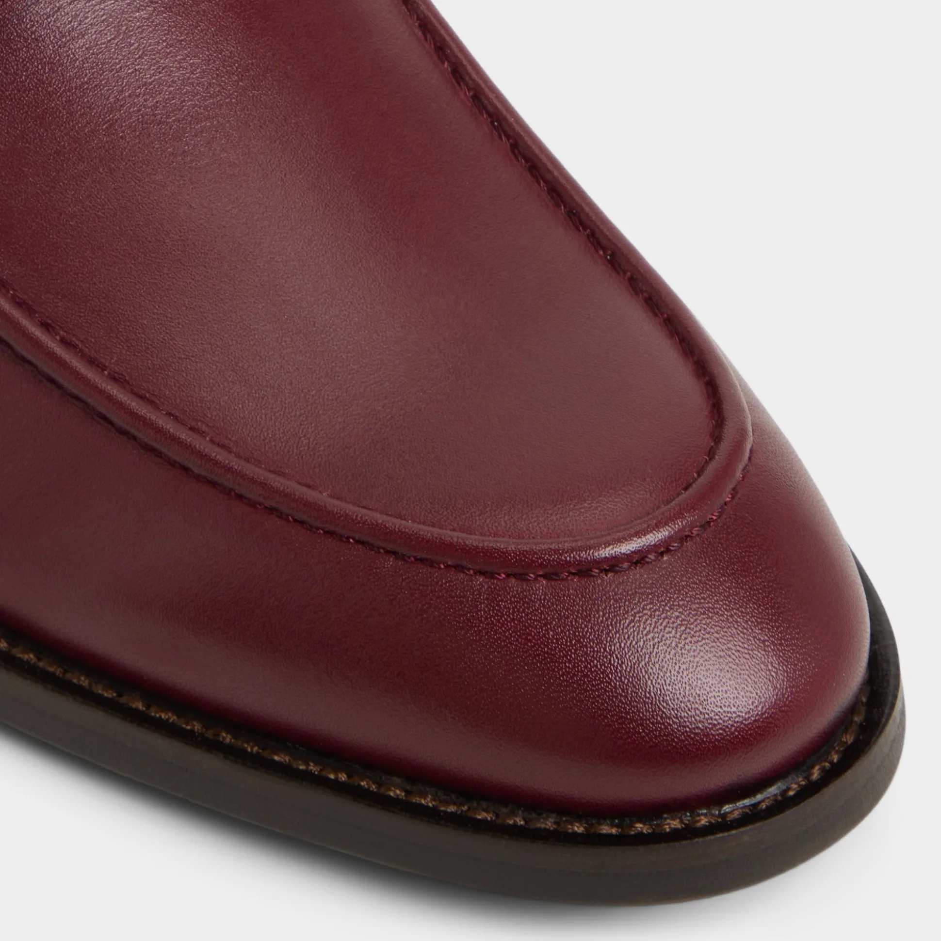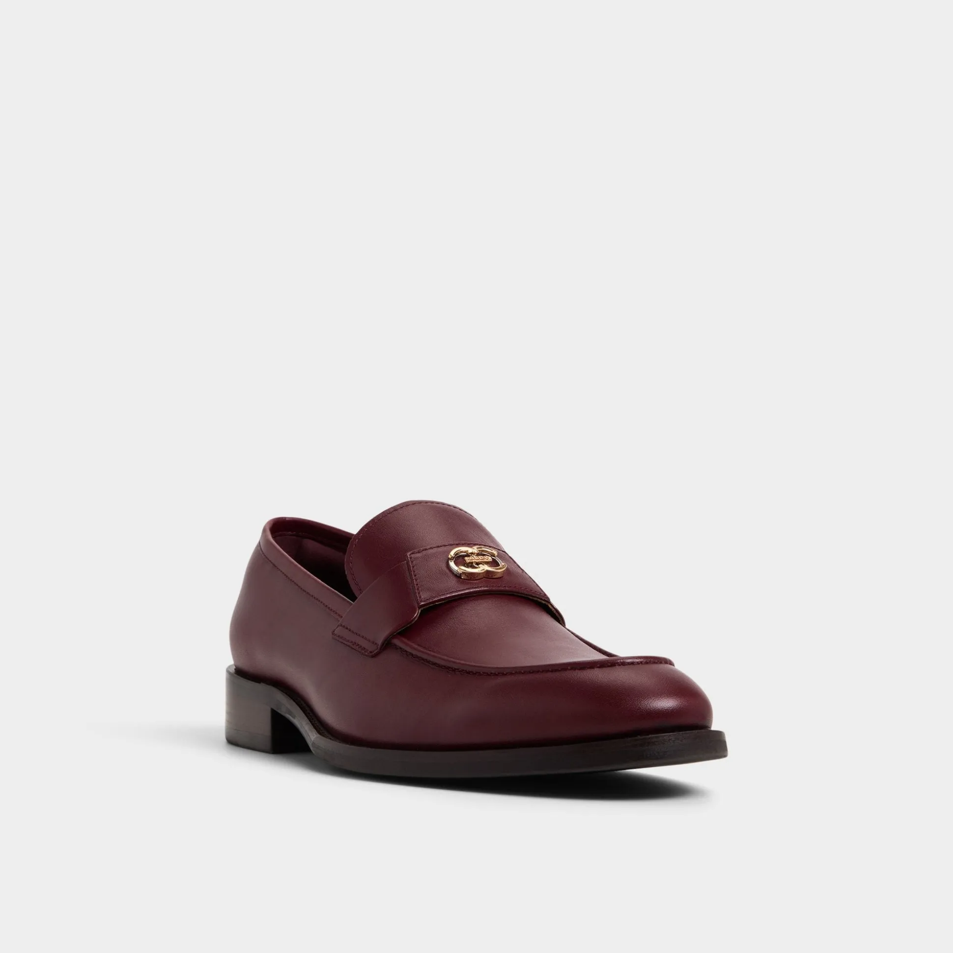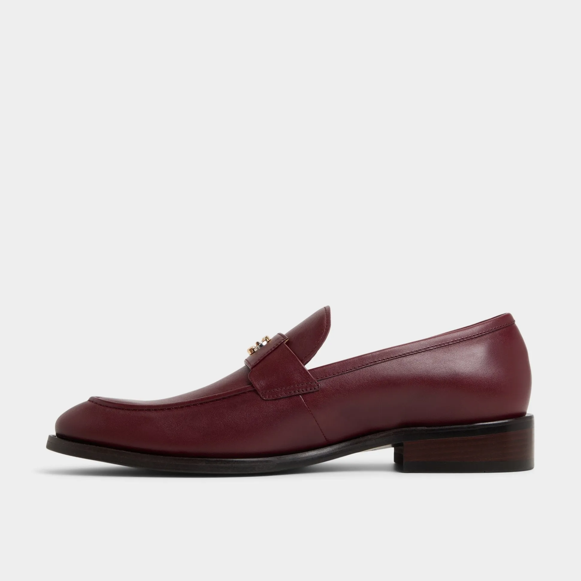 Burgundy leather meets chain-linked detail on this loafer, with soft lining and a low stacked heel that keeps steps smooth from boardroom moments to after-work plans, while a metal accent adds shine. Pair it with a tailored suit for presentations or cuffed chinos for gallery nights, letting the finish spark conversations.