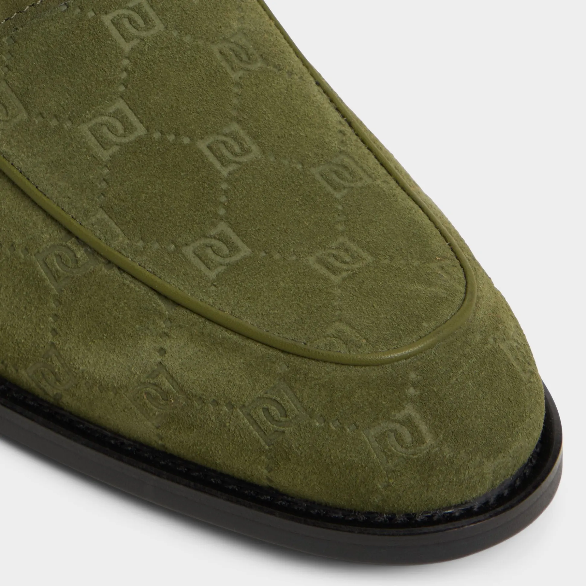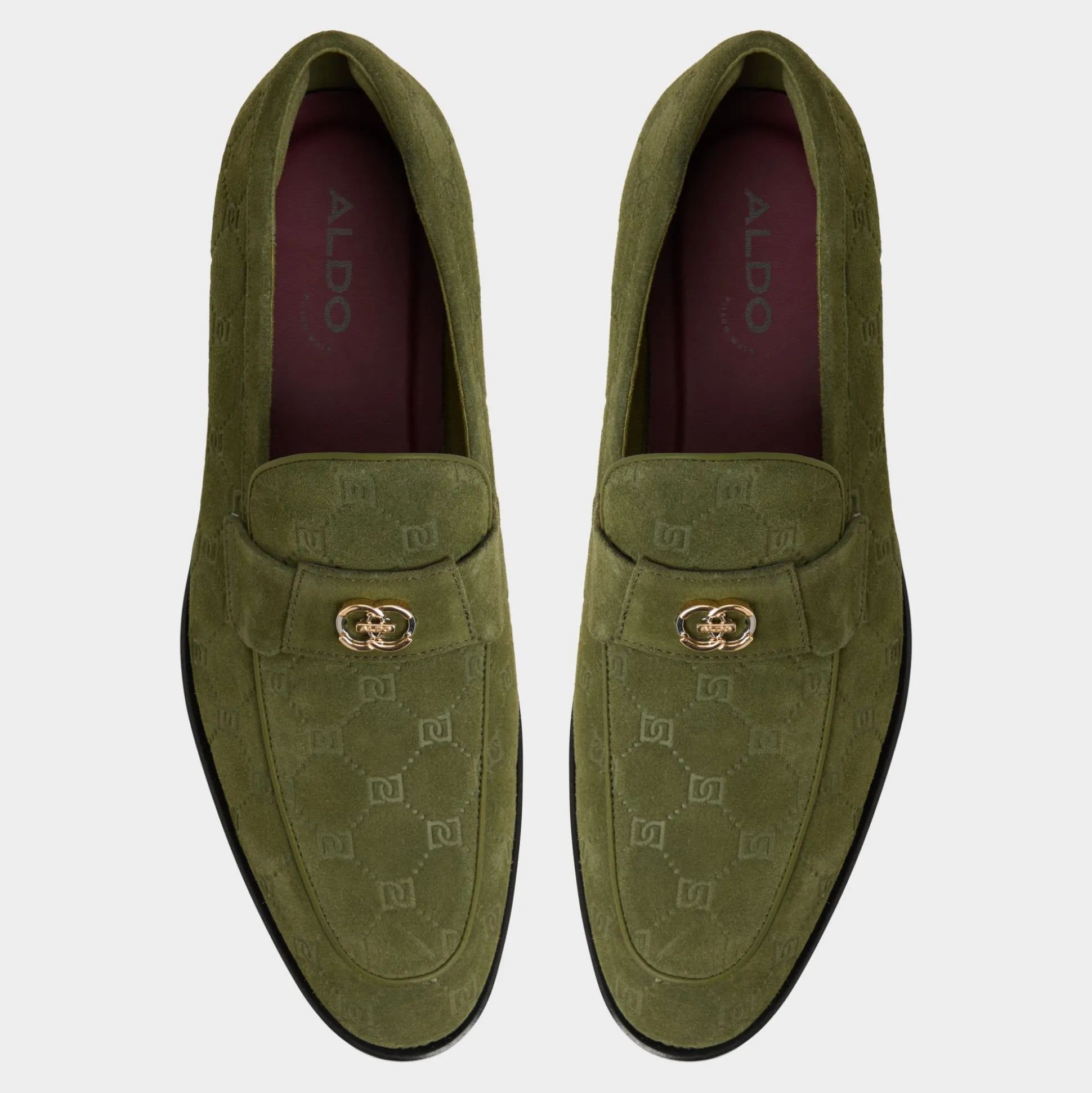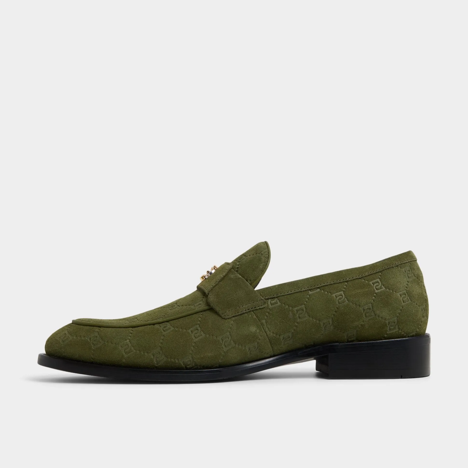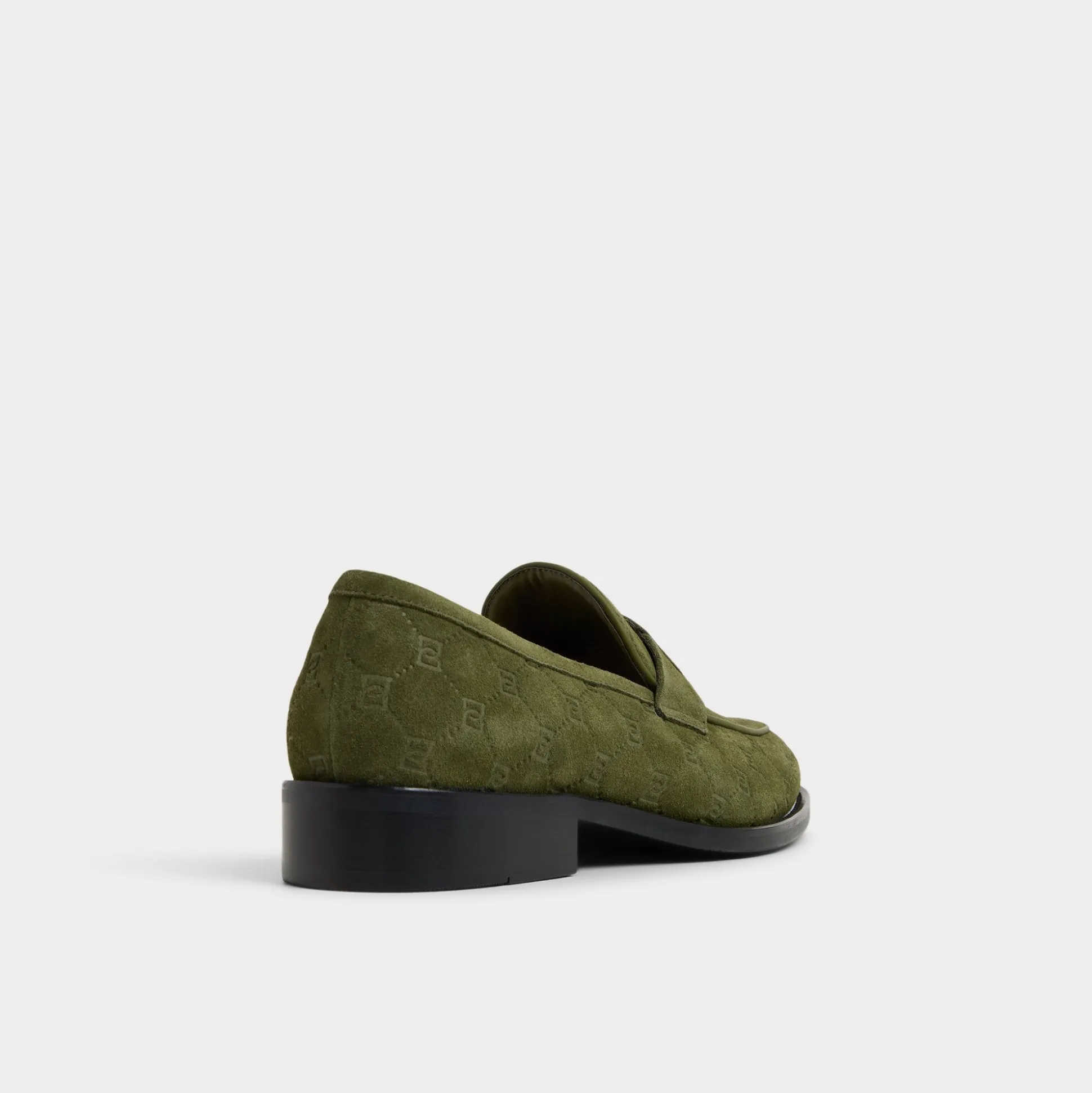 Olive suede with subtly embroidered monograms radiates a cool confidence, seamlessly complemented by polished gold chains and refined soles, offering an understated elegance from your first steps to late-night adventures. Pair it with fitted jeans for casual meet-ups or dress it up with dark trousers for evening gatherings-either way, it leaves a lasting impression.