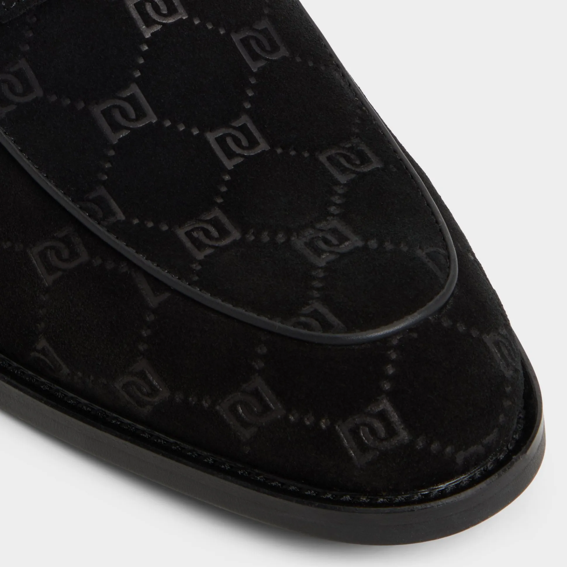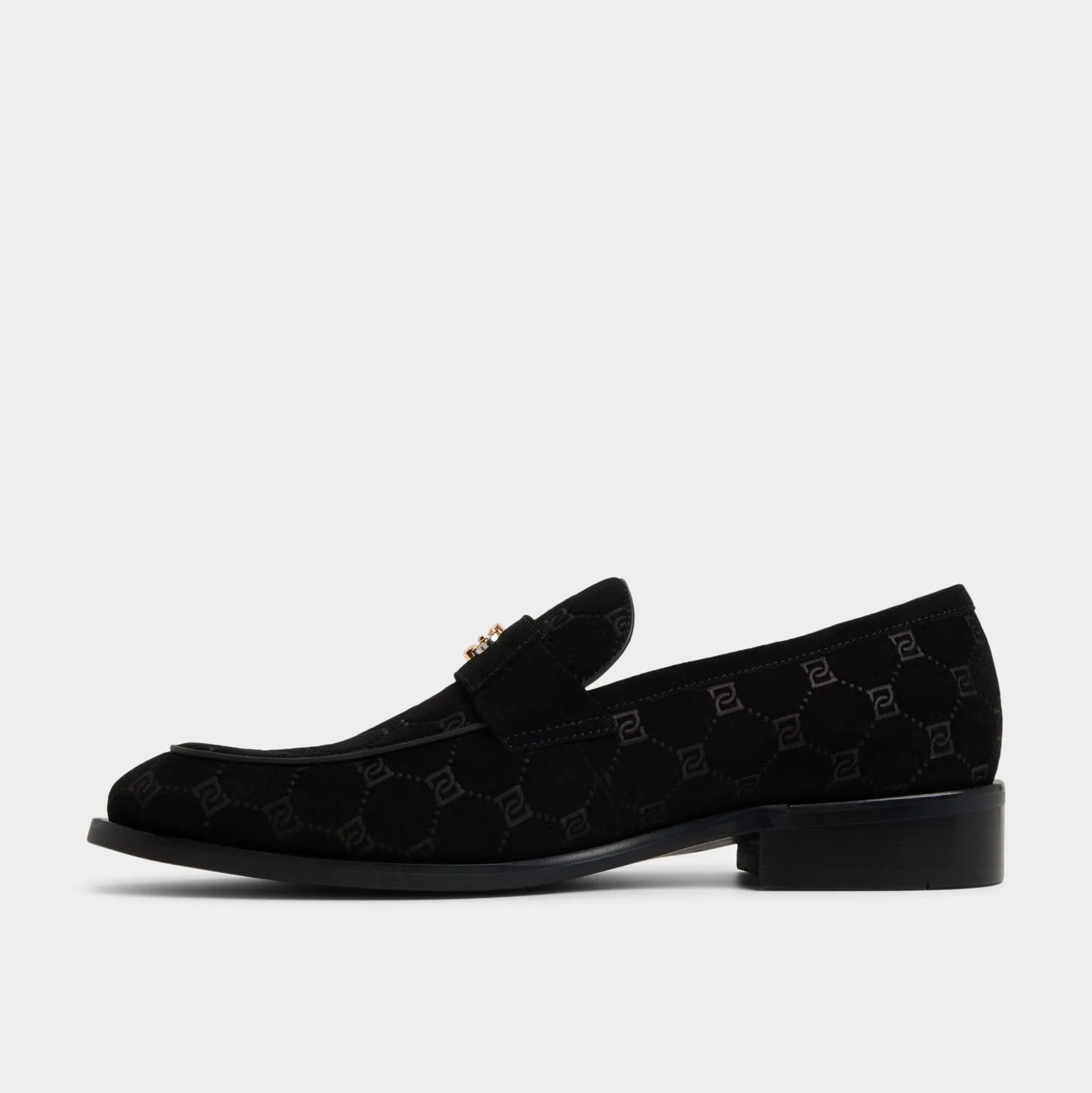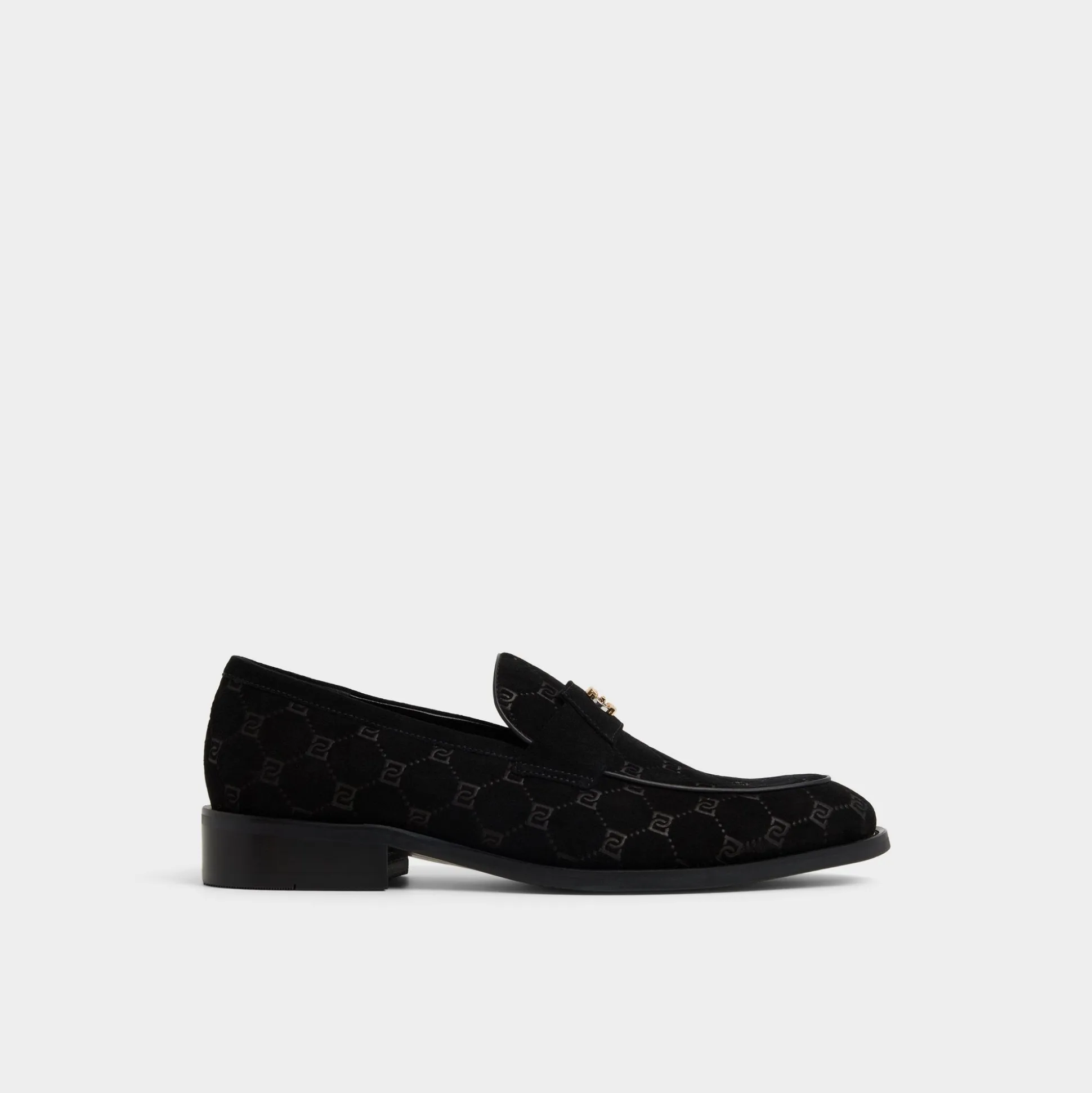 Monogram-embossed suede gives this black loafer a refined texture, with a brushed gunmetal bit adding a touch of shine, and a flexible rubber sole ensuring comfort all day and into the night. Pair it with a slim charcoal suit for client meetings or cuffed black jeans at jazz-bar nights.