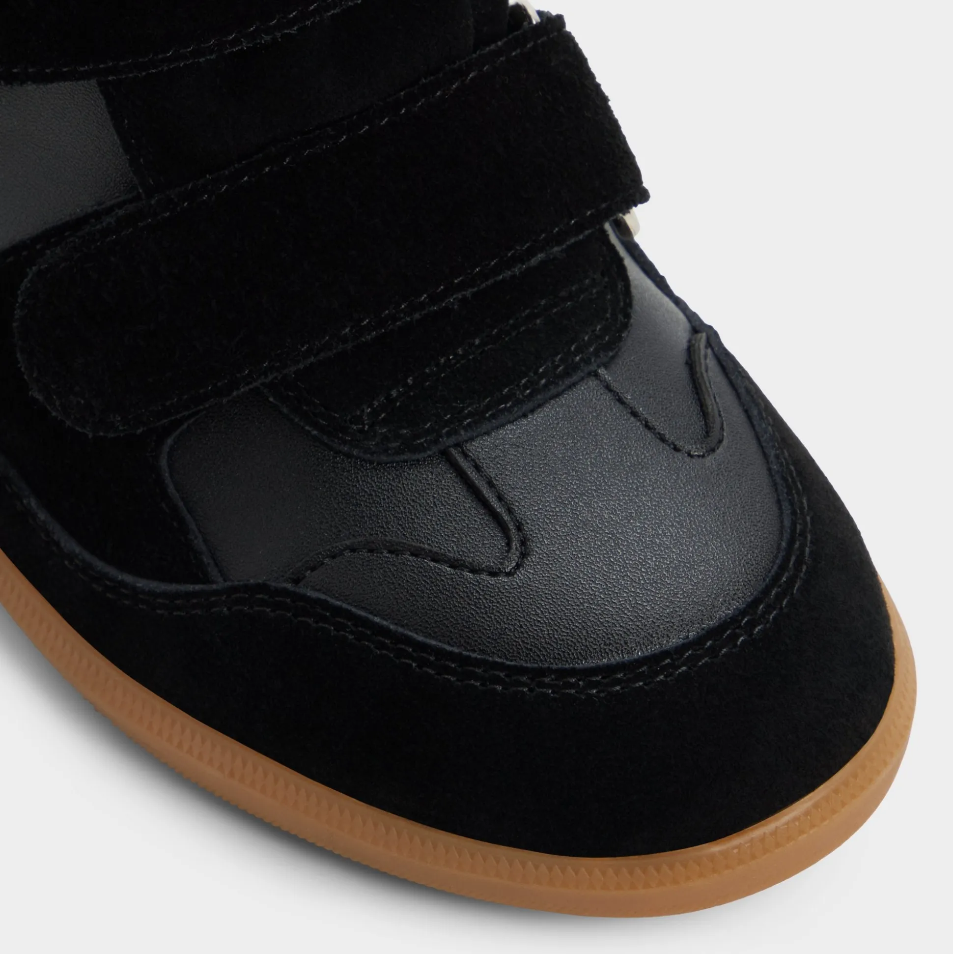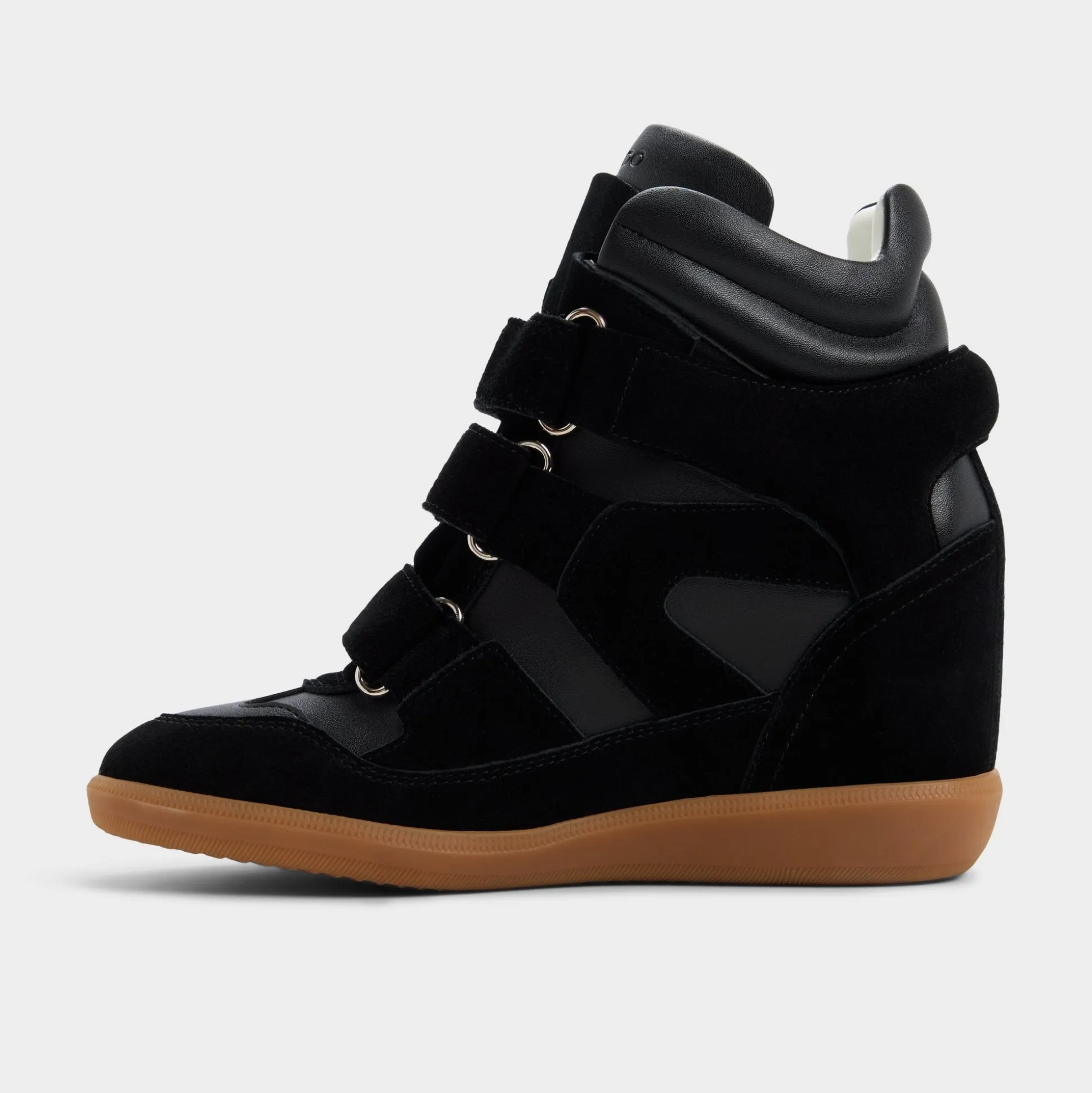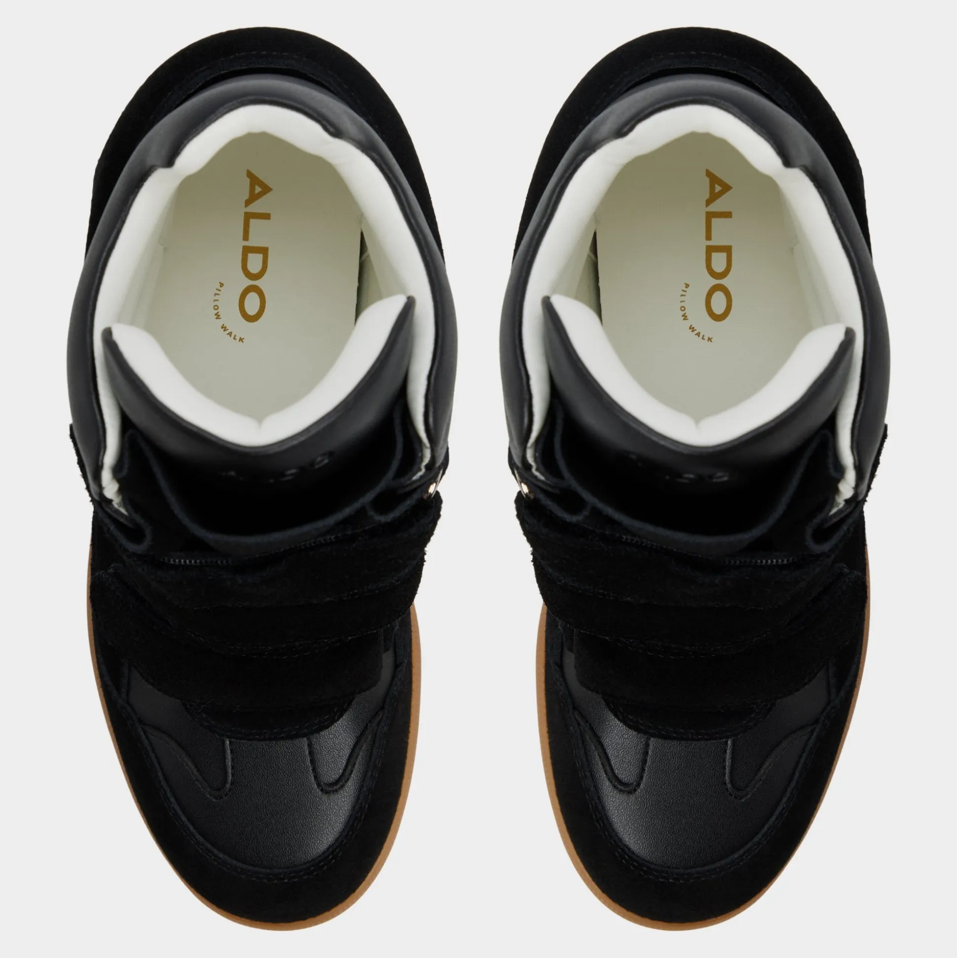 Hidden wedge height reshapes the silhouette in this suede-and-leather high-top, pairing backstage-ready lift with street-smart stacked velcro straps and a calm, confident stride that feels as effortless as it looks. Pair with cropped joggers for fast commutes, or swap in a ribbed mini and bomber when city lights glow.