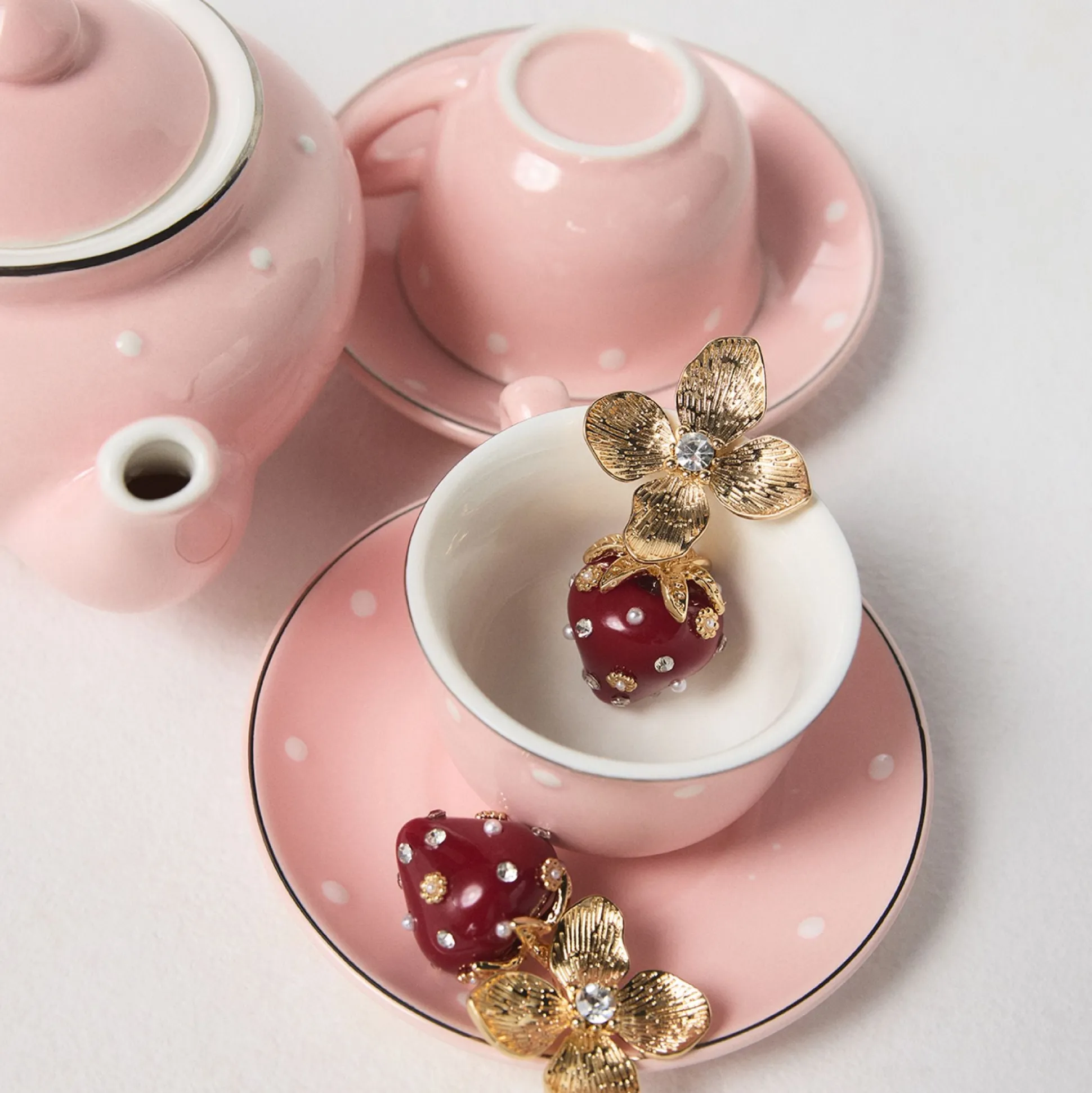 Berrybloom earrings blend delicate florals with charming strawberry details for a romantic Valentine’s Day look. Sweet, lightweight, and perfect for gifting or self-love.