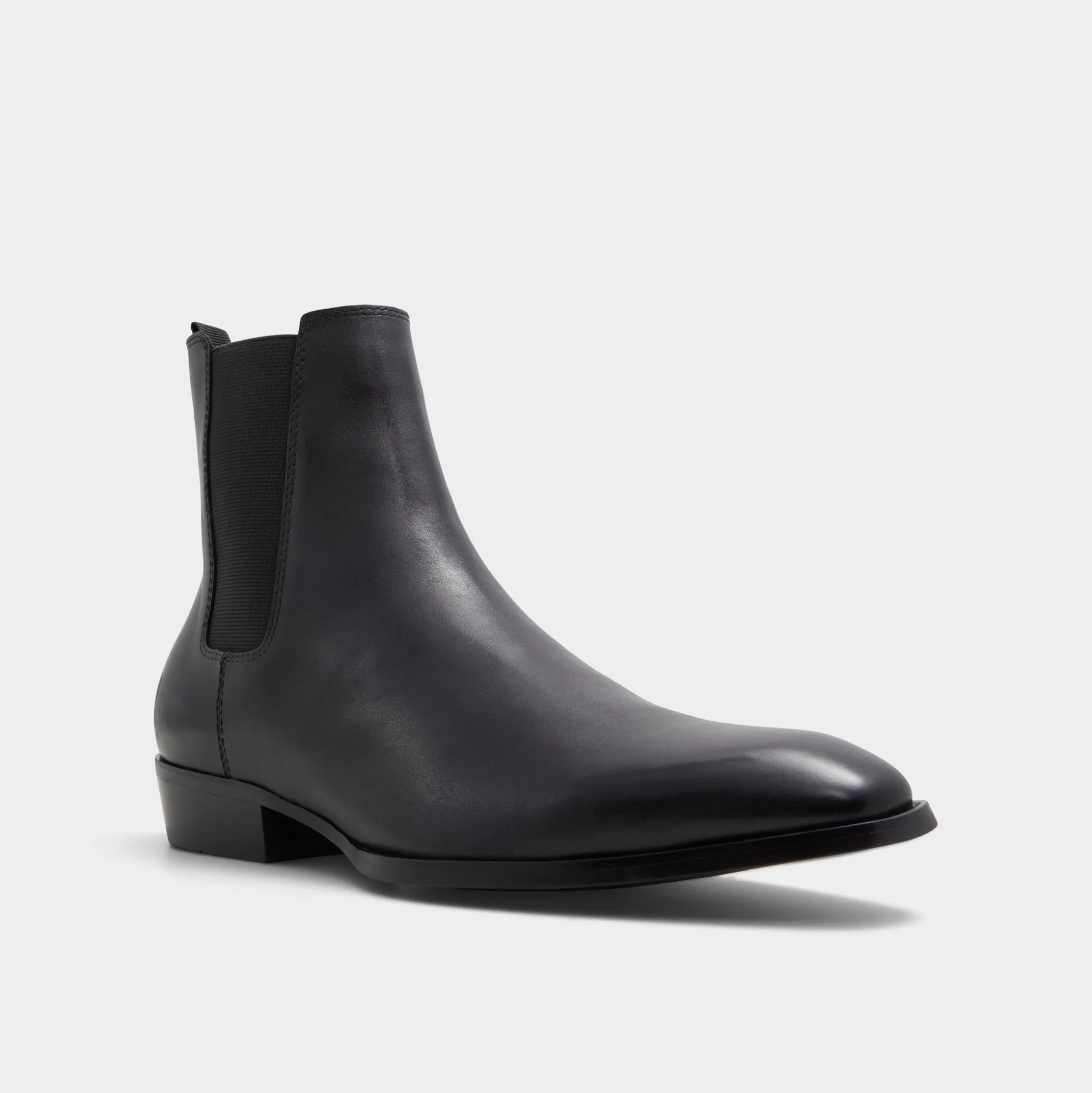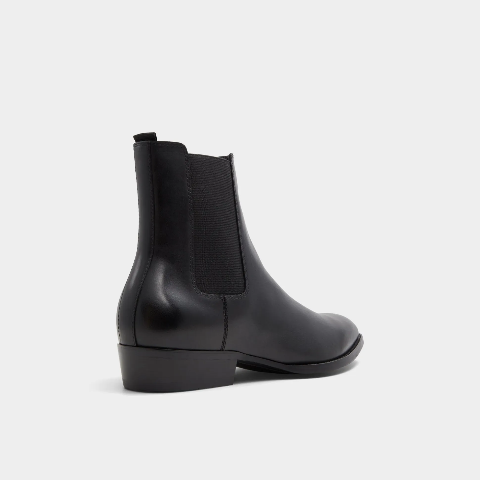 Mirror-sleek black leather seamlessly complements deep tonal elastics on this minimalist Chelsea boot, ensuring a streamlined look while a flexible rubber sole and low block heel allow for comfortable walking all day. Pair with slim wool trousers for pitch meetings, or roll with black denim for gallery nights-its minimal design fits effortlessly.