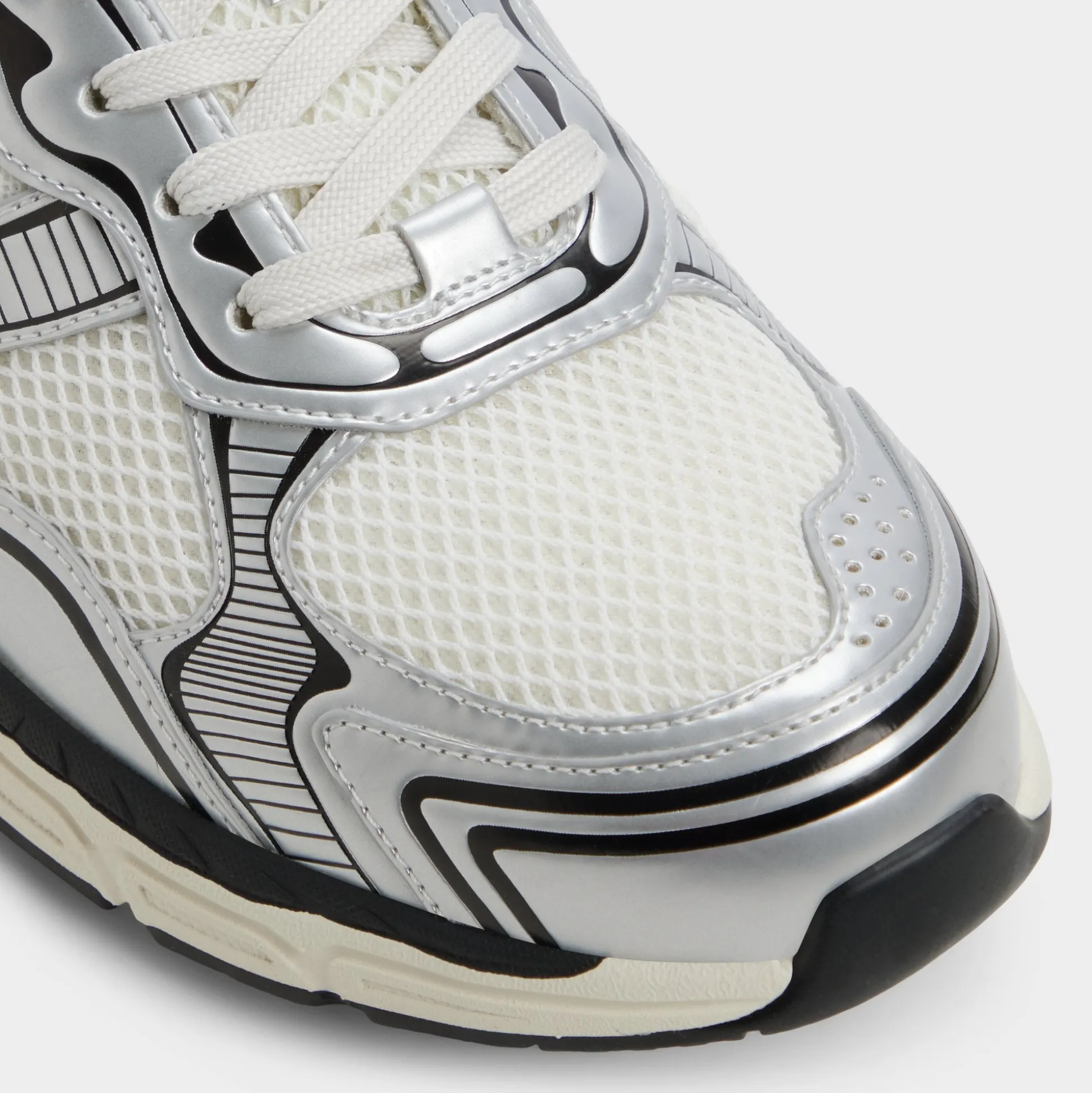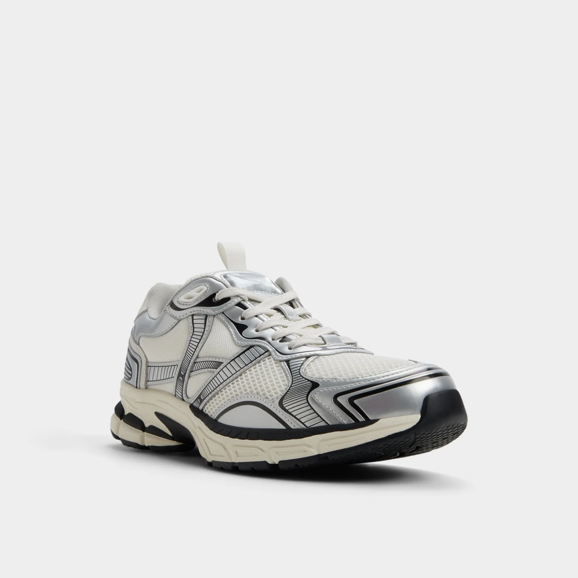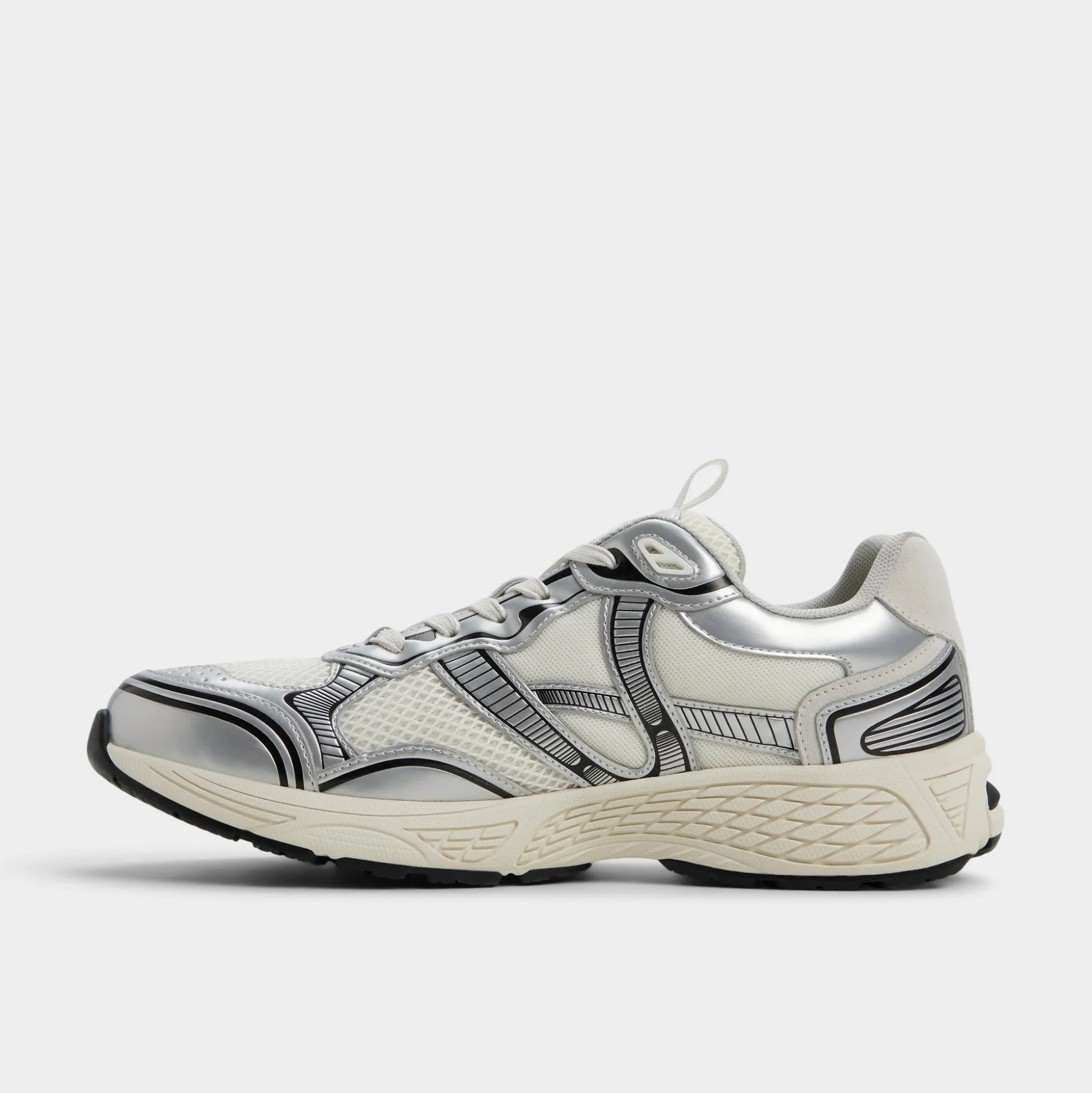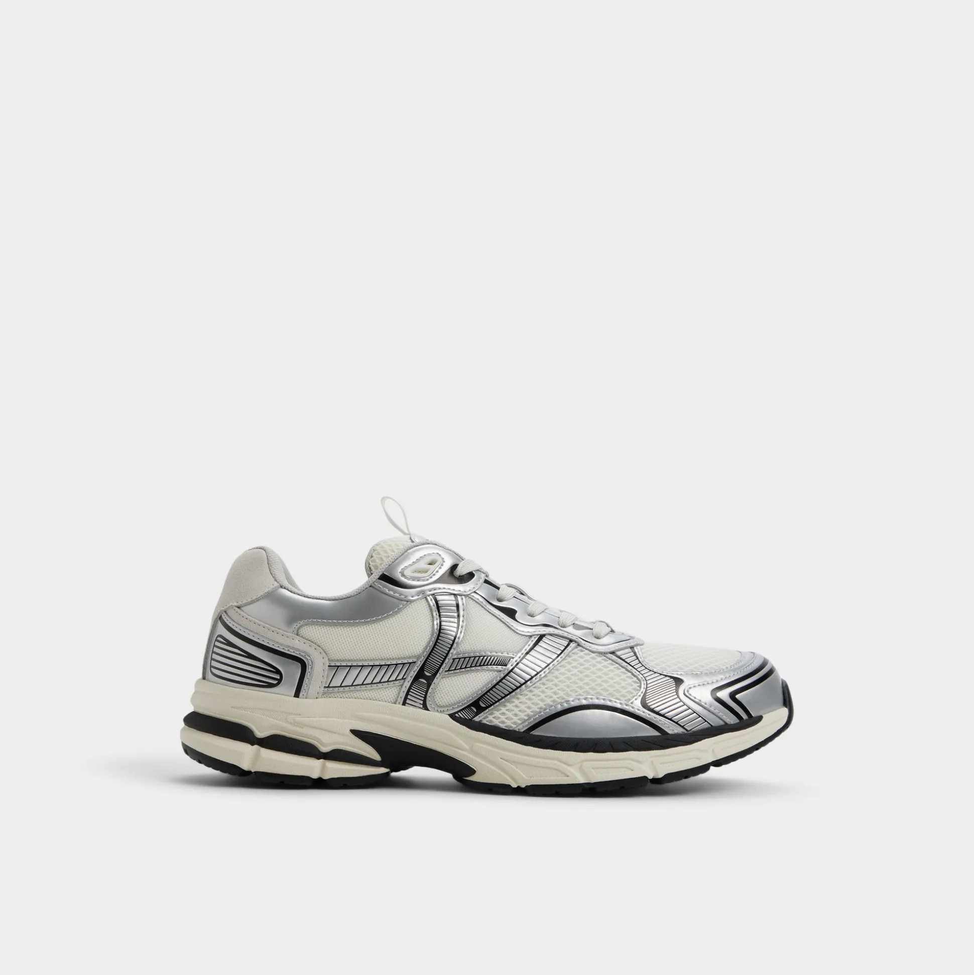 Breathable mesh combines with sleek synthetic overlays to give this white-and-black sneaker a retro runner feel, while a sculpted jogger sole cushions each step and boosts energy for a track-like feel on city streets. Wear it with cuffed cargos for weekend outings or team them with slim joggers for late-night downtown food missions.