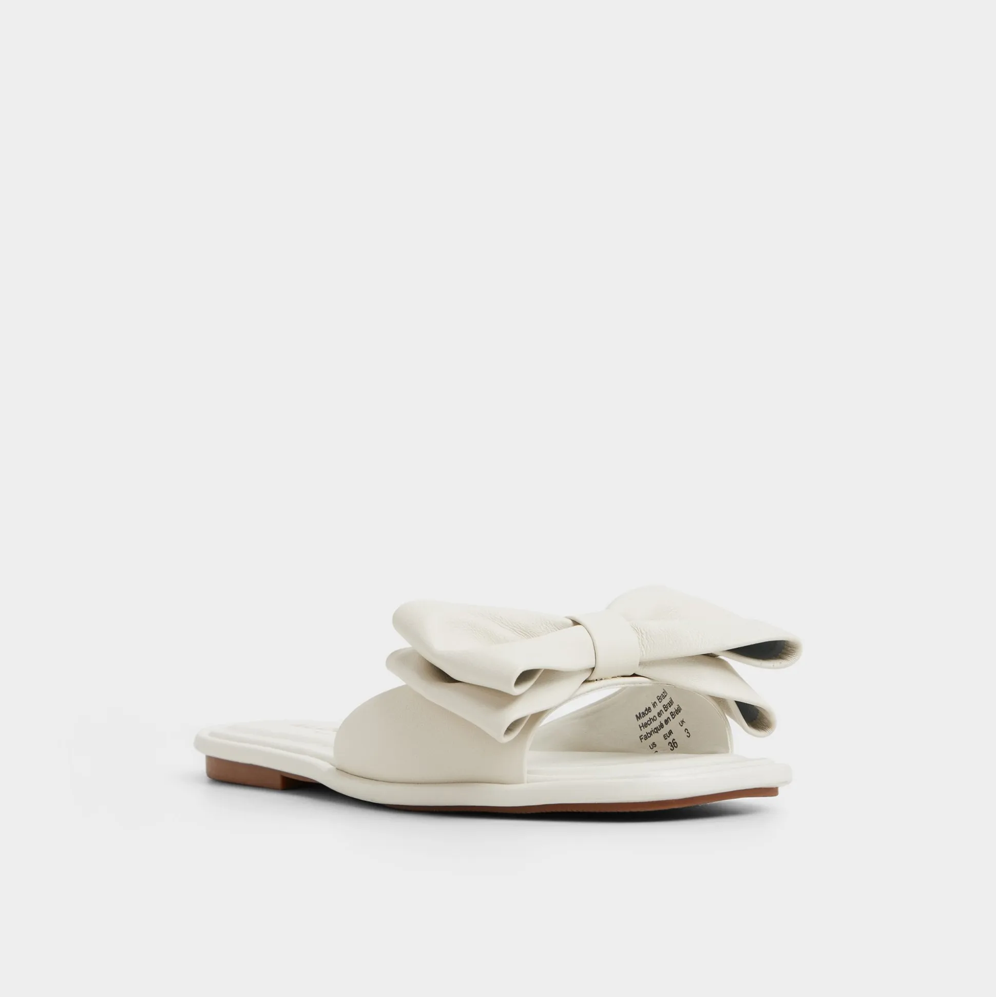 Cloud-soft leather slide with a sculpted bow across the upper elevates a clean square-toe silhouette into a wearable moment of quiet, everyday confidence you reach for again and again. Pair with cropped denim for cafe runs, or ground a linen maxi for seaside dinners and moonlit strolls, making every step feel effortless and ready for anything.