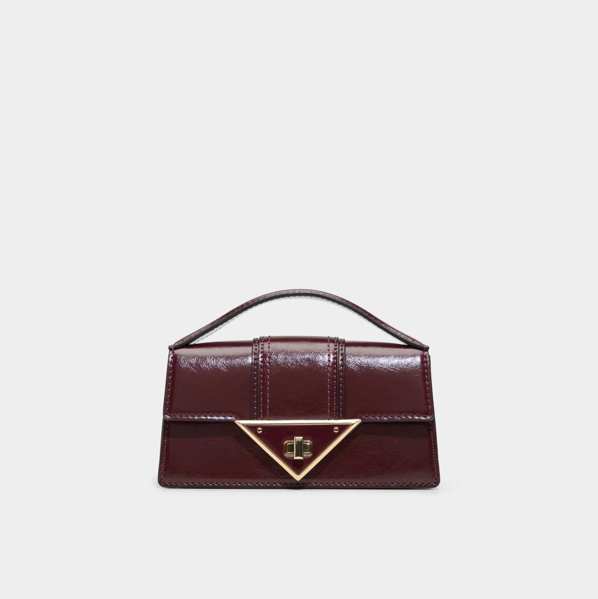 The Brimeaax top-handle bag combines elegant, refined style with a bold bordo hue and a geometric silhouette. Crafted from shiny material, this sophisticated accessory adds a polished touch to any ensemble. Its structured design balances modern edge with timeless appeal, making it an ideal choice for those seeking a statement piece with subtle luxury.