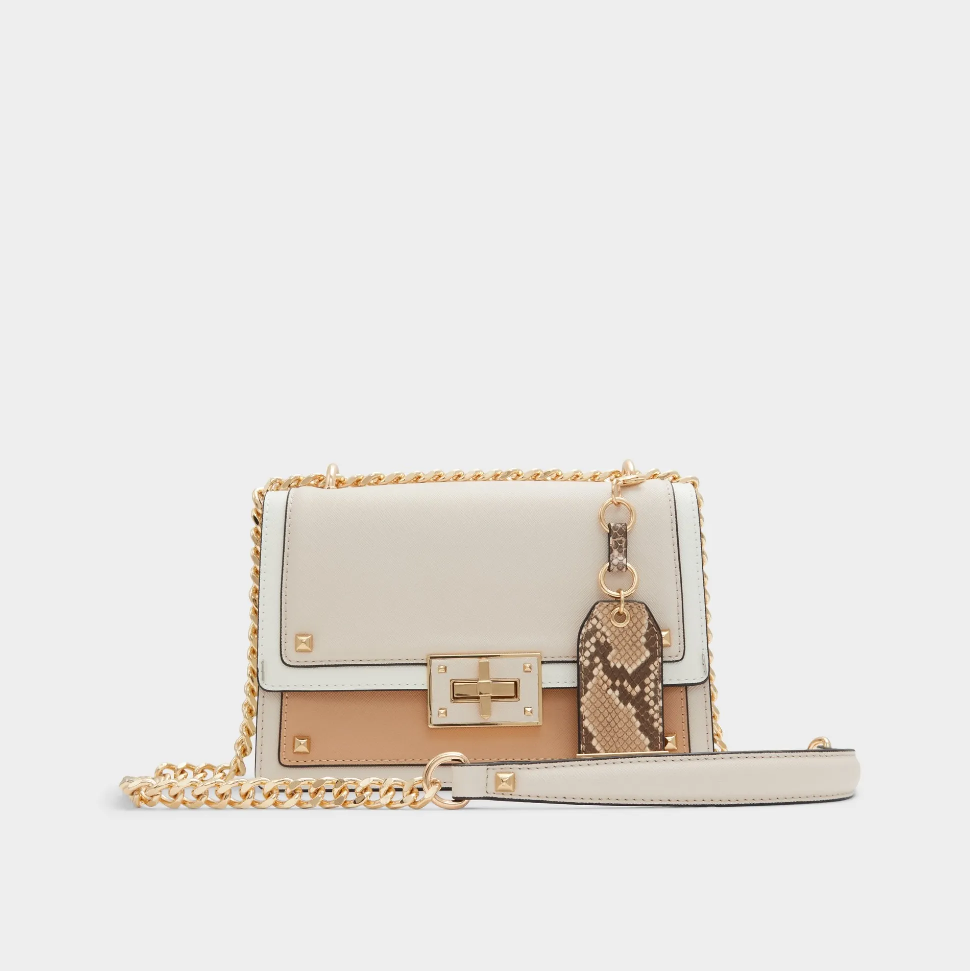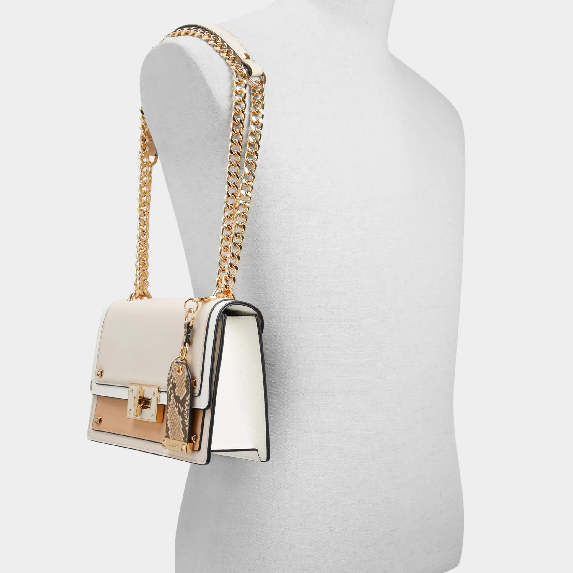 Velvety two-tone leather is framed by a bold gold chain, flowing into a shoulder-skimming strap with a sleek push-lock clasp while a python-print charm adds an unpredictable, high-glam touch for evenings out. Style it with a slip dress for rooftop dates or tuck it against a blazer and loafers for office runs to finish every look.