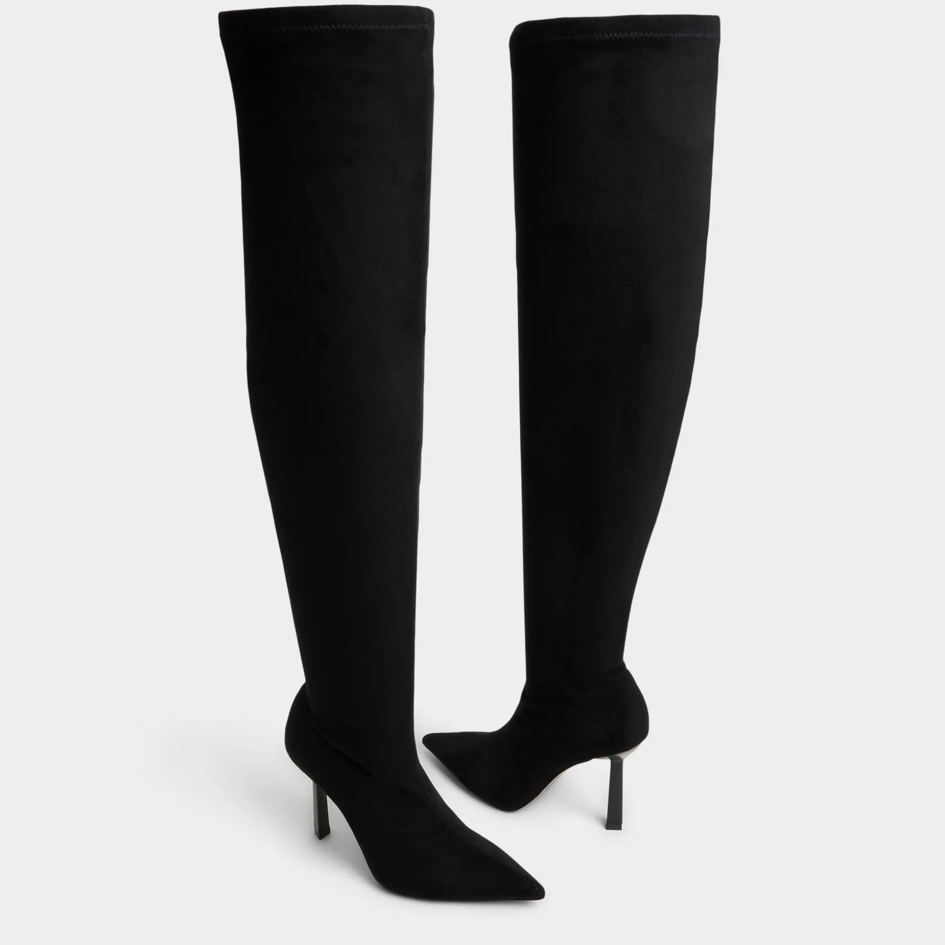 Drama climbs past the knee in butter-soft suede, wrapping legs in seamless columns ending in razor-sharp points and slim stiletto lifts every stride like city lights after dark. Let it steal focus with a mini sweaterdress at rooftop cocktails or layer under longline coats when gallery openings call.