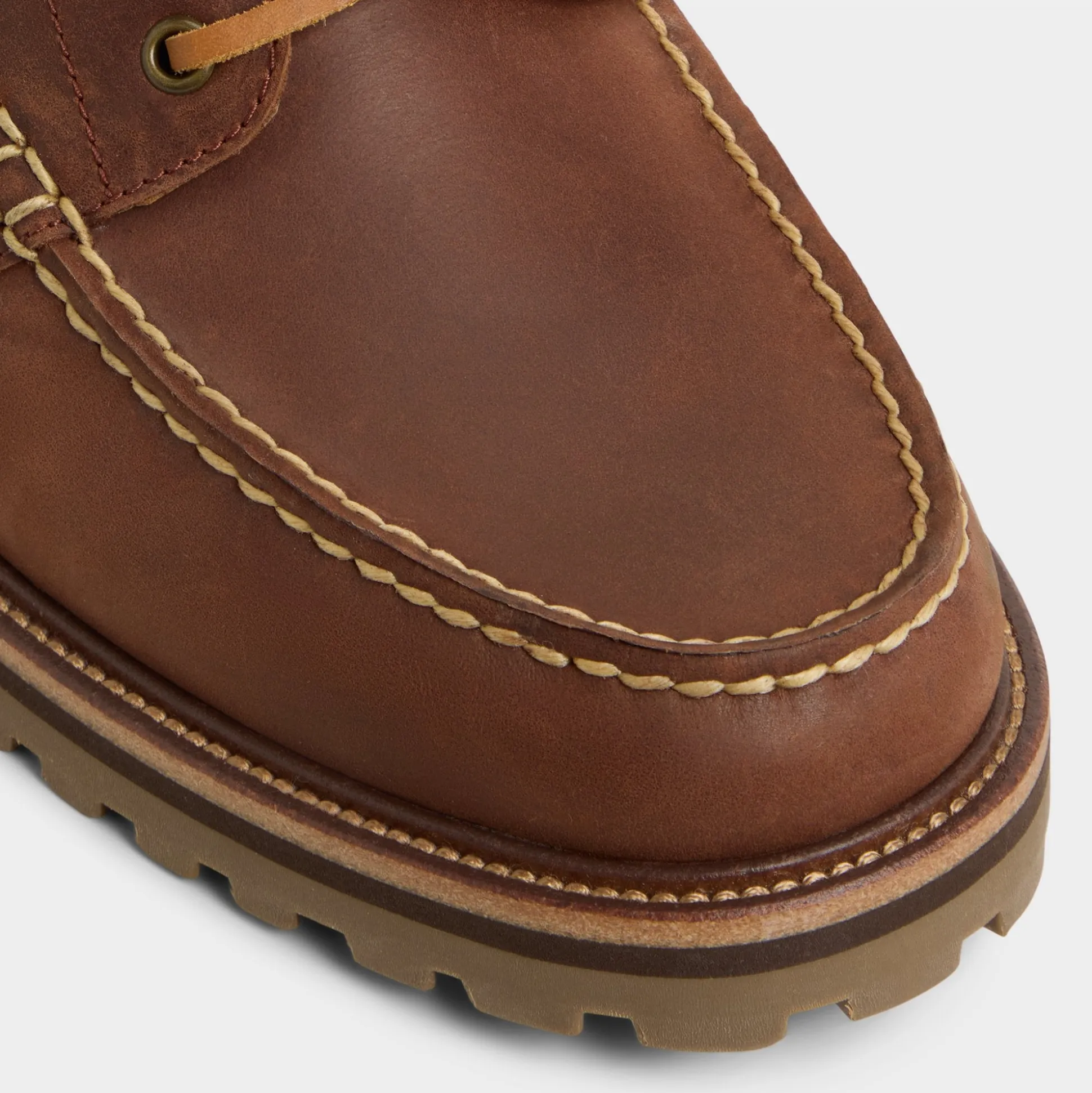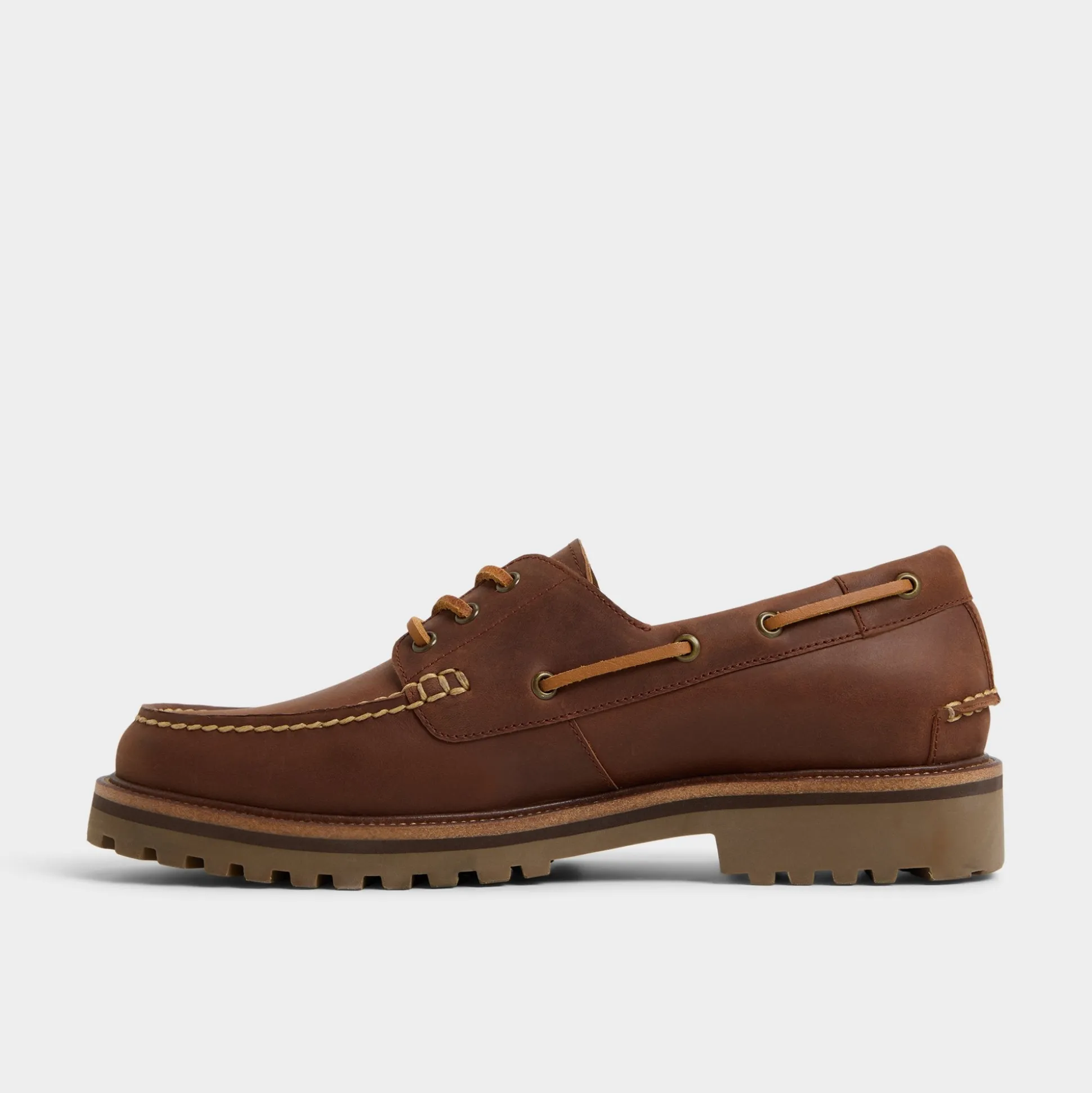 Deep brown leather gives these boat shoes a rugged feel, complemented by trail-ready lug soles and classic moc stitching, while metal eyelets and side lacing offer reliable support for both dockside and urban adventures. Pair with cuffed chinos for browsing weekend markets or team with dark denim and a flannel for road-trip breaks-style caters to every terrain.