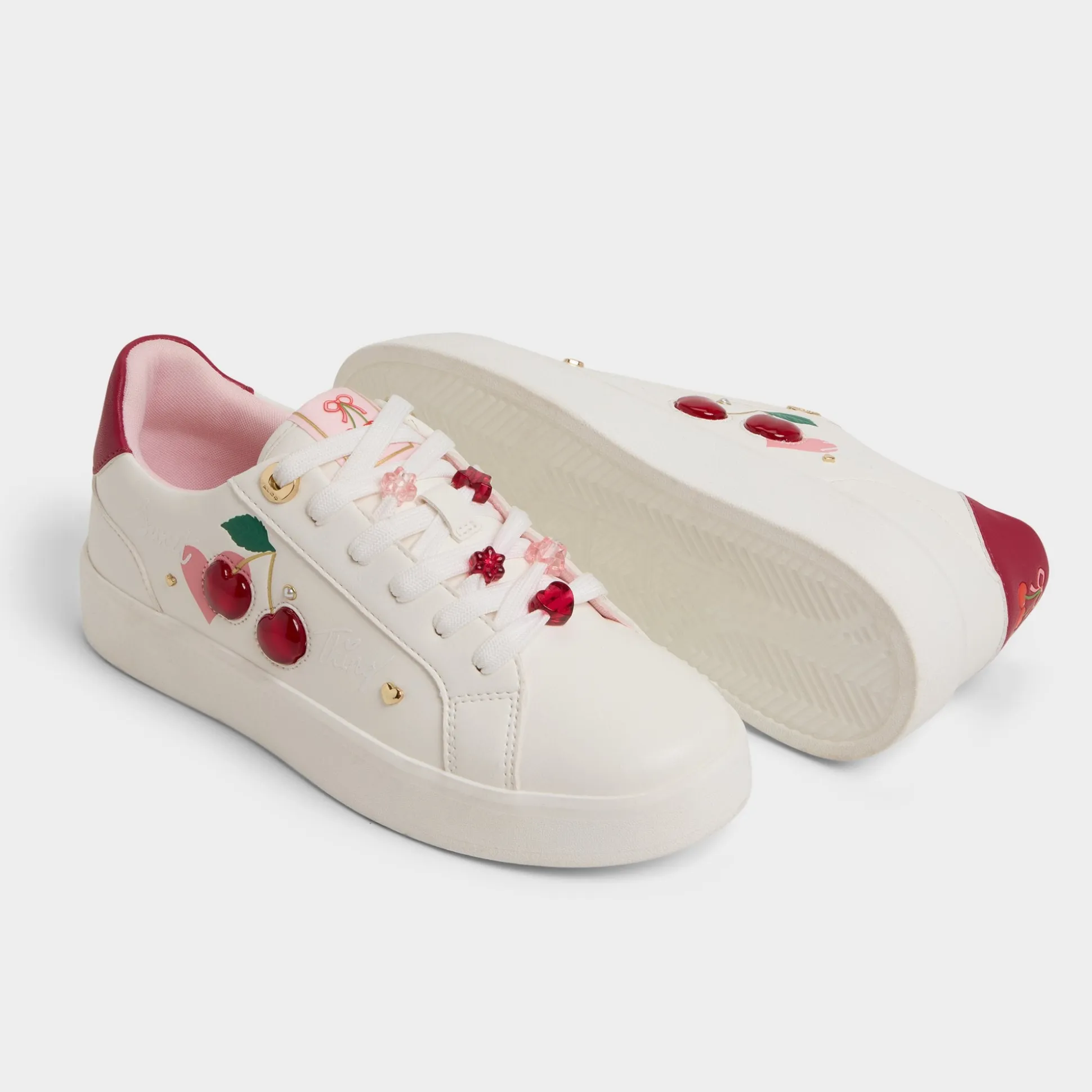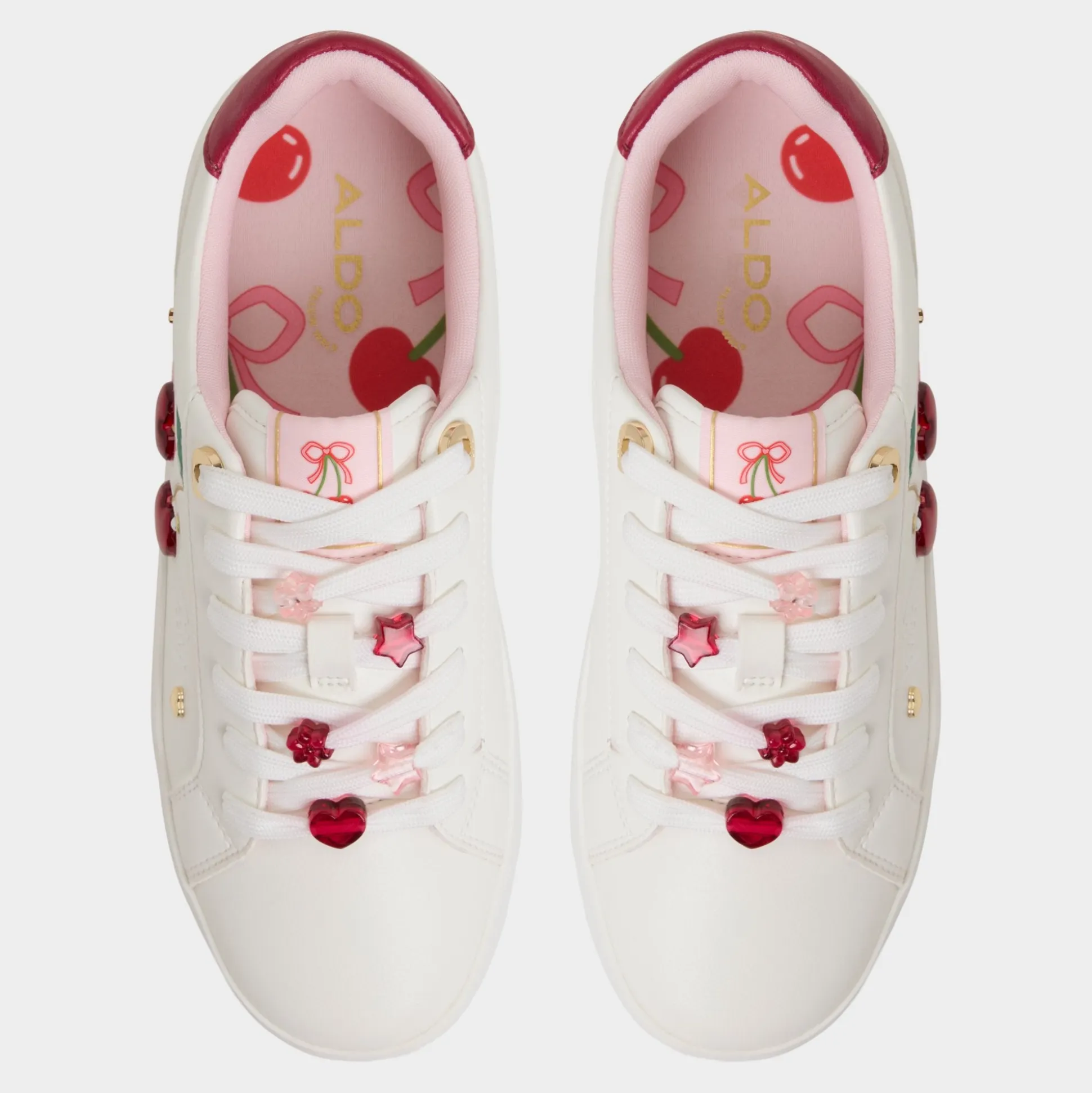 Juicy cherry appliques and tiny gold hearts transform this low-top into wearable love notes, while cloud-soft padding ensures every step is breezy on its sporty cup sole. Team it up with boyfriend jeans for coffee dates or switch to flirty sundresses as carnival lights glow.
