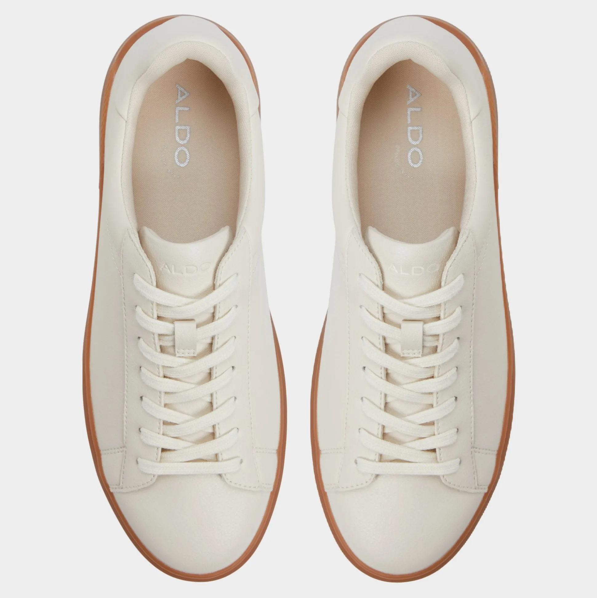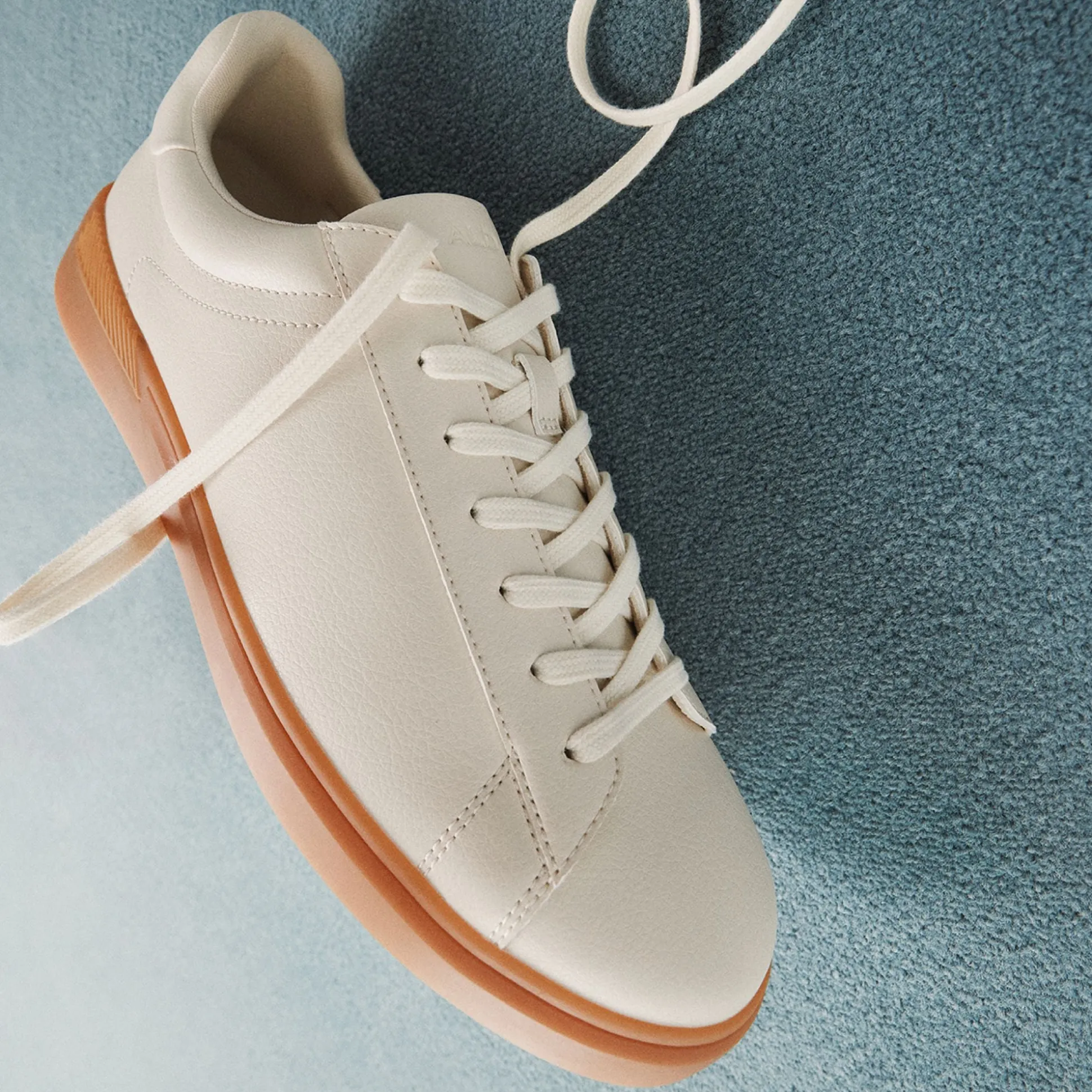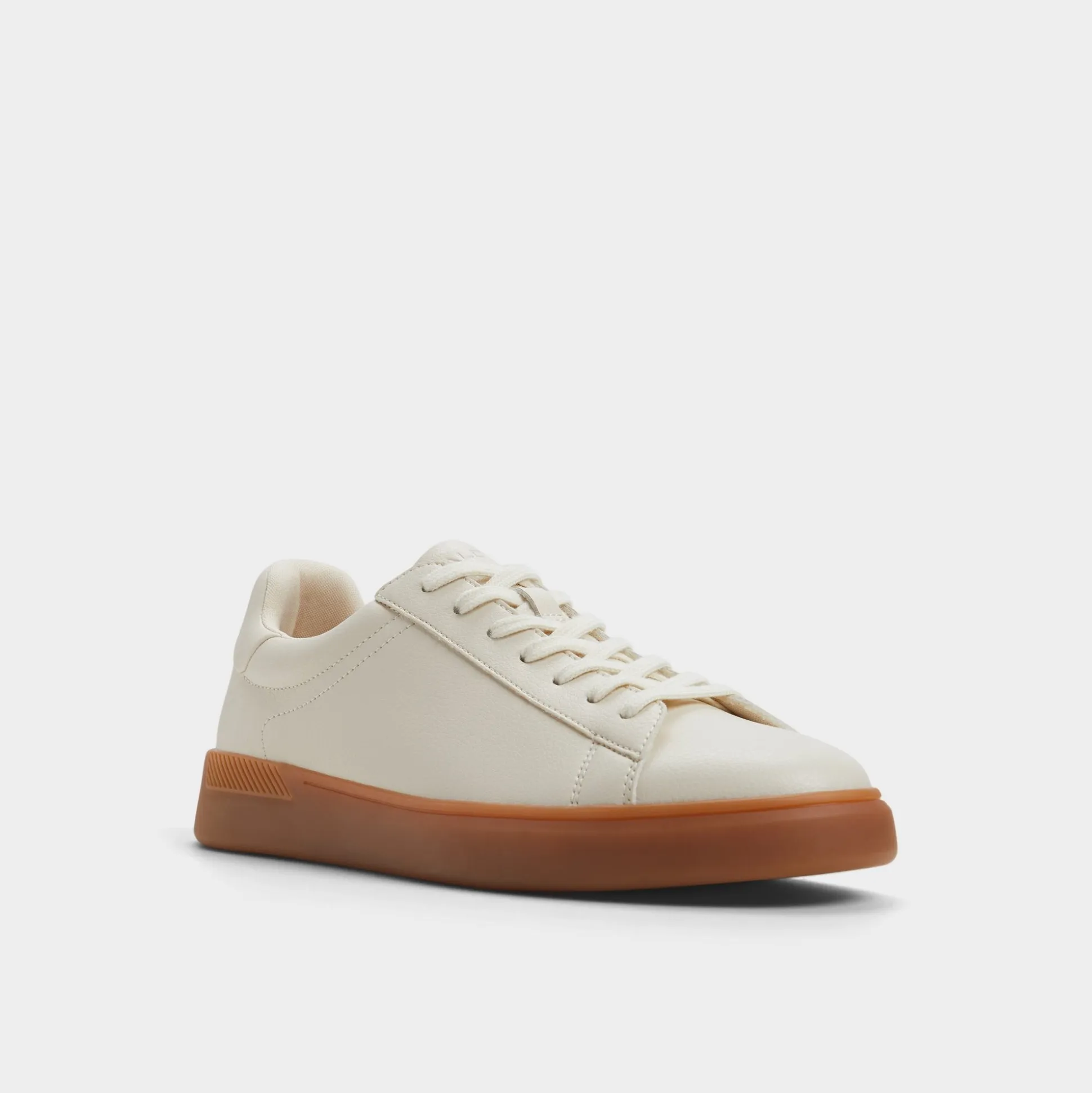 Chalk-white synthetic leather pairs with a caramel gum sole in this low-top retro design, with a slim silhouette and herringbone tread for all-day grip. Team it with cuffed joggers at markets or smart chinos on casual Fridays, ready for work, weekend errands, and everything in between.