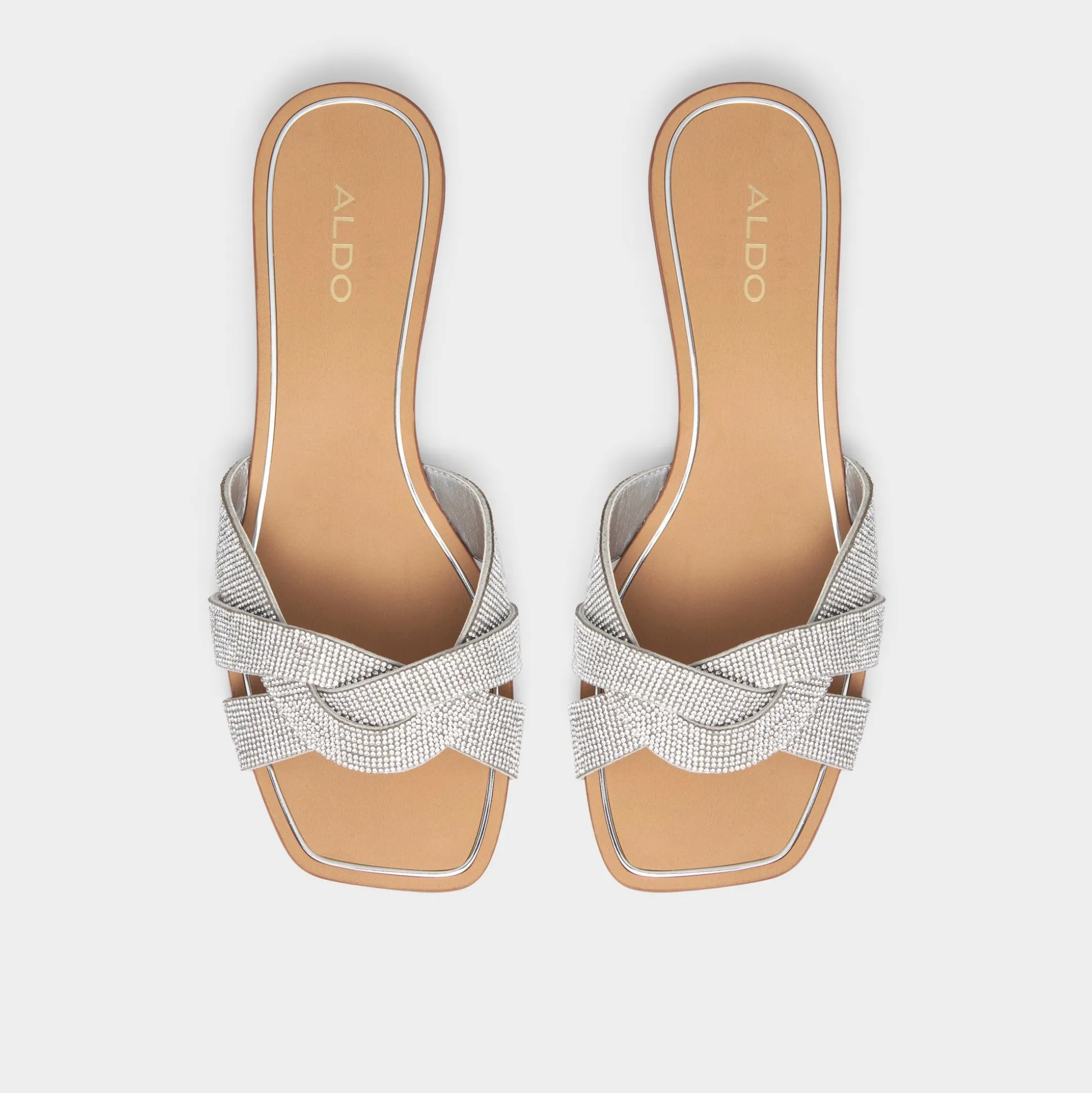 Add a touch of dazzle to your looks with these easy on, easy off rhinestone embellished sandals.