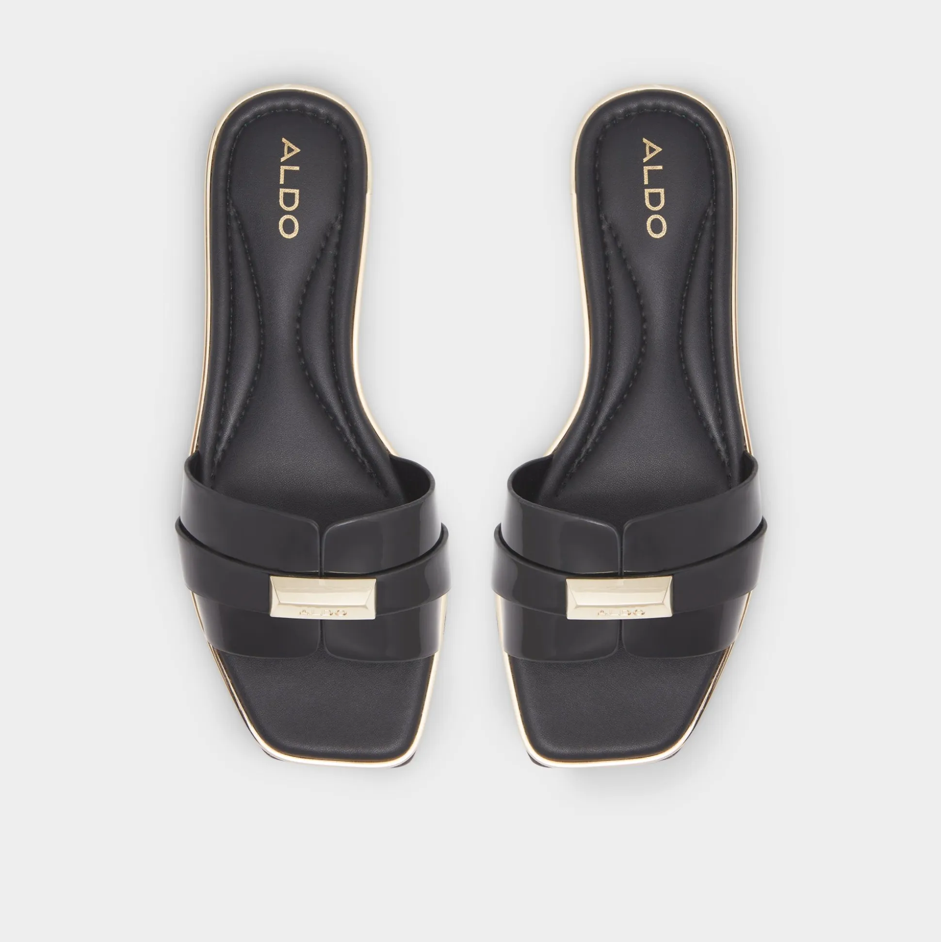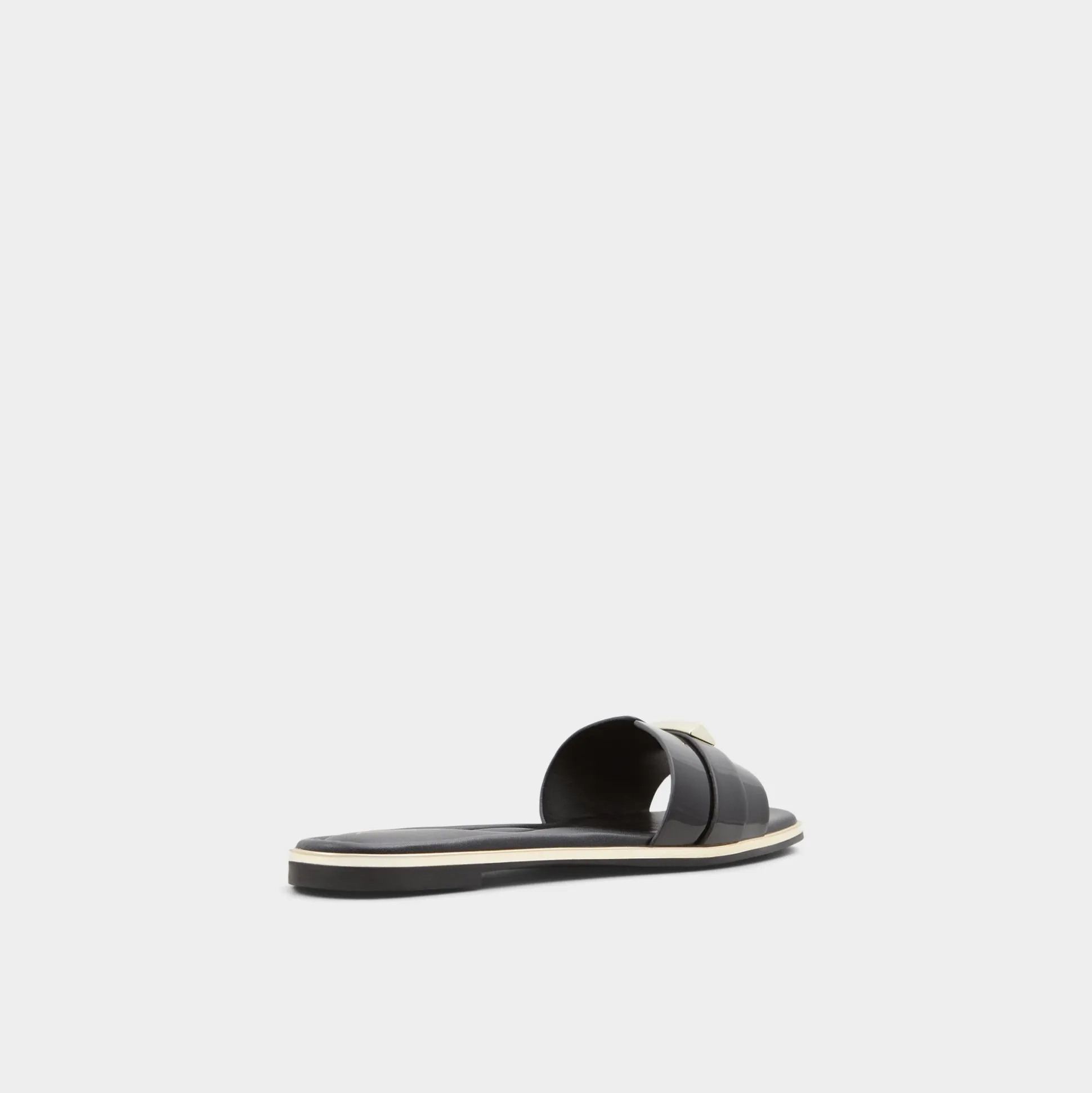Gleaming gold rings crown contrast-edged soles, turning high-gloss black bands into toe-level jewelry that lightens every step from brunch lines to airport halls. Pair with cropped denim for city coffee runs, or slip into satin for rooftop playlists as golden hours stretch into lingering sunset moments.
