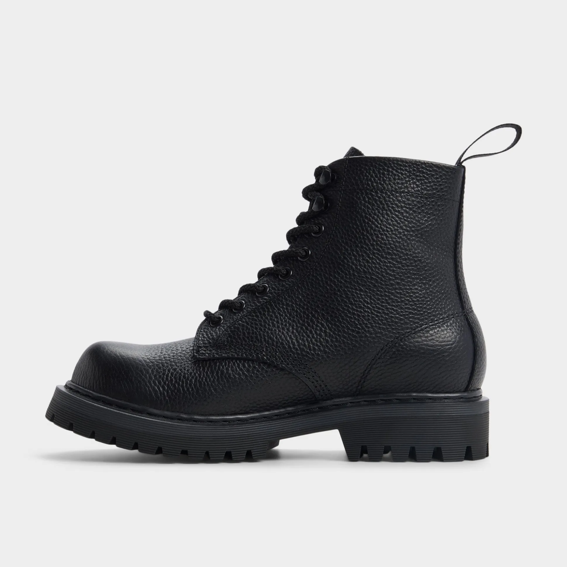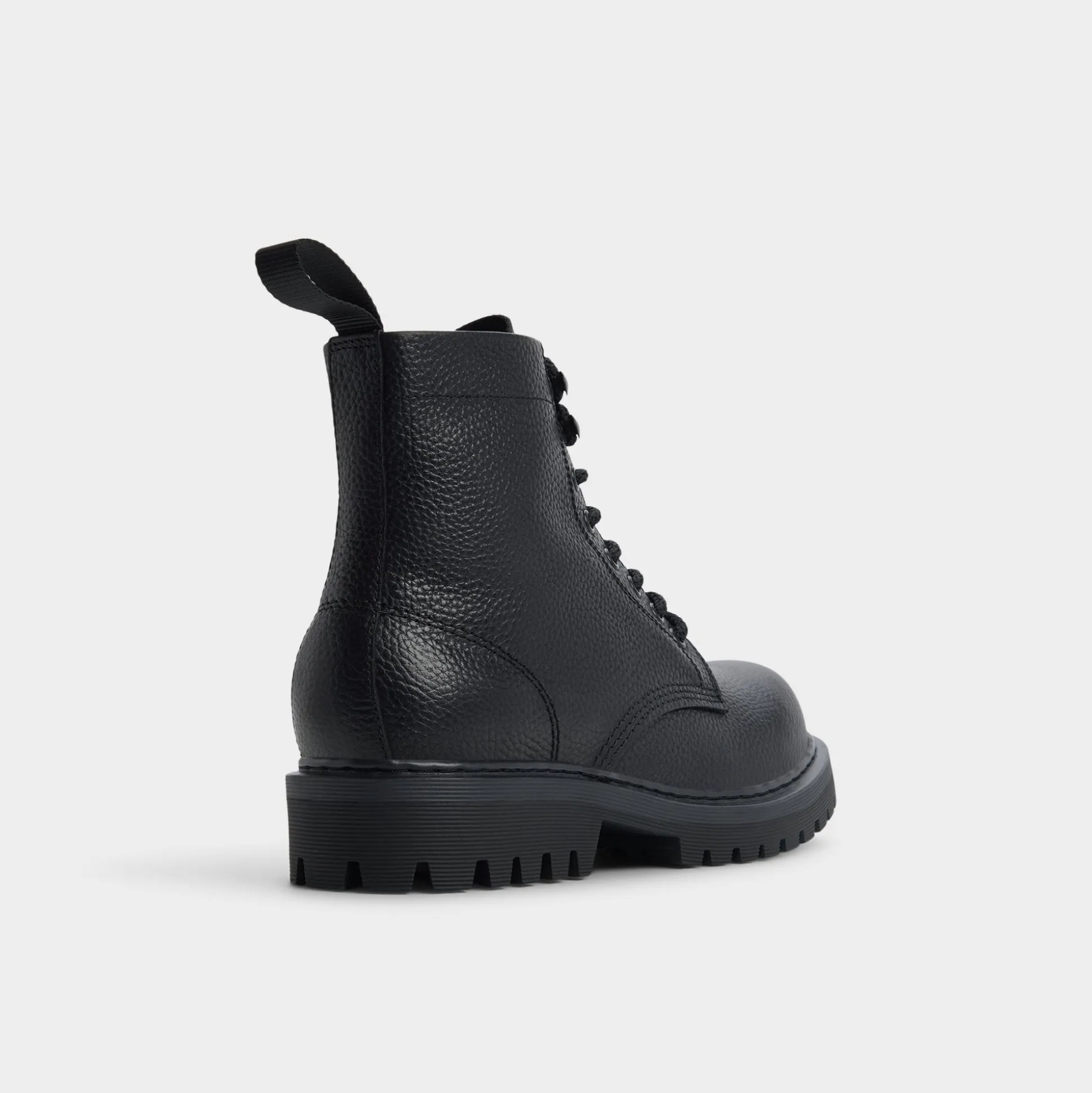 Deep-grain leather meets black metal eyelets in this lace-up boot, and the chunky lug sole provides steady traction from slick sidewalks to festival fields while the unlined construction keeps things simple. Pair with cuffed cargos for weekend record hunts or anchor a wool overcoat on commuter days-the low profile ensures both style and comfort.