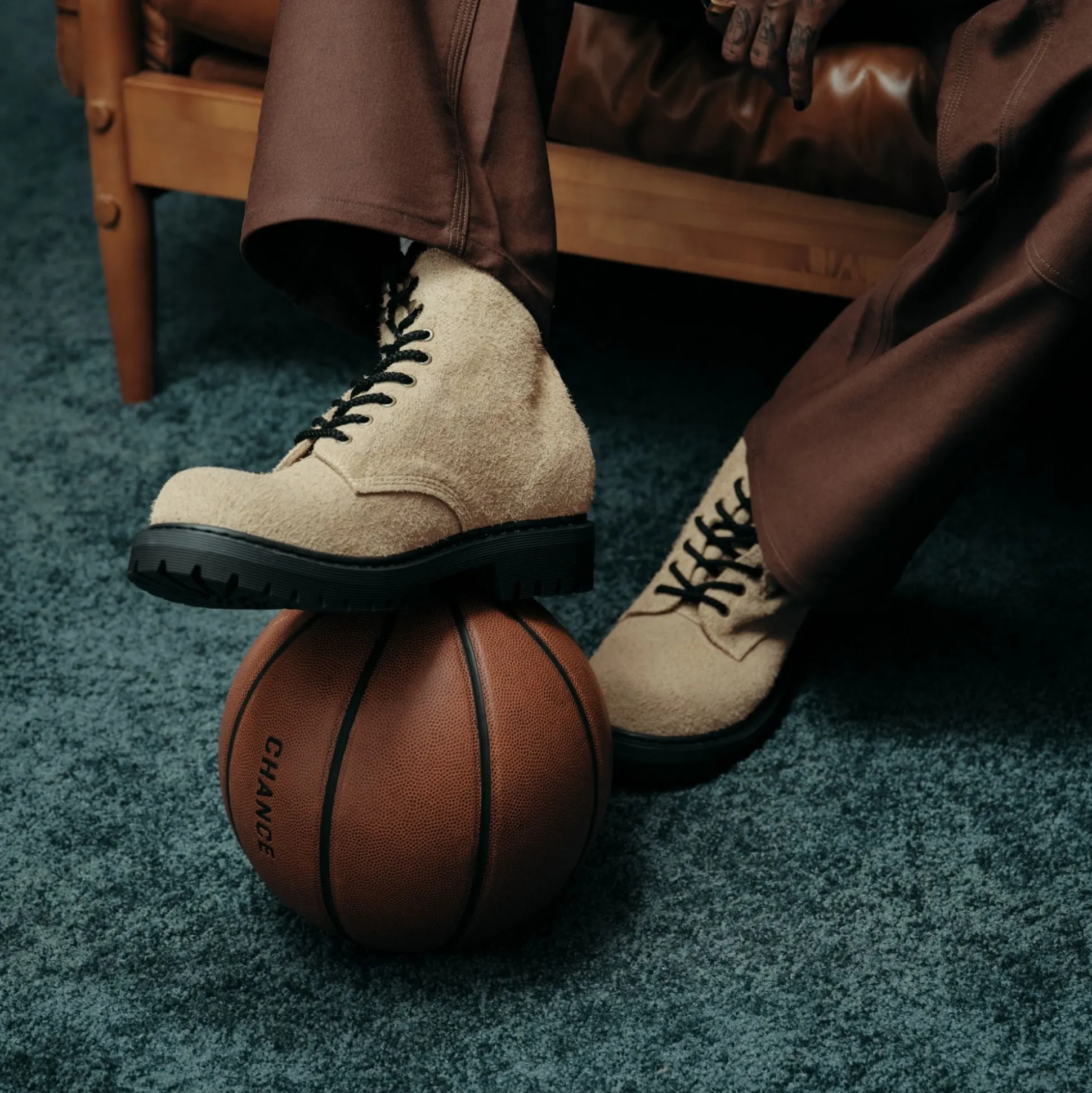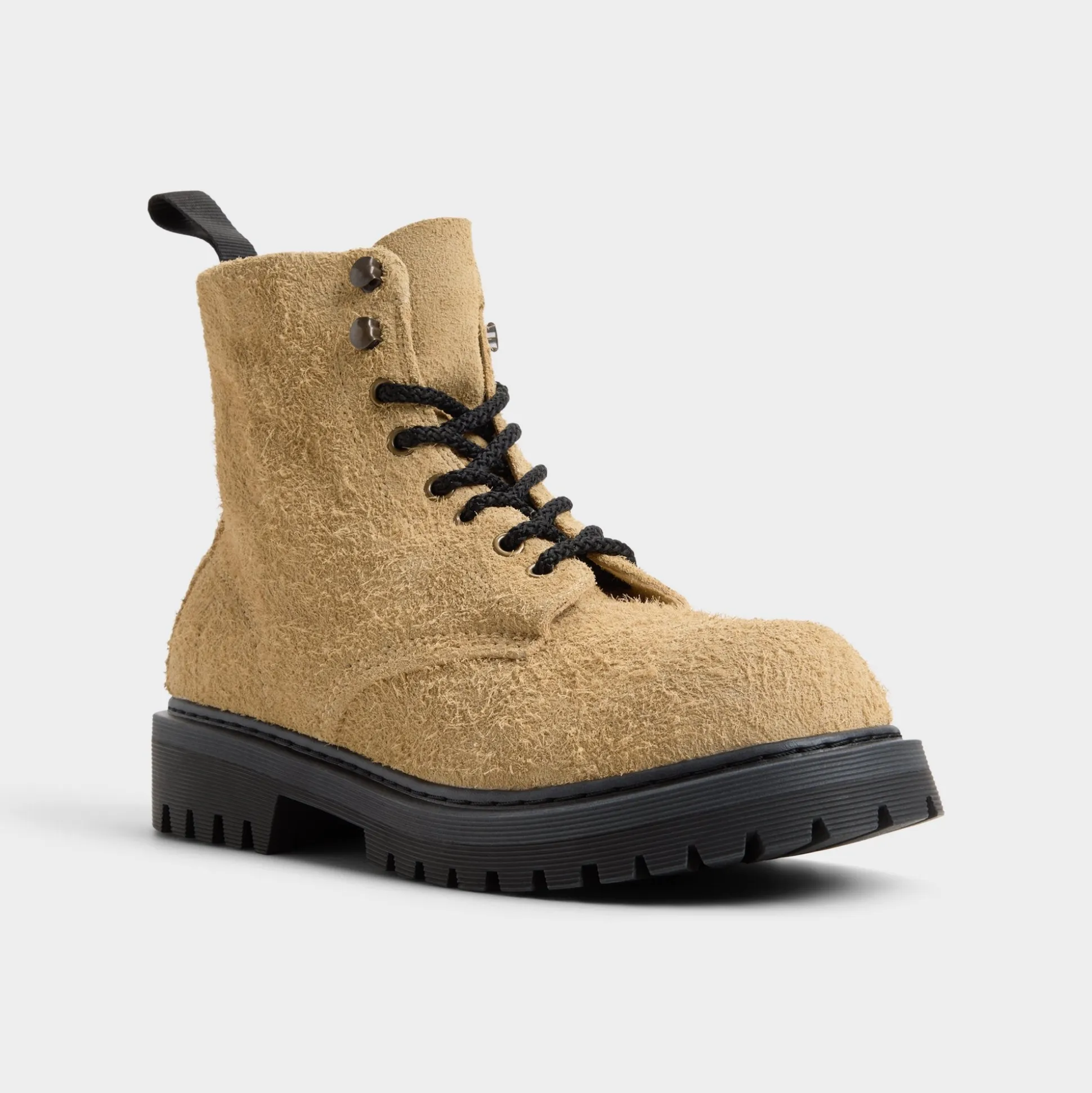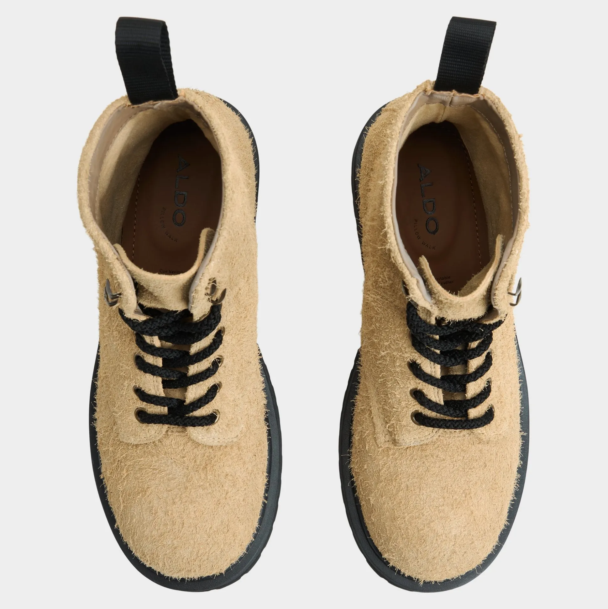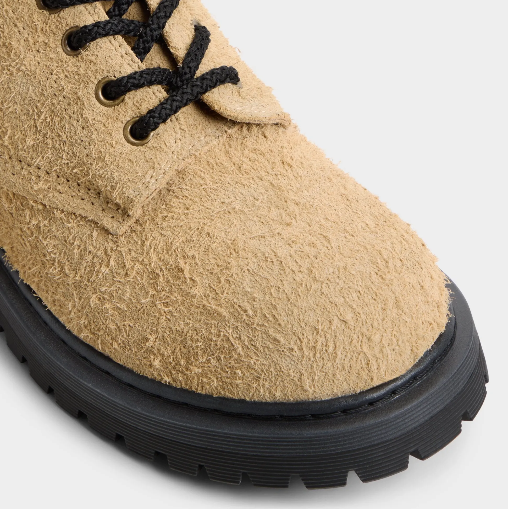 Rugged edge. Everyday ease. Step into cool-weather season with this versatile lace-up boot, designed in textured beige with a contrast lug sole for all-day comfort and grip. The classic silhouette gets a modern refresh with durable construction, bold black laces, and a pull tab for easy on-and-off wear. Effortlessly pairs with denim, tailoring, or laid-back layers, making it a go-to boot for every season.