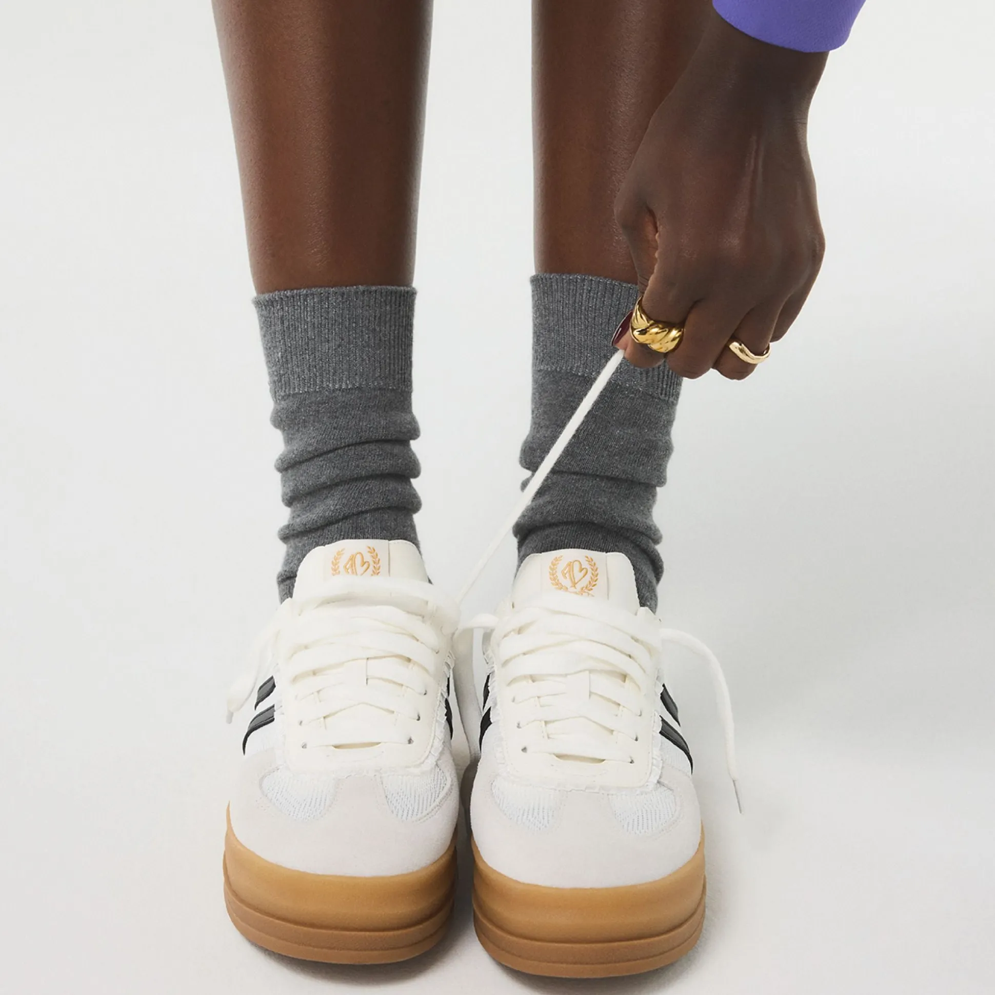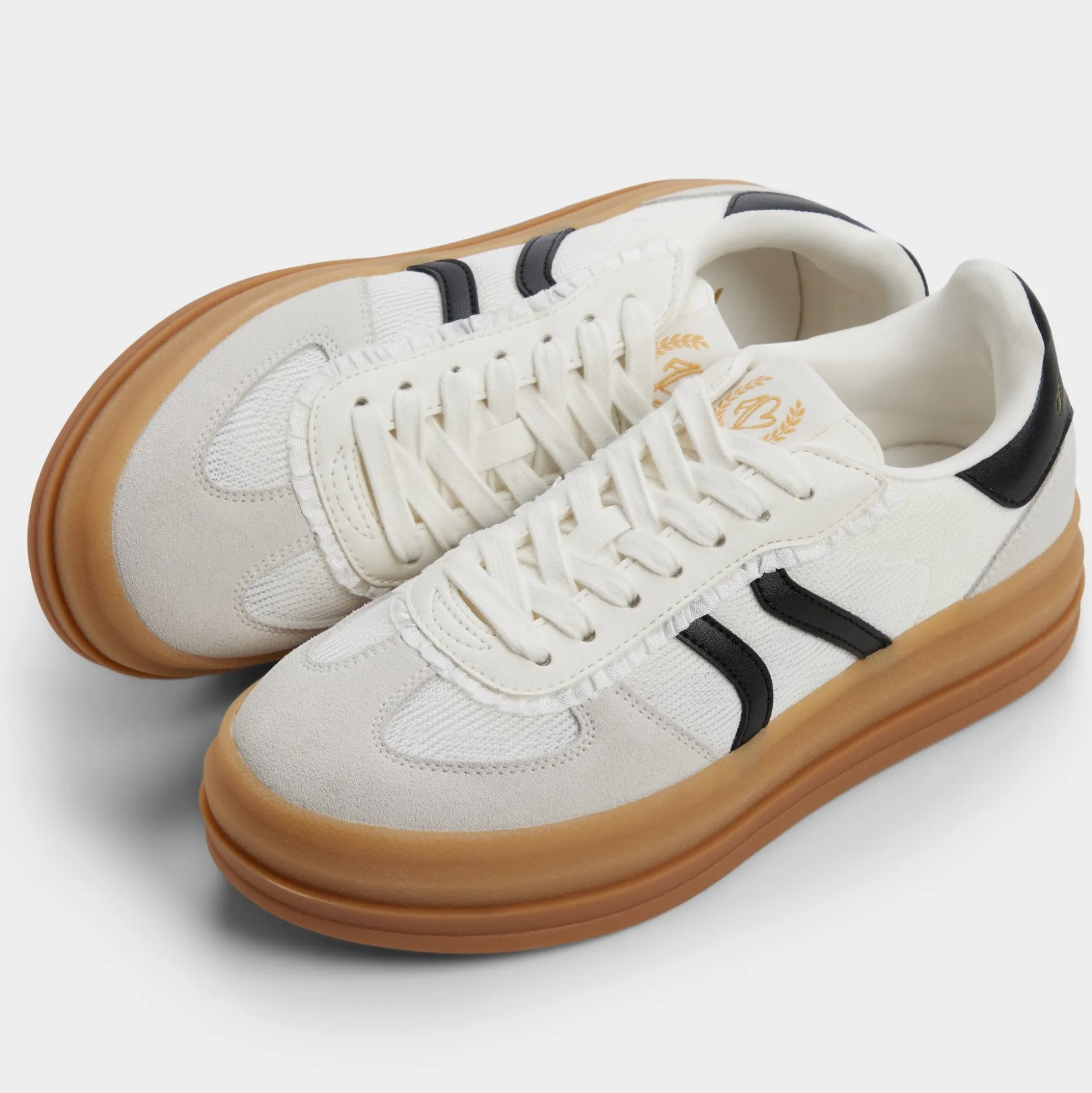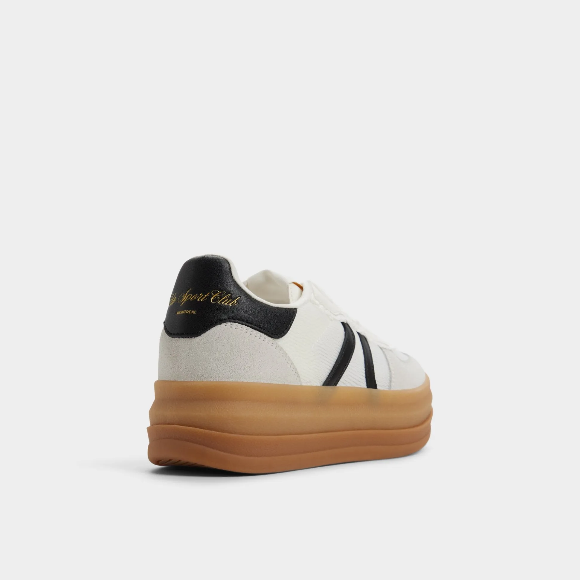 A chunky gum sole anchors a crisp canvas upper with bold black racing stripes, delivering subtle bounce and all-day comfort that stays ready for city sprints and quick coffee runs. Pair with slouchy trousers for lectures, or swap in a floral sundress when art fairs call.
