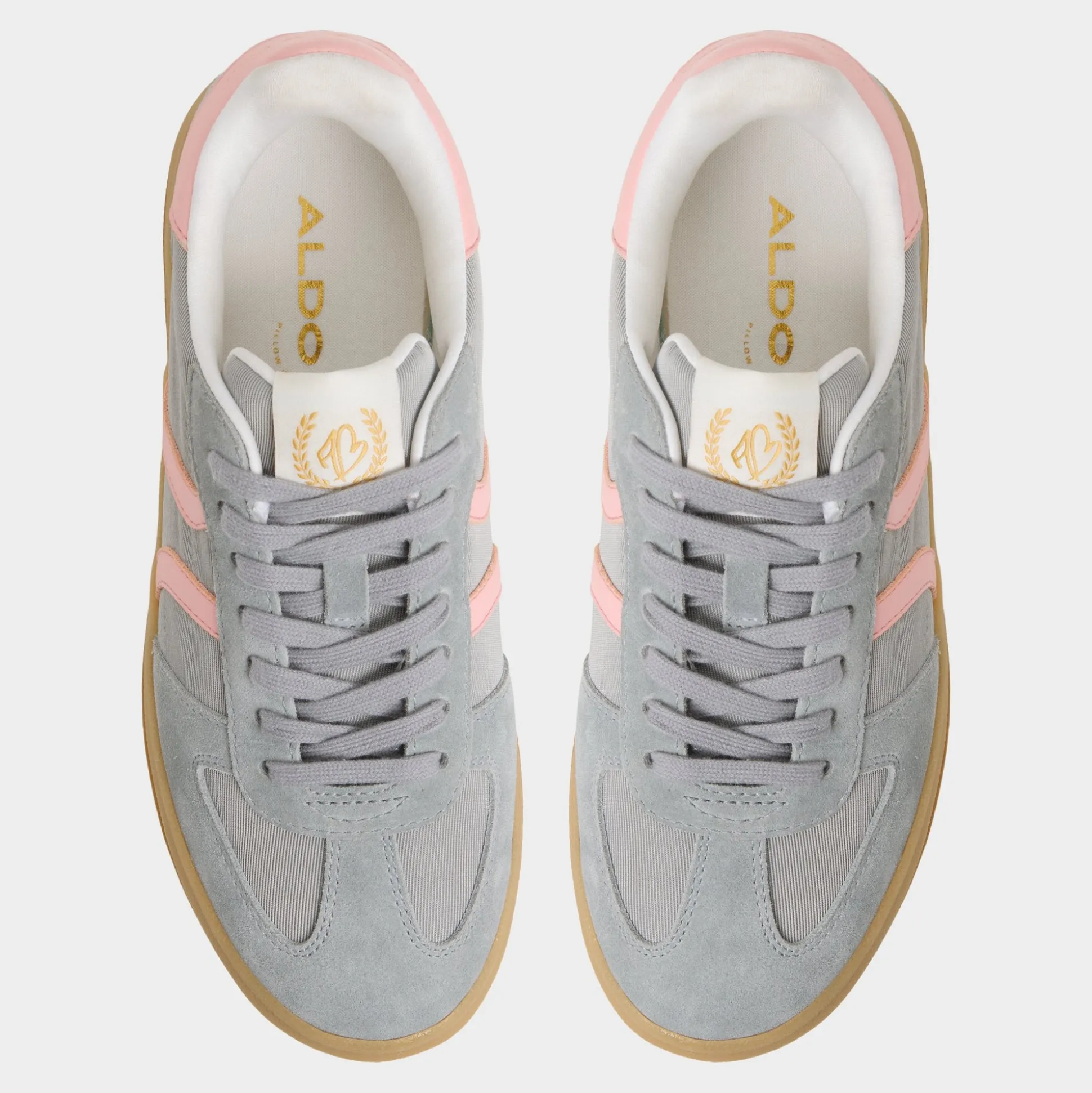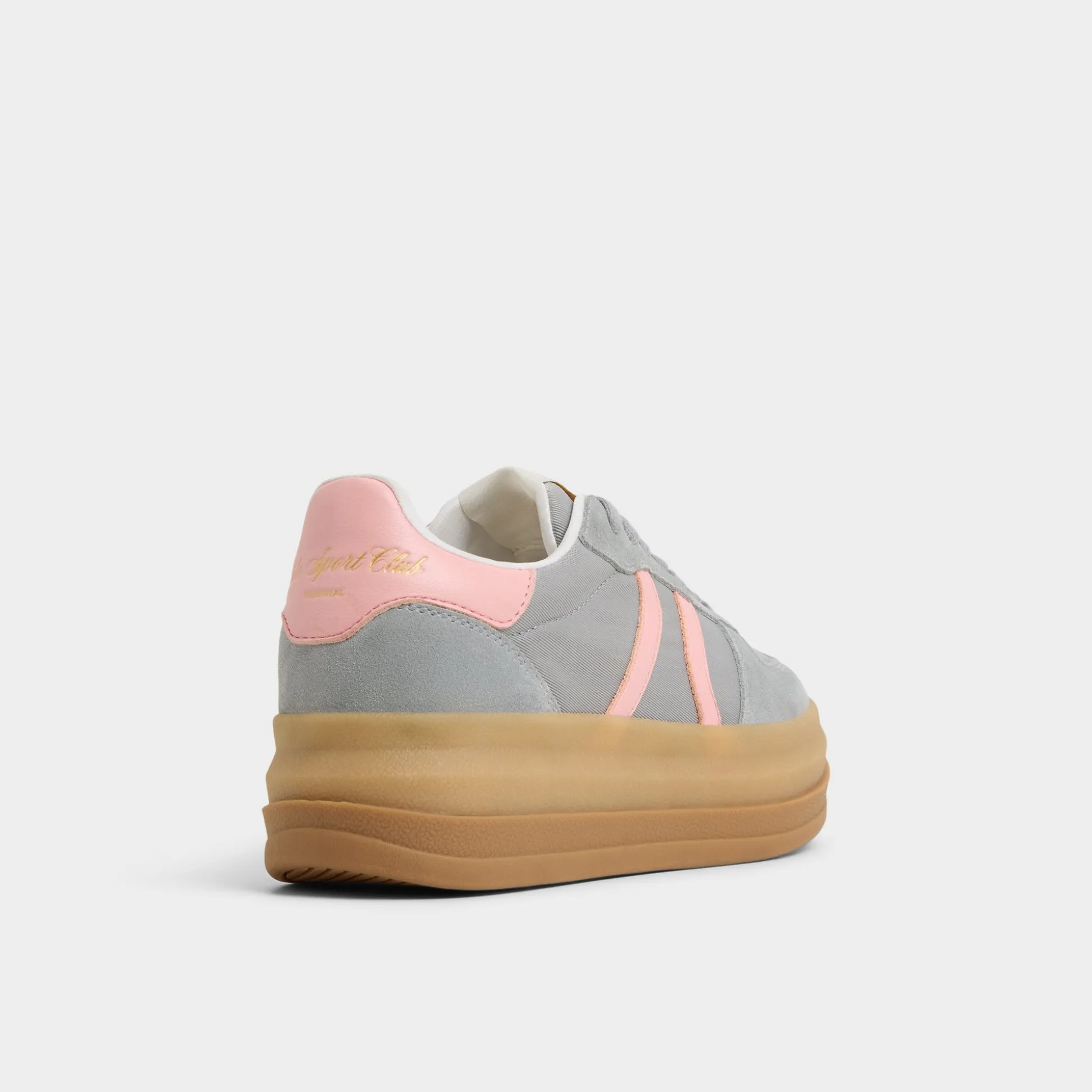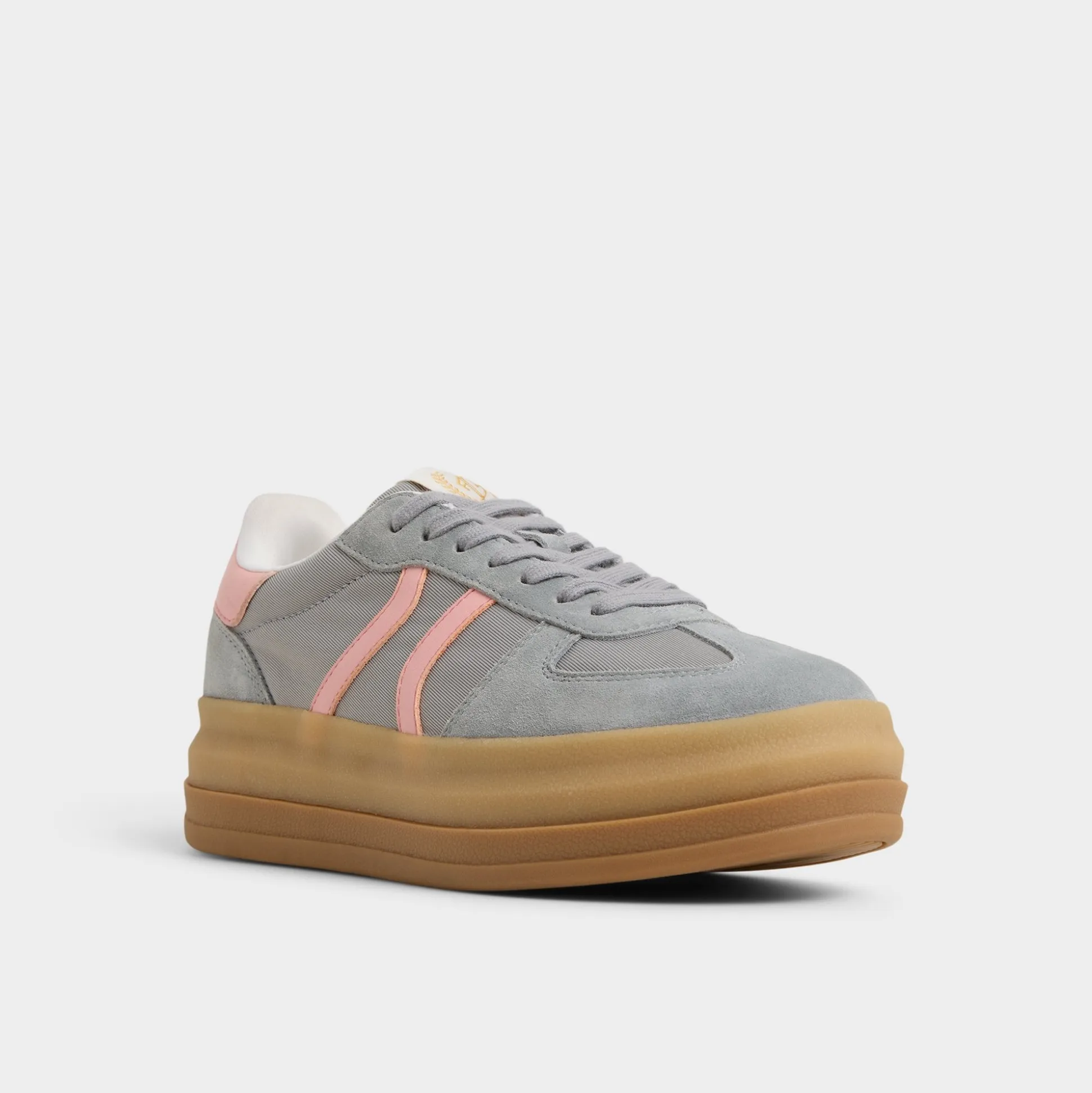 Retro-sport mix of grey suede and blush leather meets a chunky gum platform, delivering lift and bounce that keeps the city vibe lively from first latte to last call. Pair cargos for campus runs, or swap in a ribbed midi for sunset strolls, rain or shine.