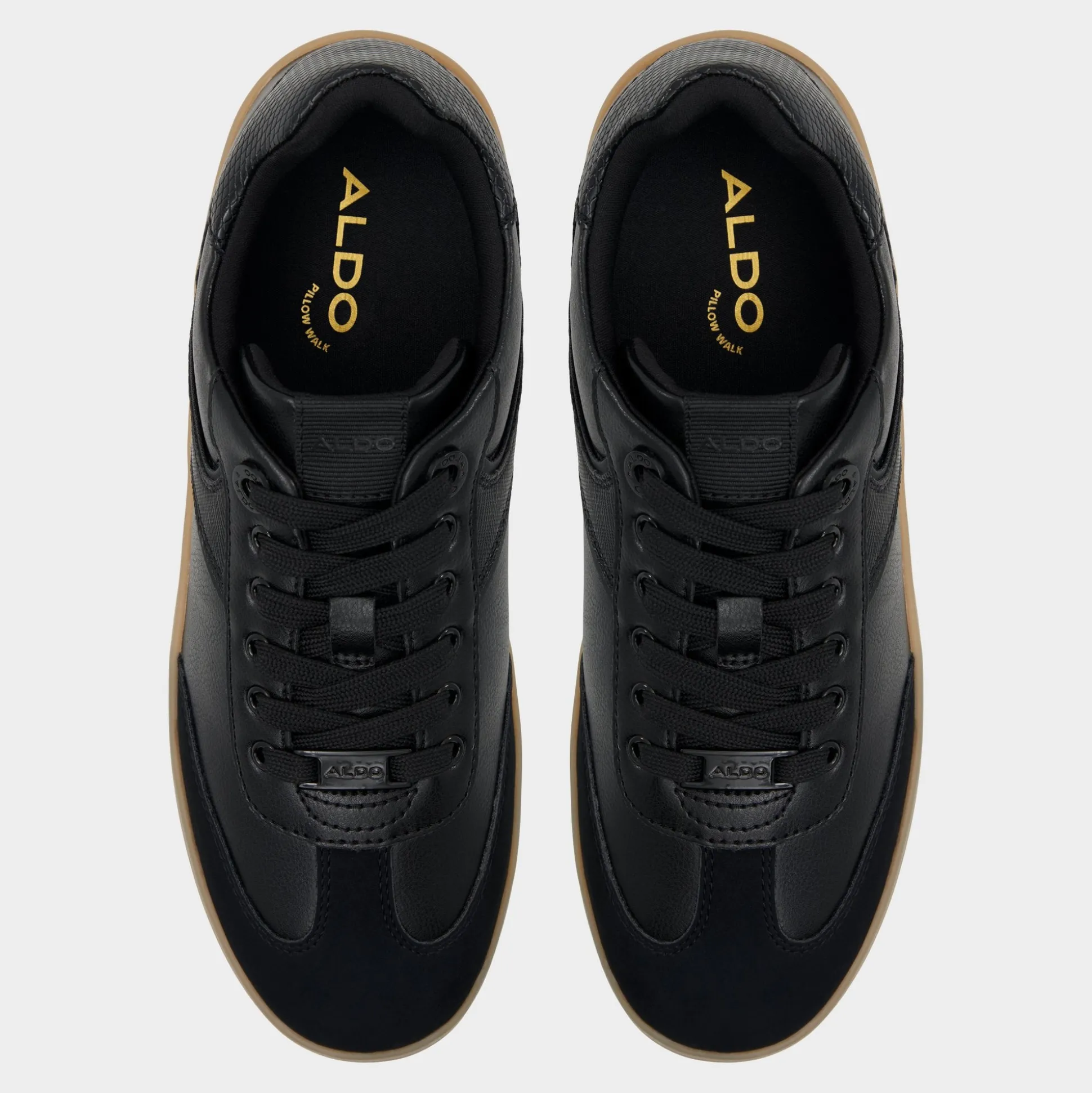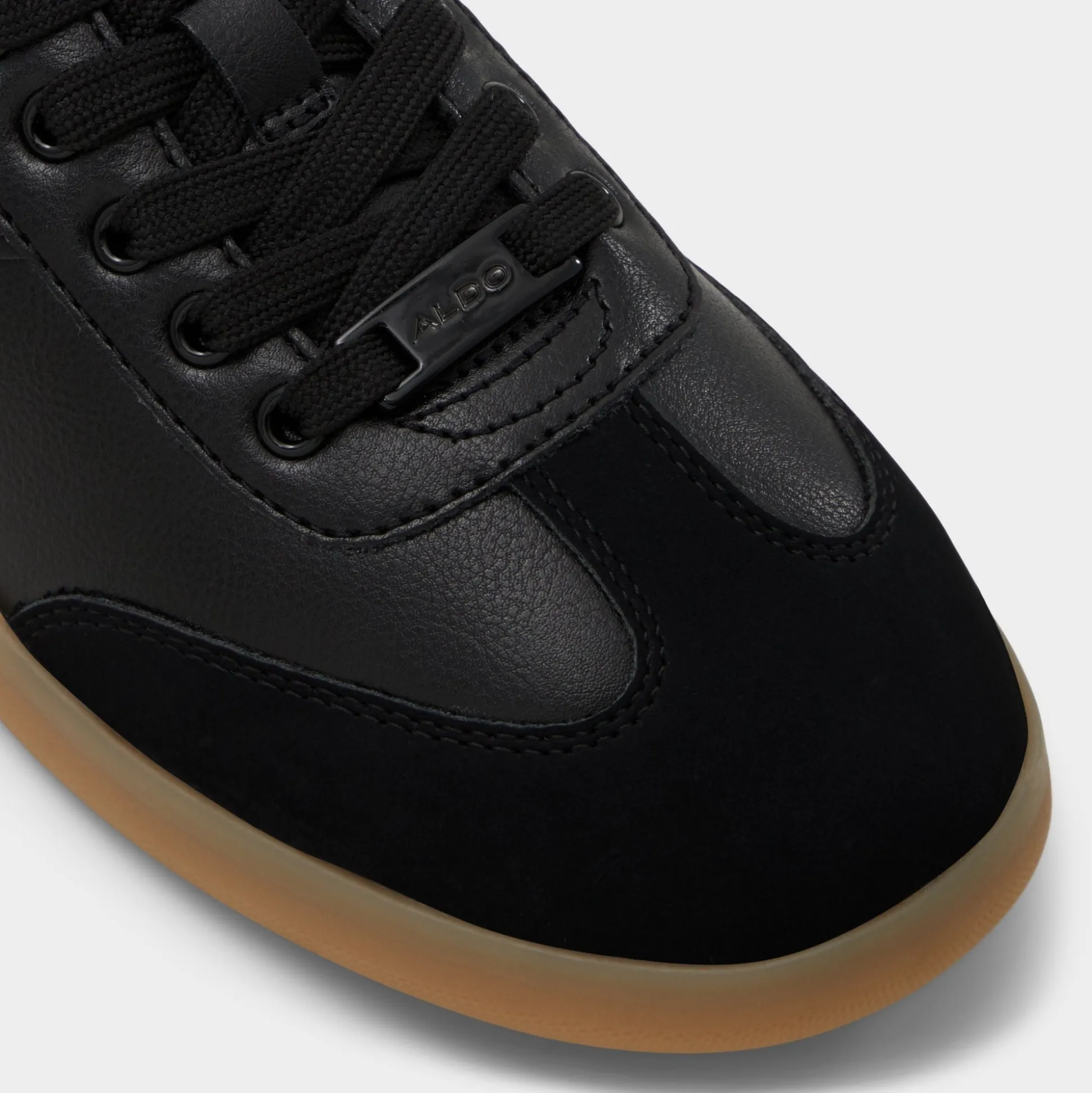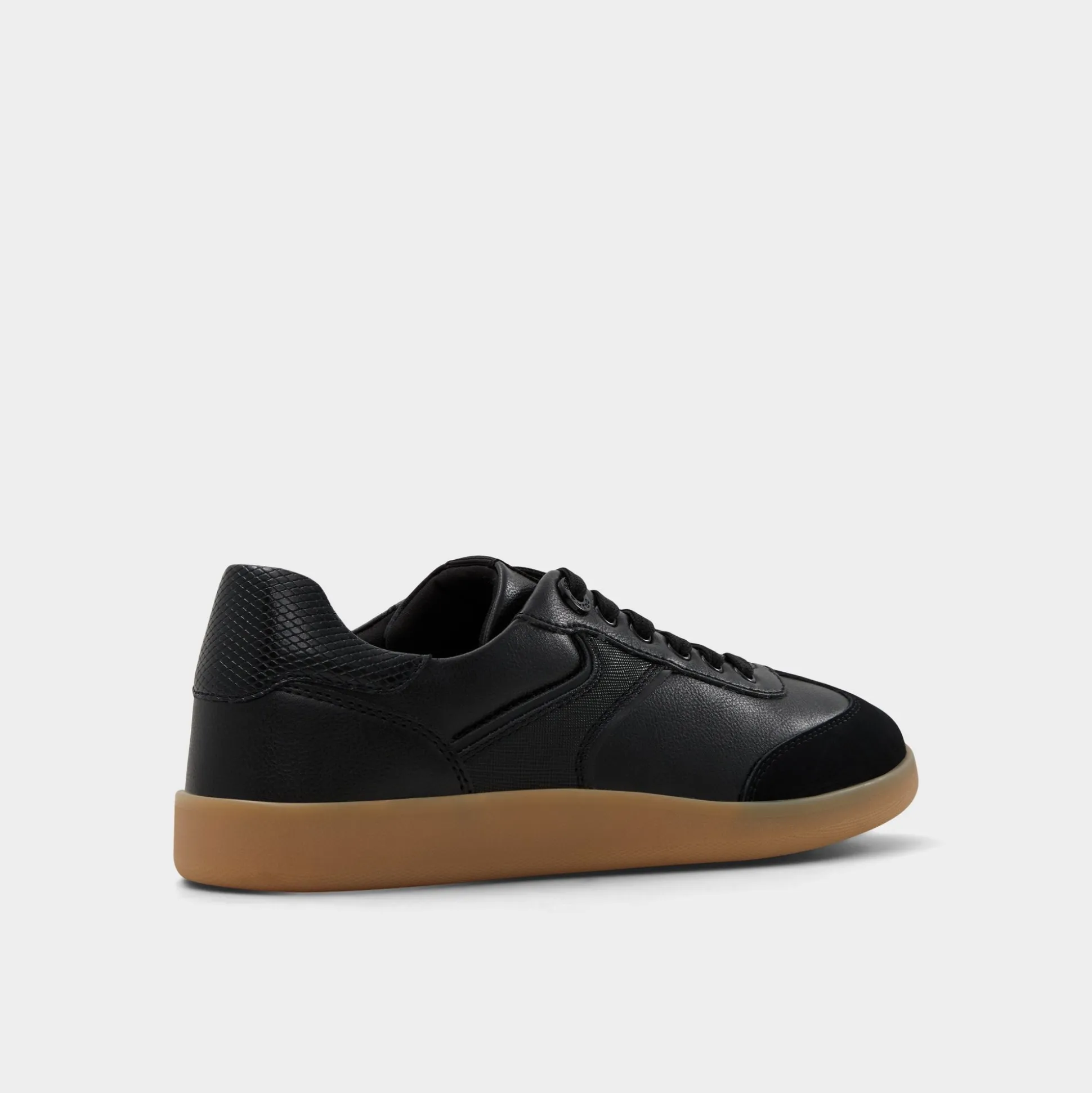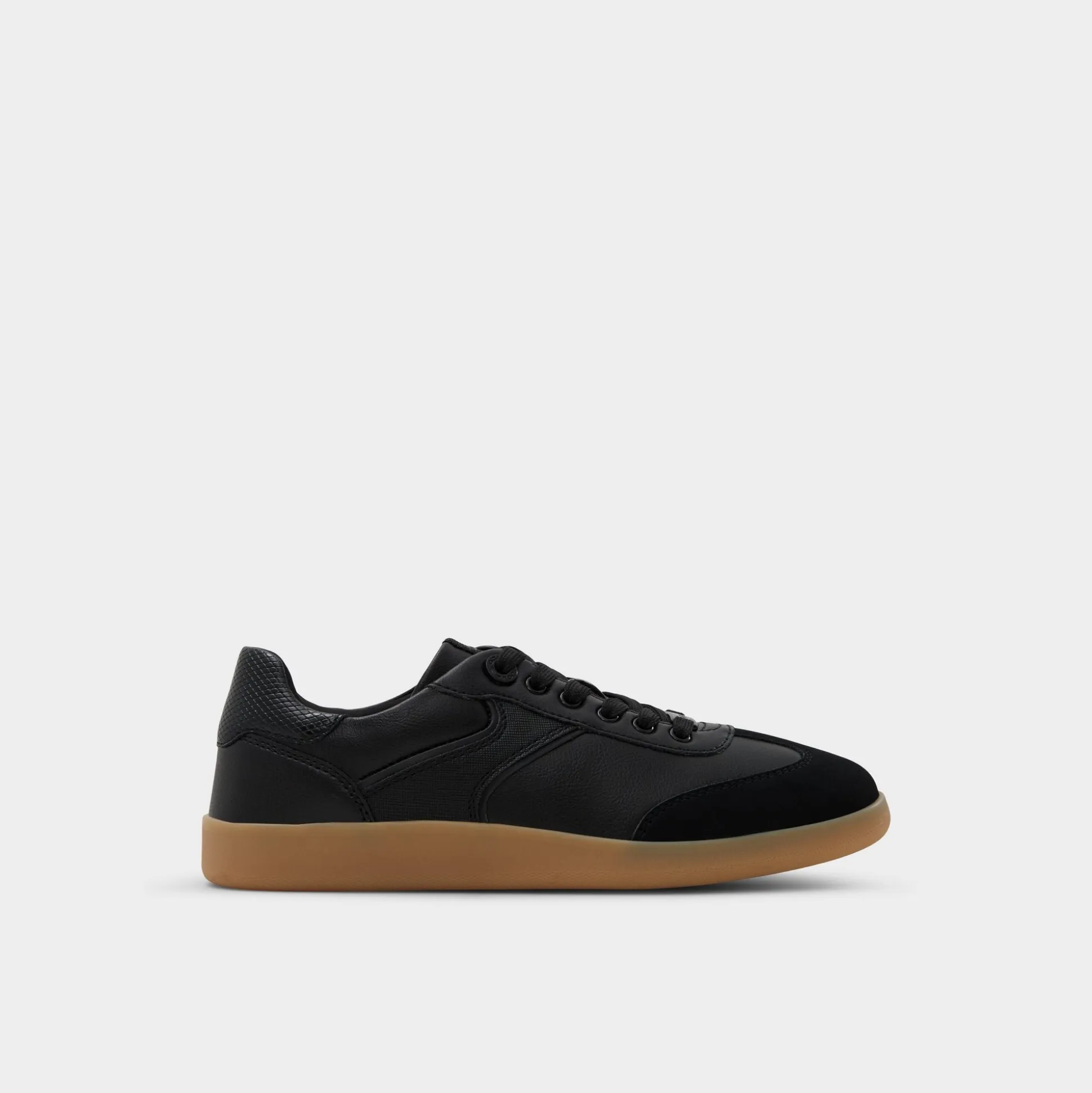 Sleek black panels in smooth and textured synthetics ride above a retro gum cupsole for understated throwback energy while soft textile lining keeps every city dash relaxed. Pair with cropped trousers for co-working catch-ups, or lace them with a satin slip skirt when concert nights call.