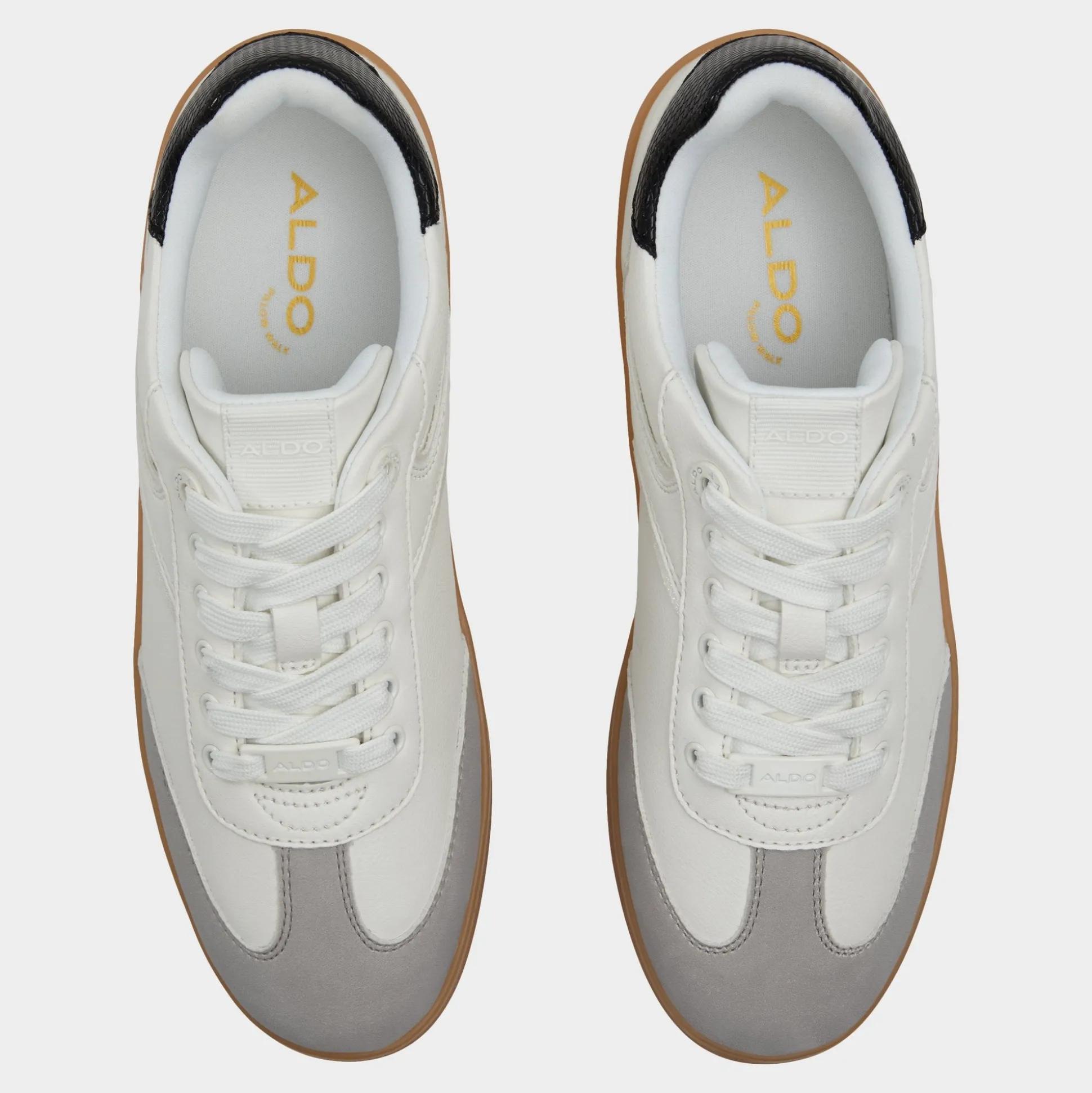 Caramel gum rubber grounds this smooth-leather sneaker, while a soft suede toe cap and noir heel tab nod to vintage court kicks, creating a figure that pairs retro polish with city-ready comfort. Pair with cropped cargos for gallery hops, or swap in a satin slip skirt when late-night ramen calls.