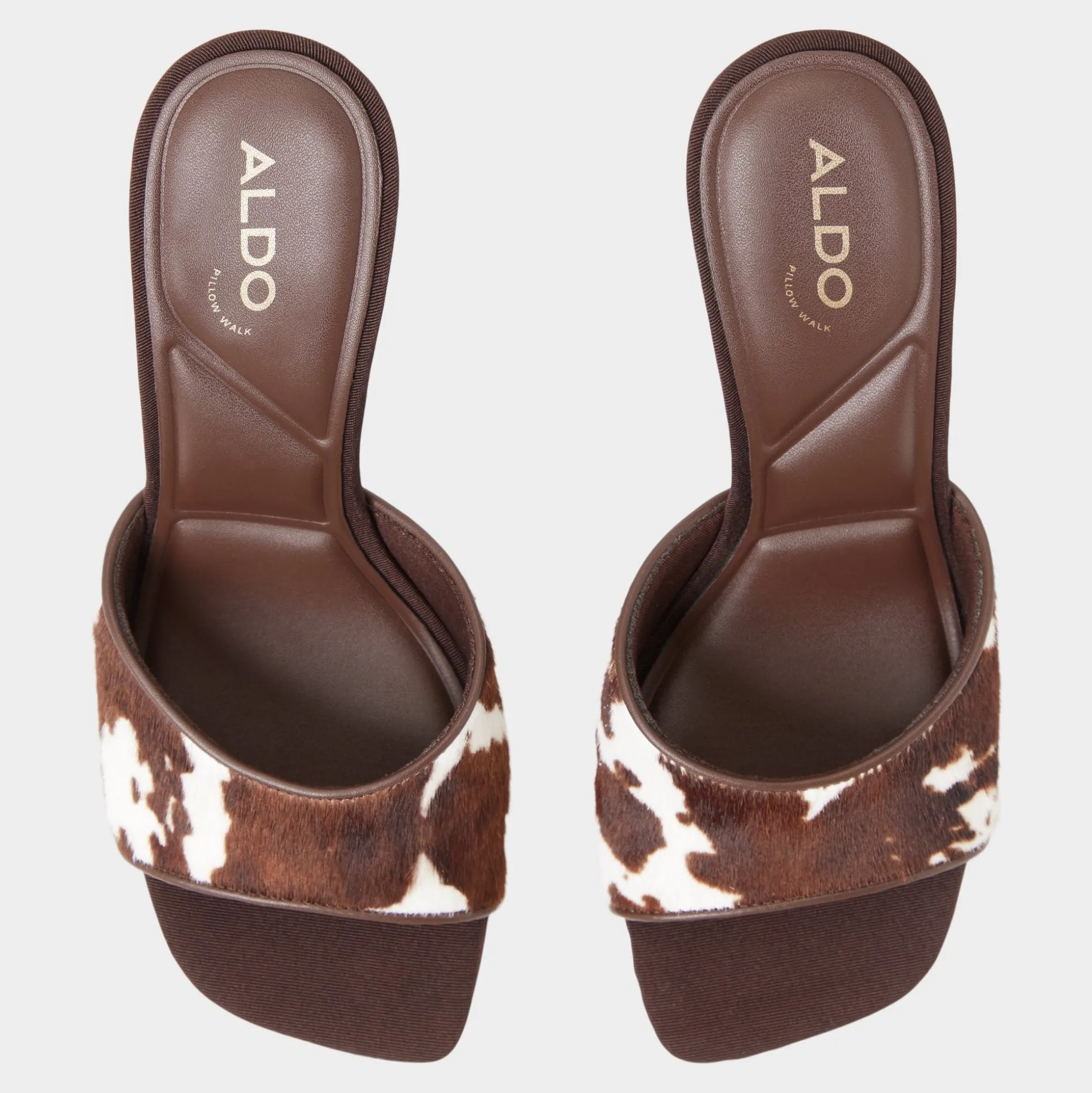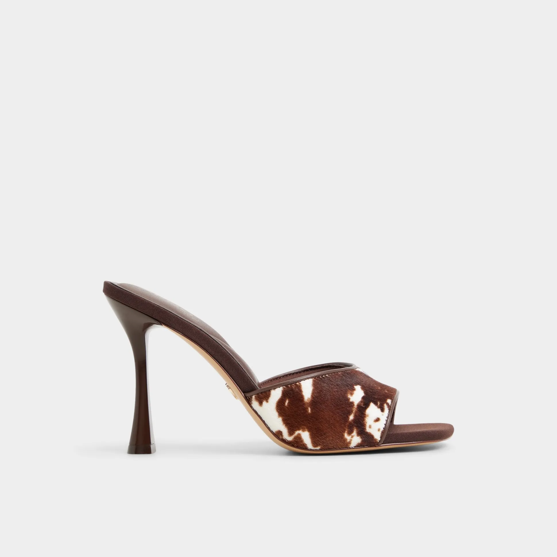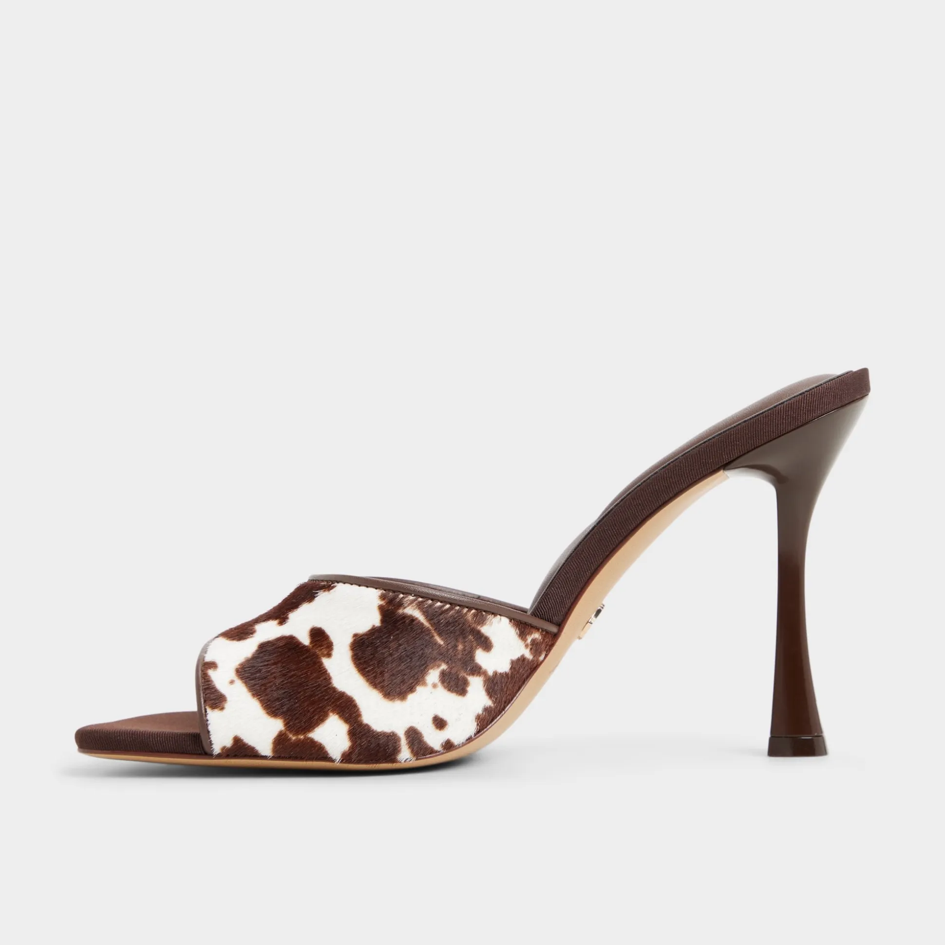 Cowhide spots meet polished leather on a sleek mule, where a flared stiletto elevates the silhouette and trusted comfort lets you glide from morning meetings to evening plans with ease. Pair with tailored shorts for gallery hops, or slide beneath a slinky dress when dinner reservations turn into impromptu dance floors.