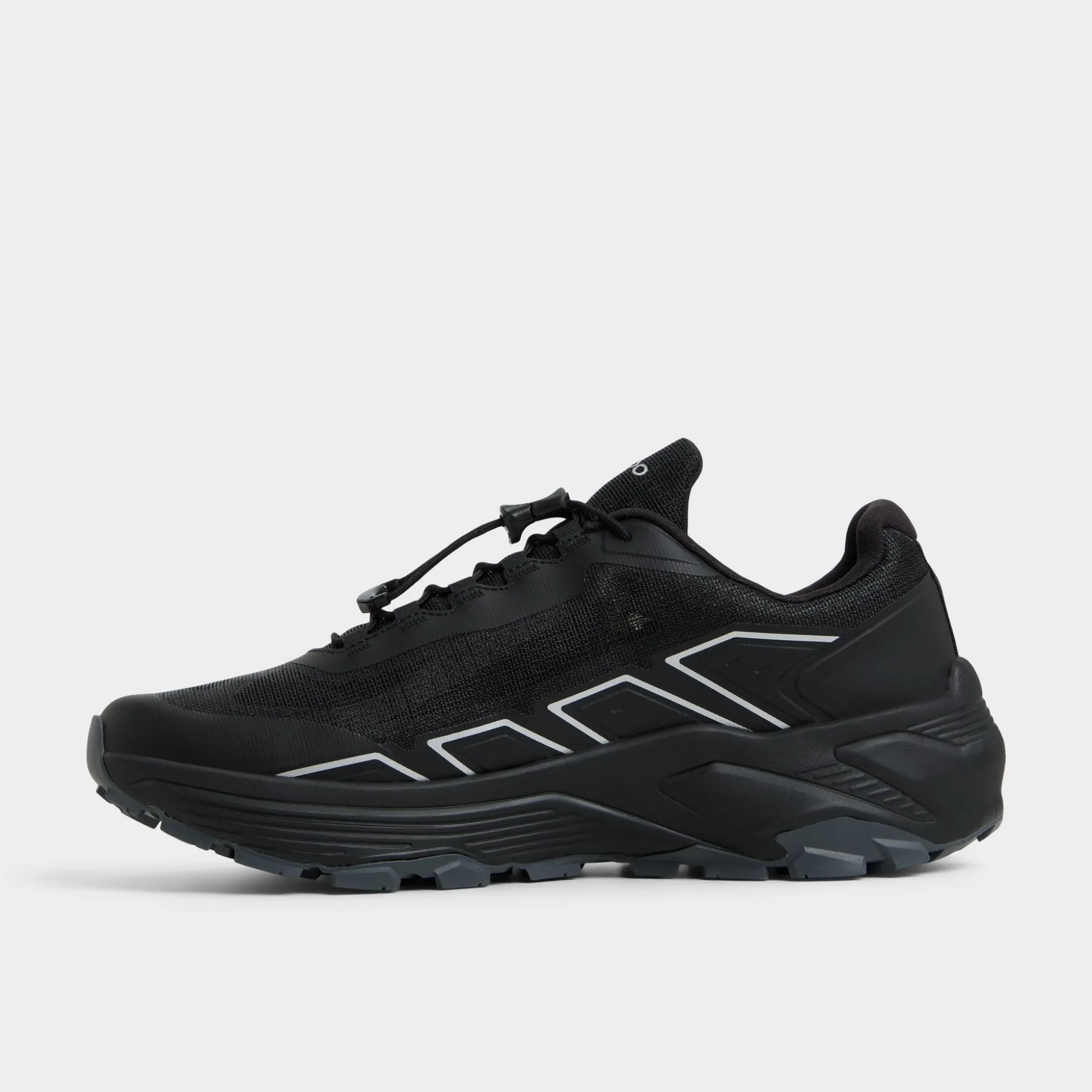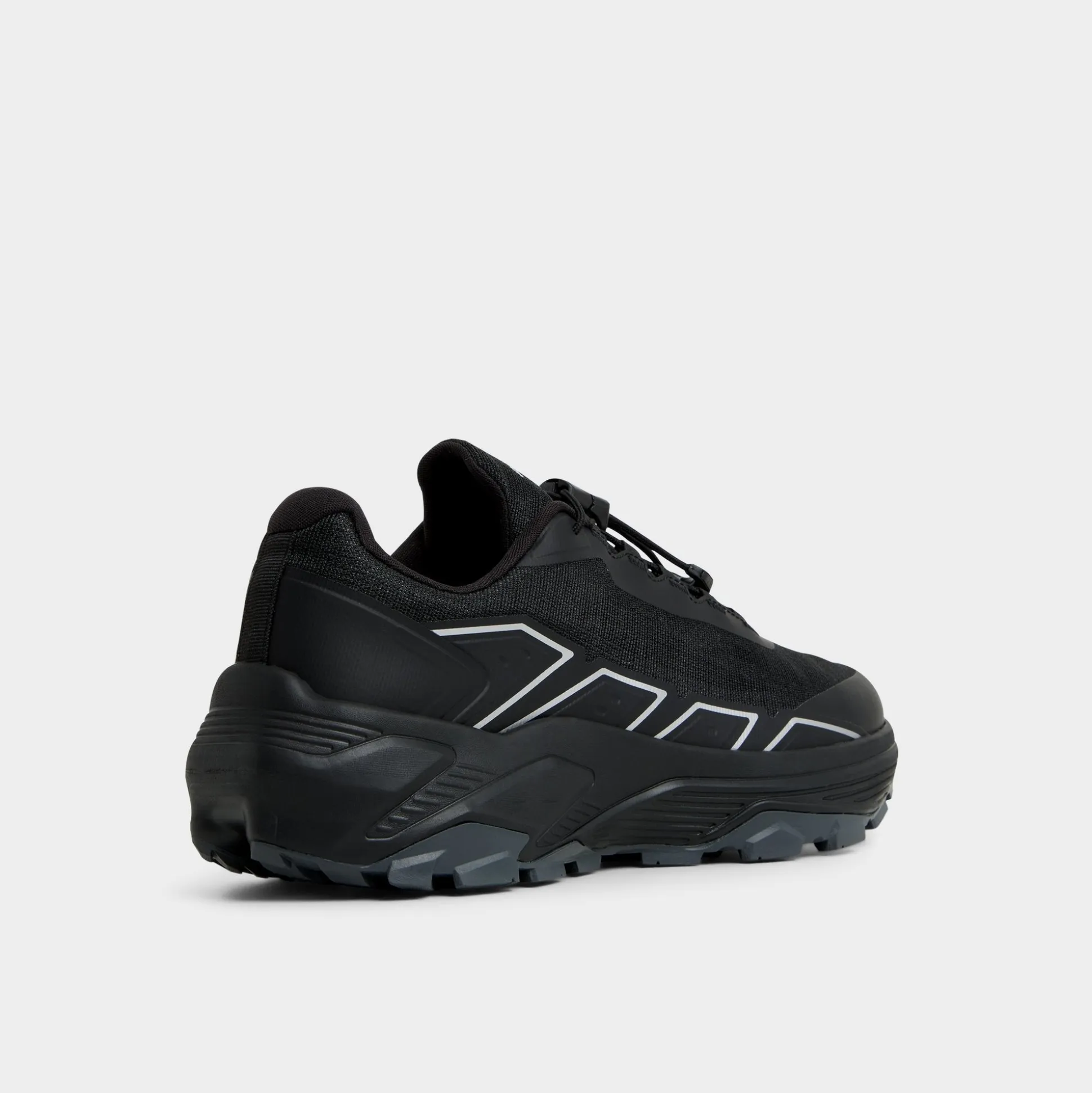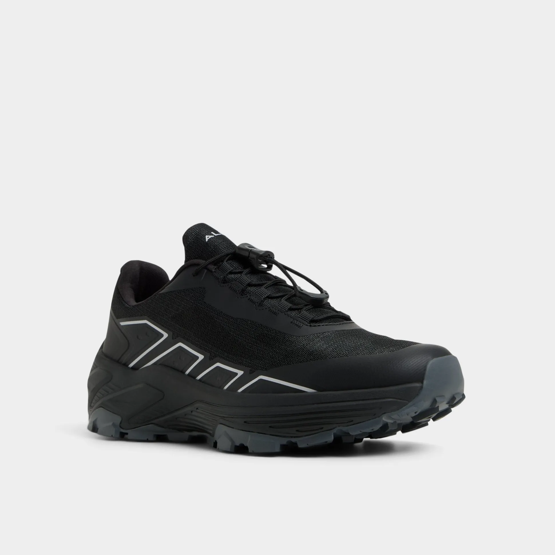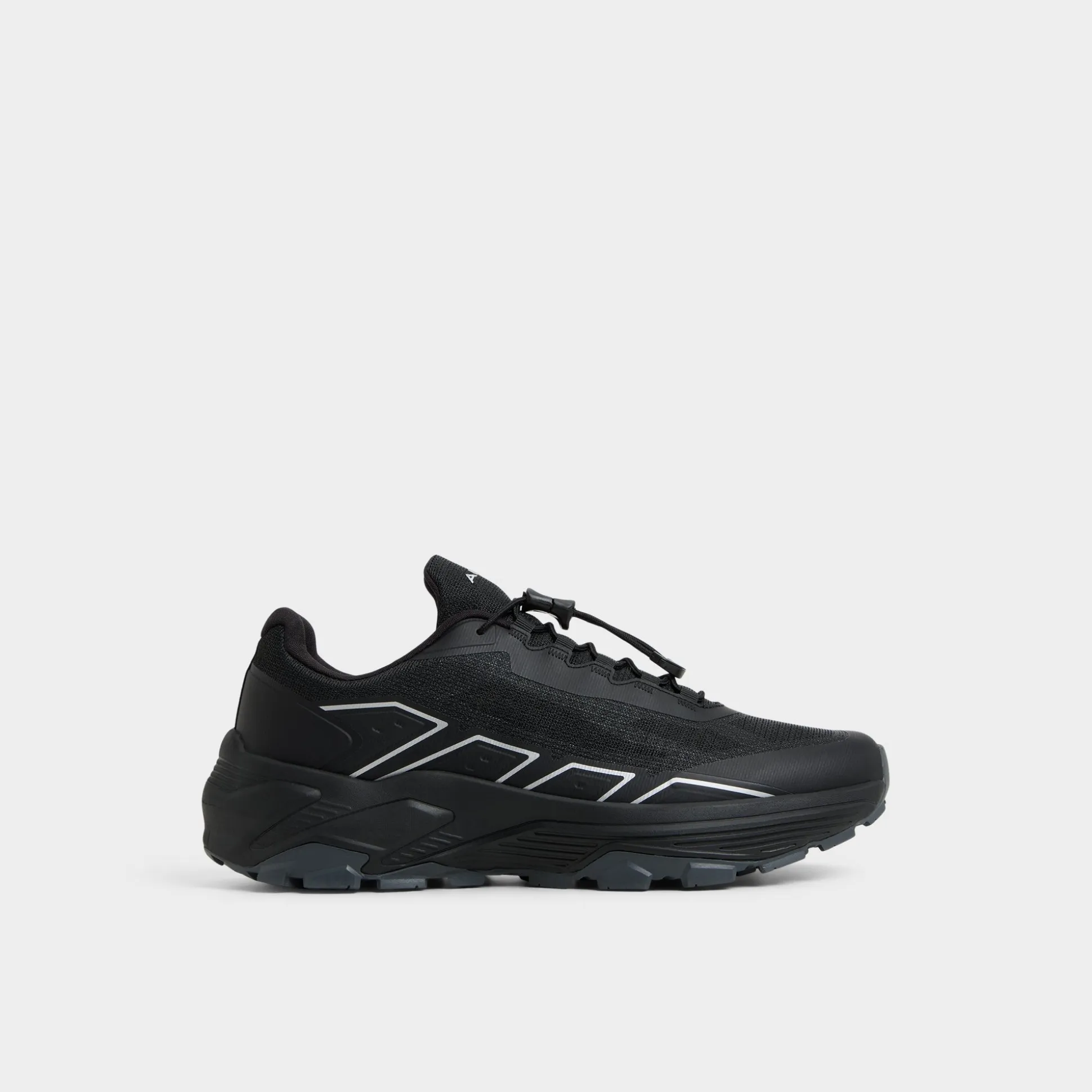 Black low-tops sport a synthetic mesh with little reflective overlays that catch light beautifully, while a chunky outsole grips pavements yet stays light on your feet. Team them with tapered joggers for a flight or ground them beside cargos during treks-the all-black design fits in effortlessly wherever you head.