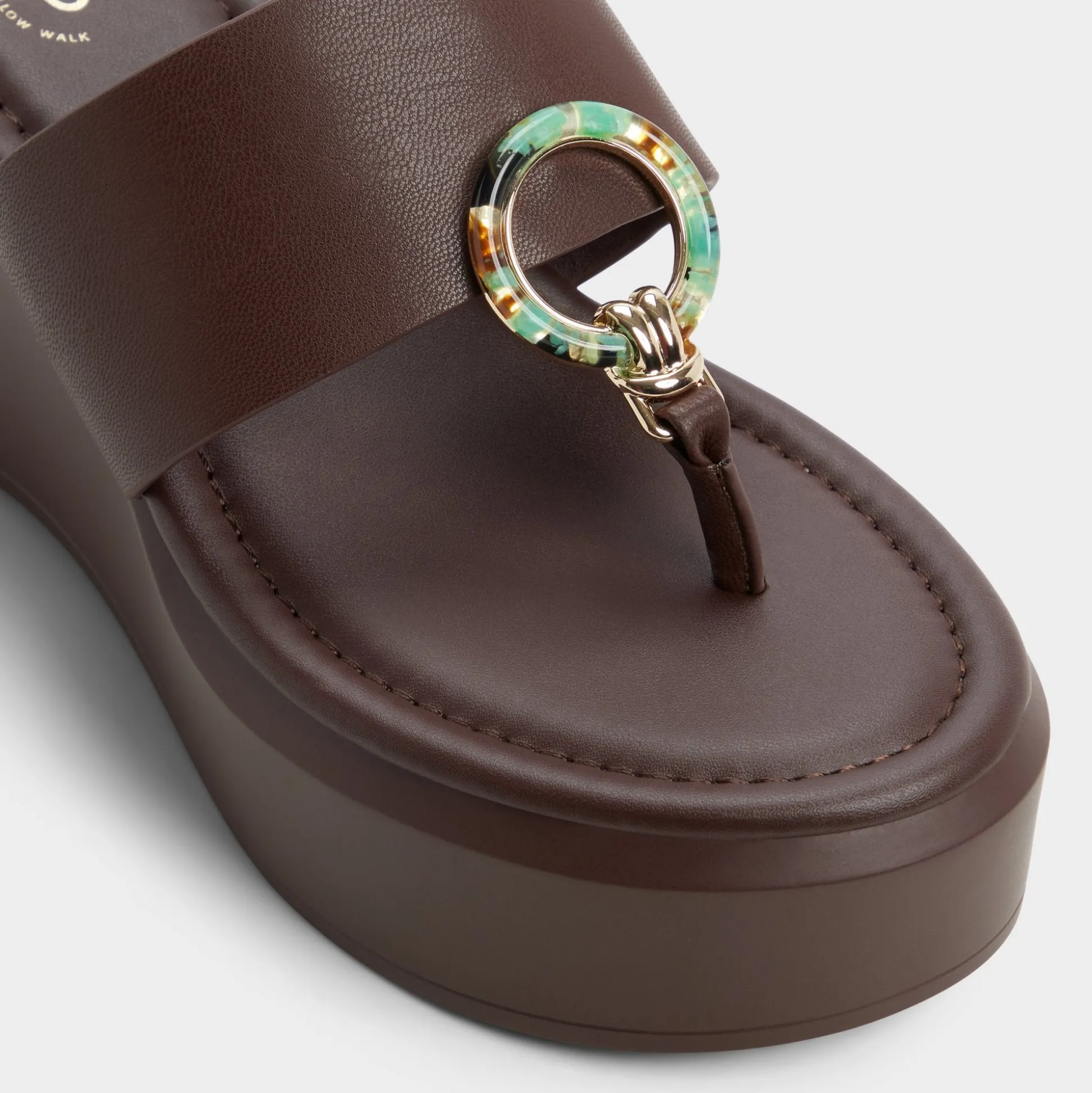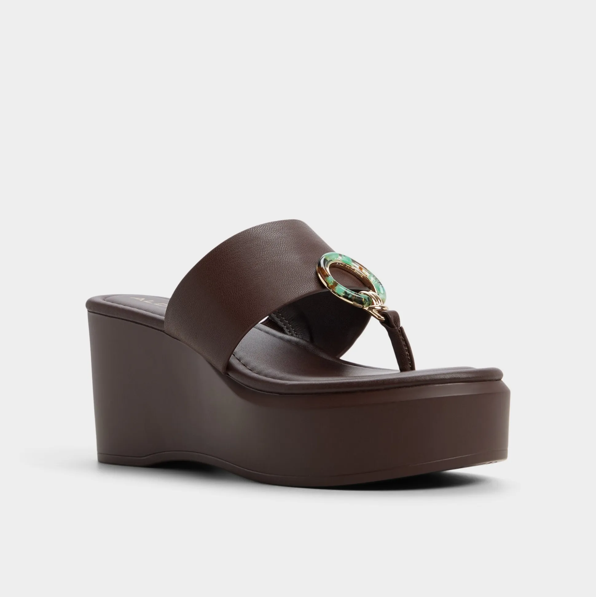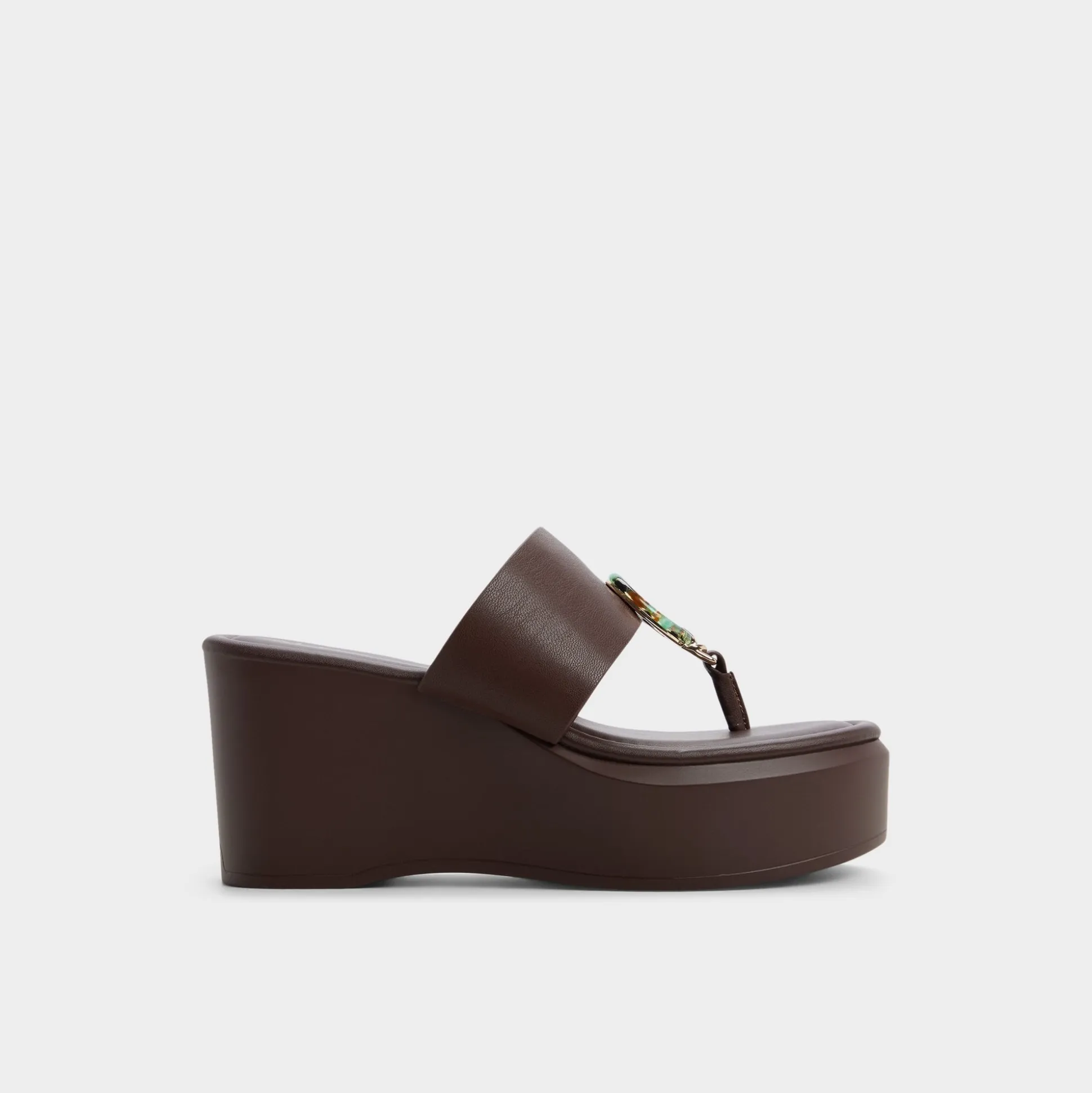 Slip into effortless style with the Friegan wedge thong sandal. This chocolate brown beauty features a decorative ring detail that catches the light, while the comfortable wedge heel keeps you steady through beach days and seaside strolls. Perfect for warm-weather escapes where comfort meets understated elegance.