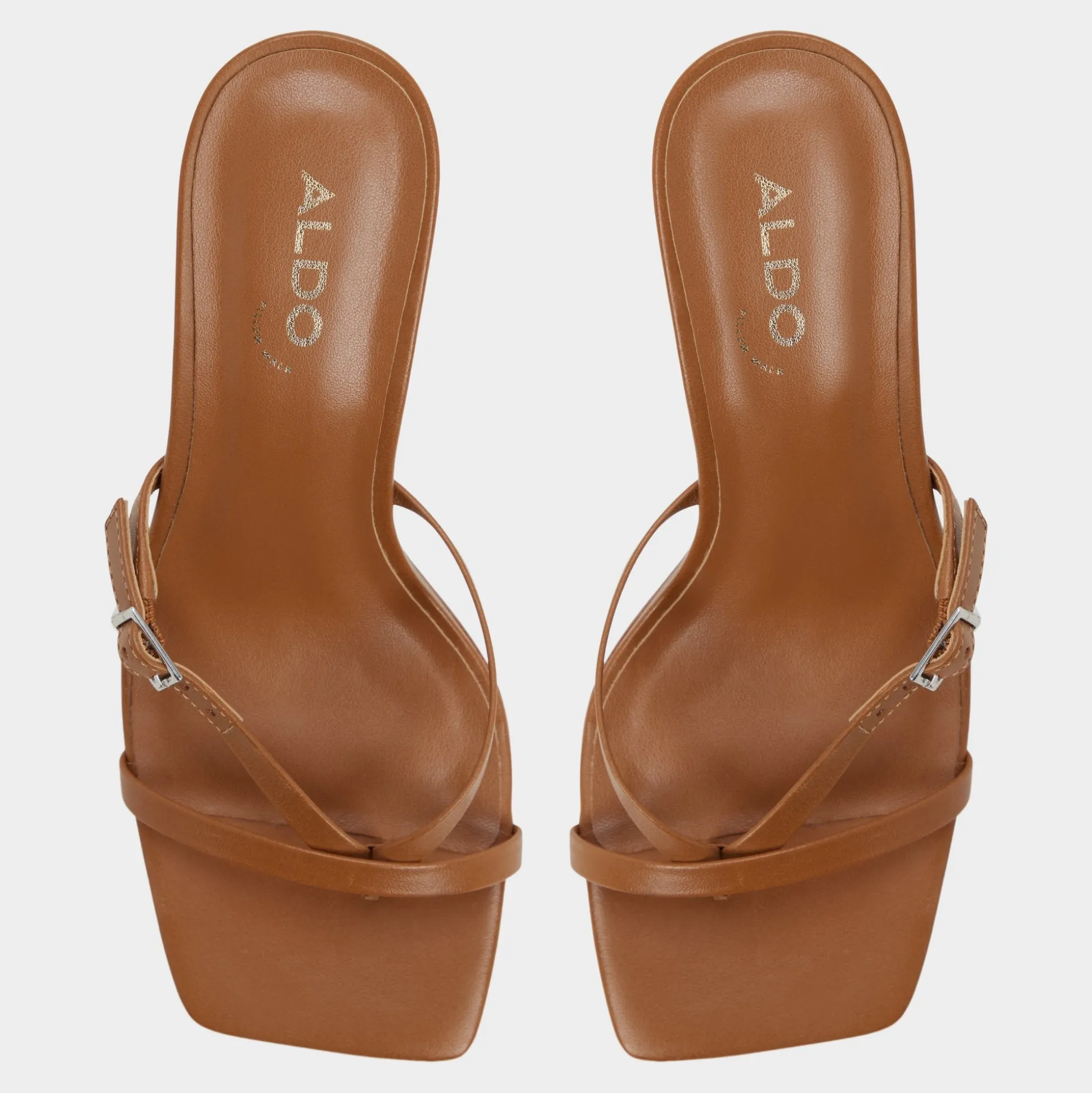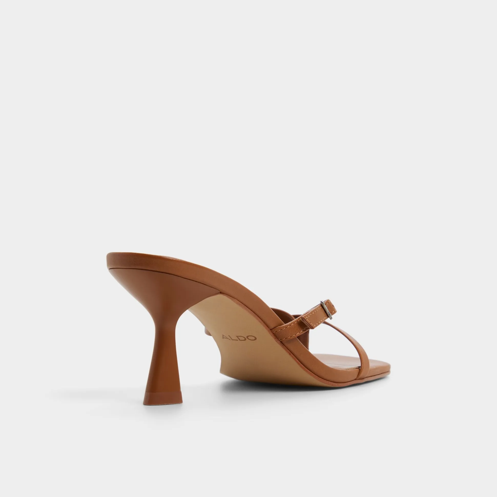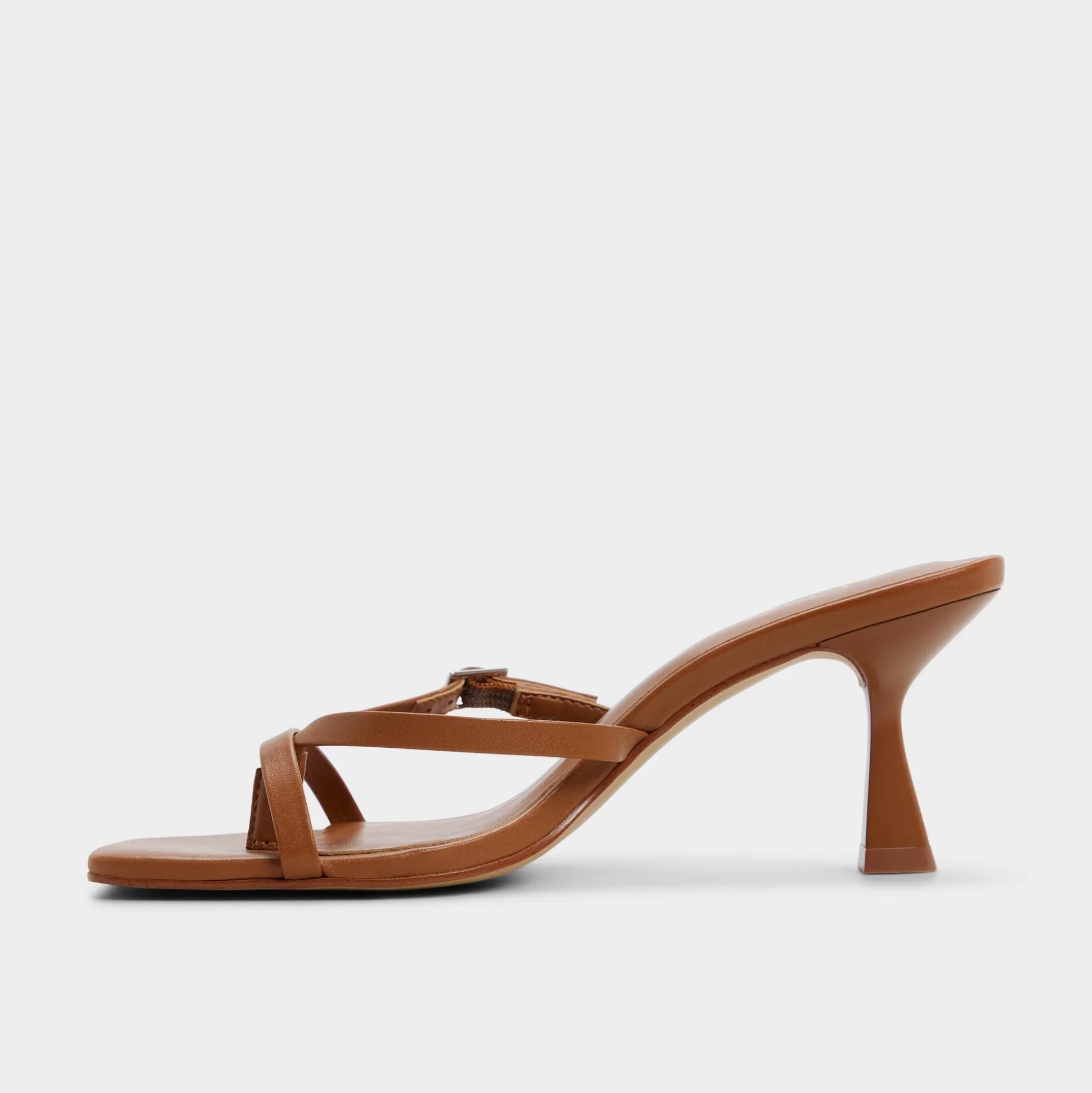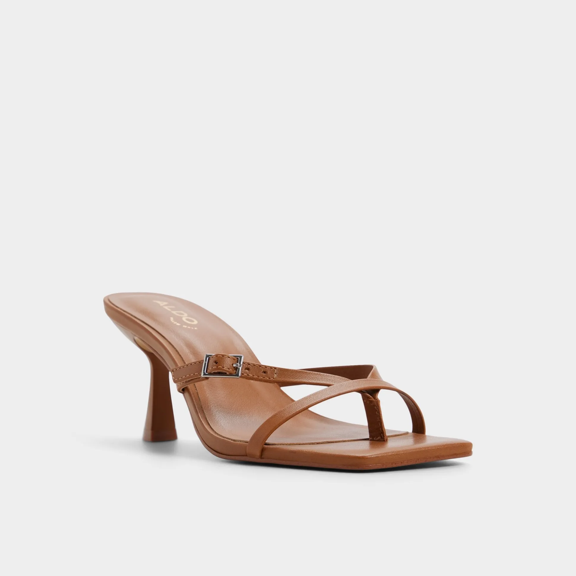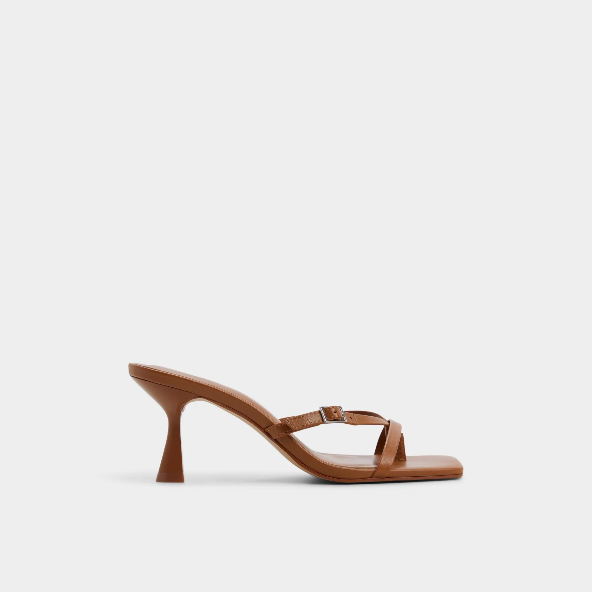 Caramel leather winds into minimalist toe-loop harnesses, lifted by a flared stiletto that turns sidewalks into runways with every bold stride and a quiet polish that elevates day into night. Pair with tailored trousers for boardroom confidence, or slip beneath a satin dress as rooftop drinks drift into starlit conversations.