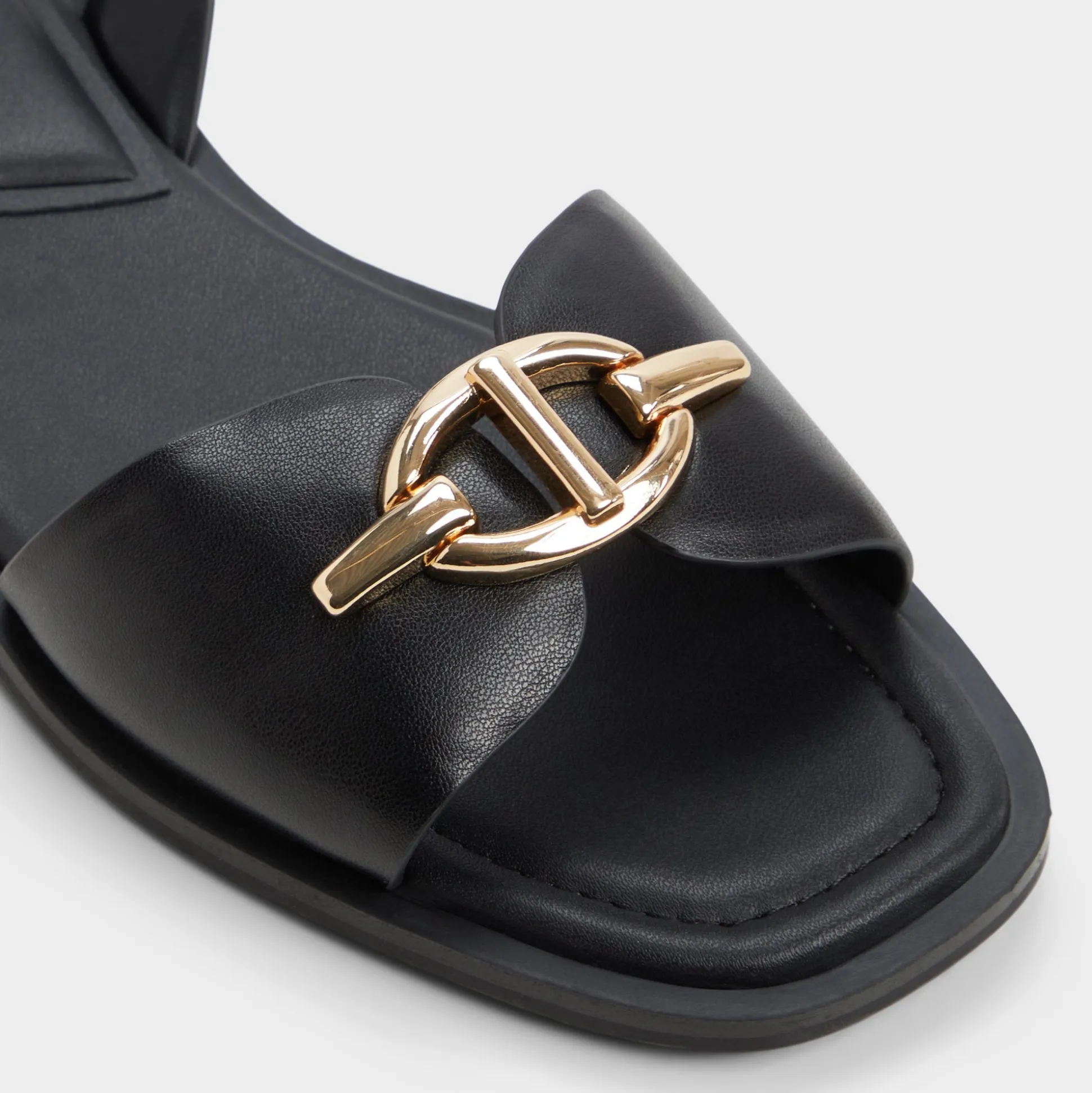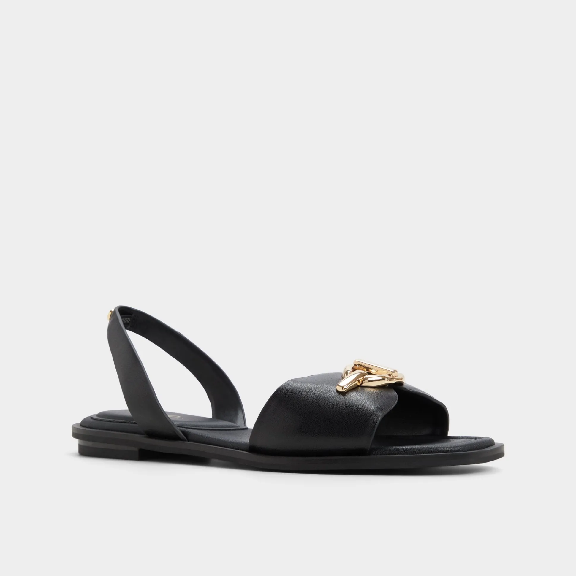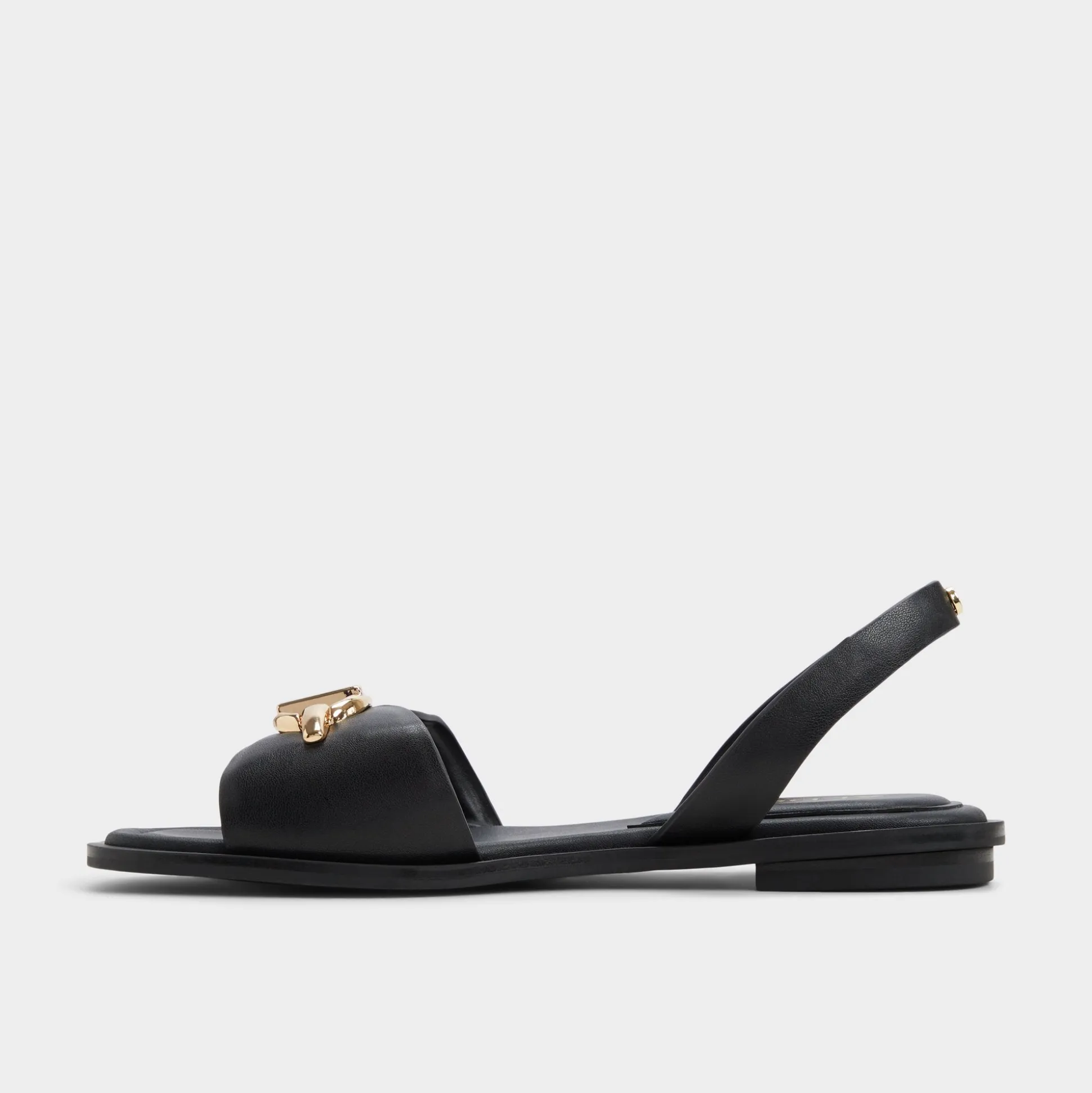Gold-toned buckles crown pillowy straps as cloud-soft padding cushions every step, turning minimalist flats into all-day steadiness from city queues to gallery hops, while the refined silhouette keeps the look clean and polished. Pair with cropped trousers for a polished office moment, or slip on with a satin midi for rooftop-dusk celebrations.
