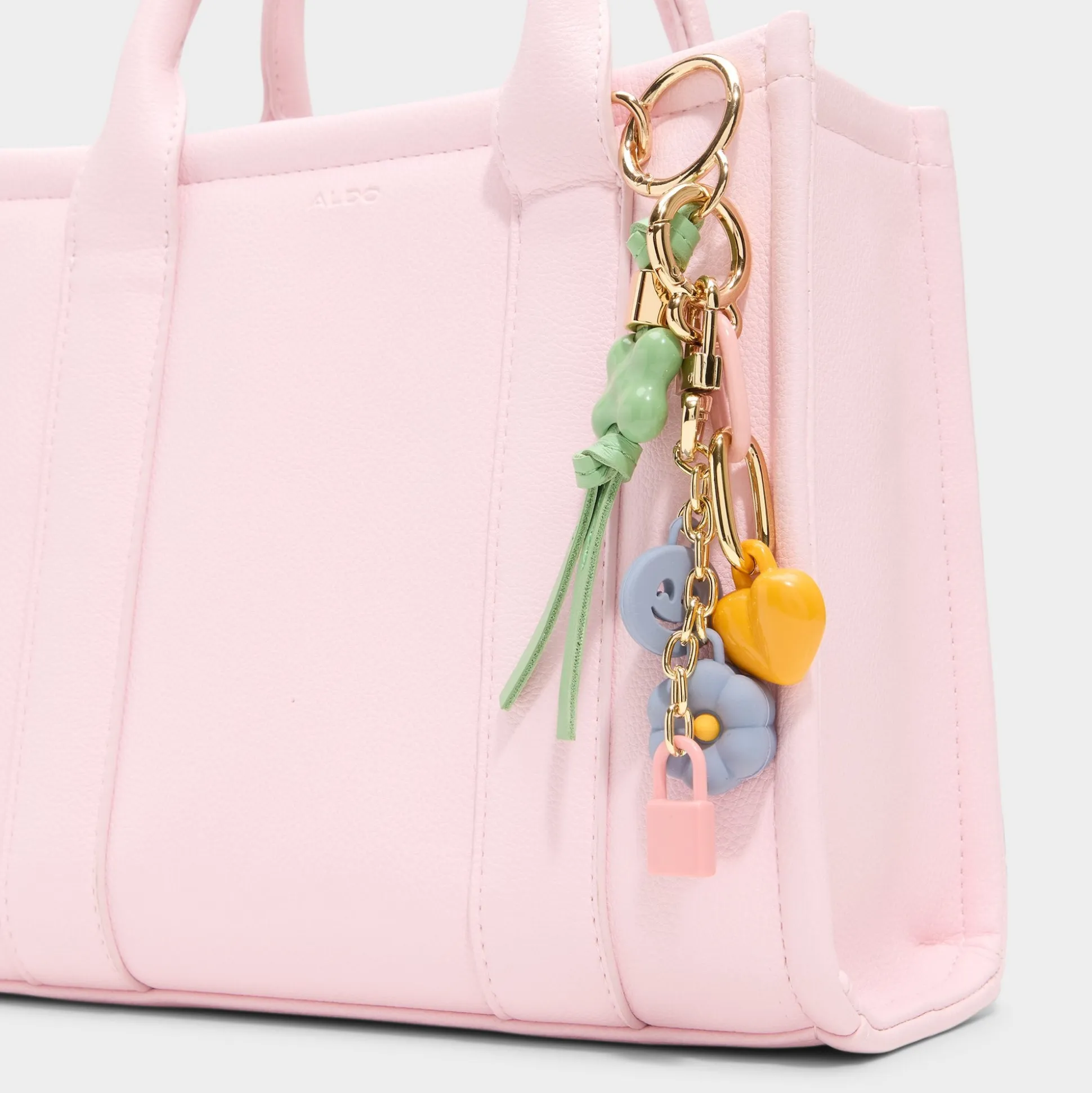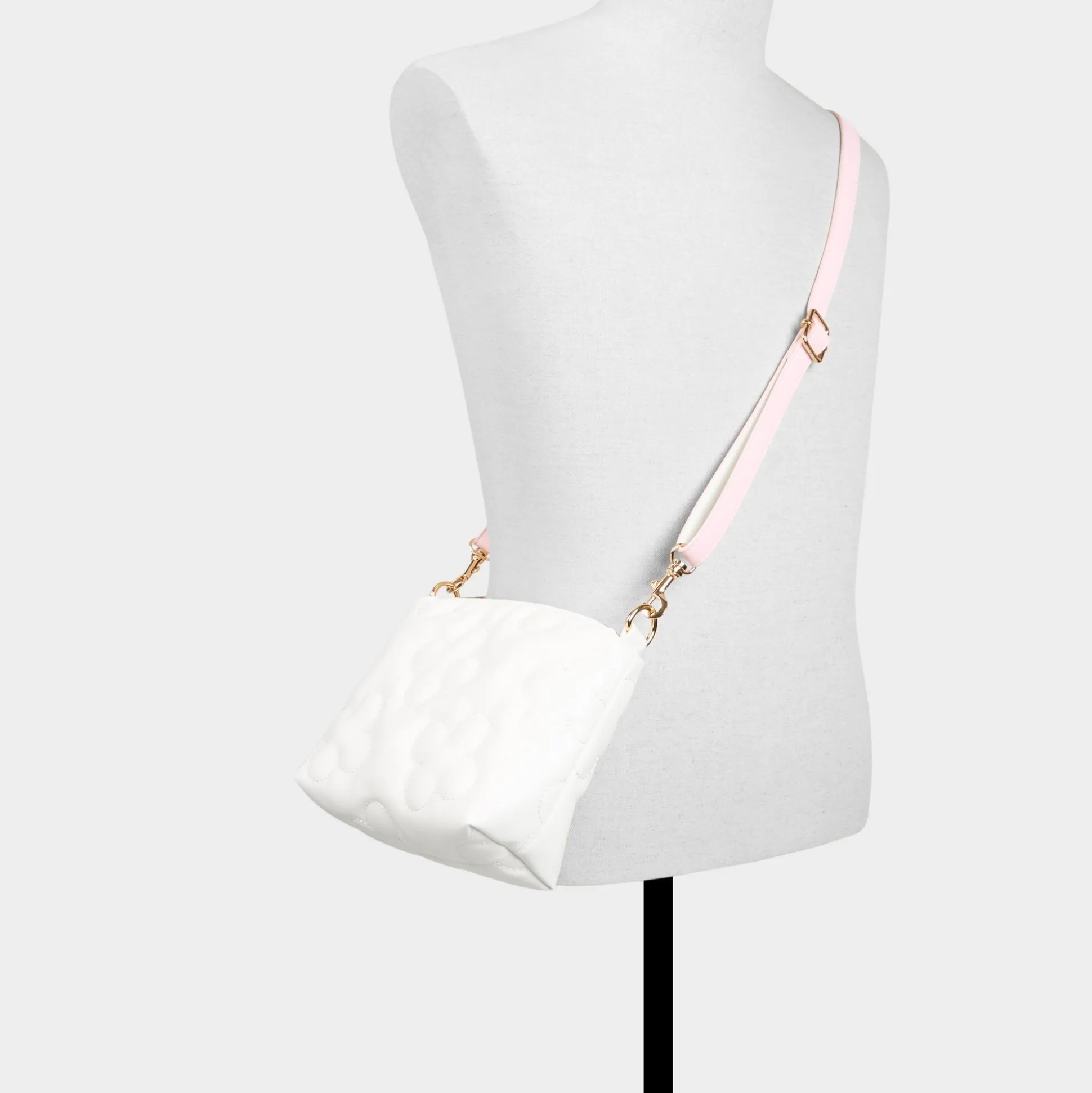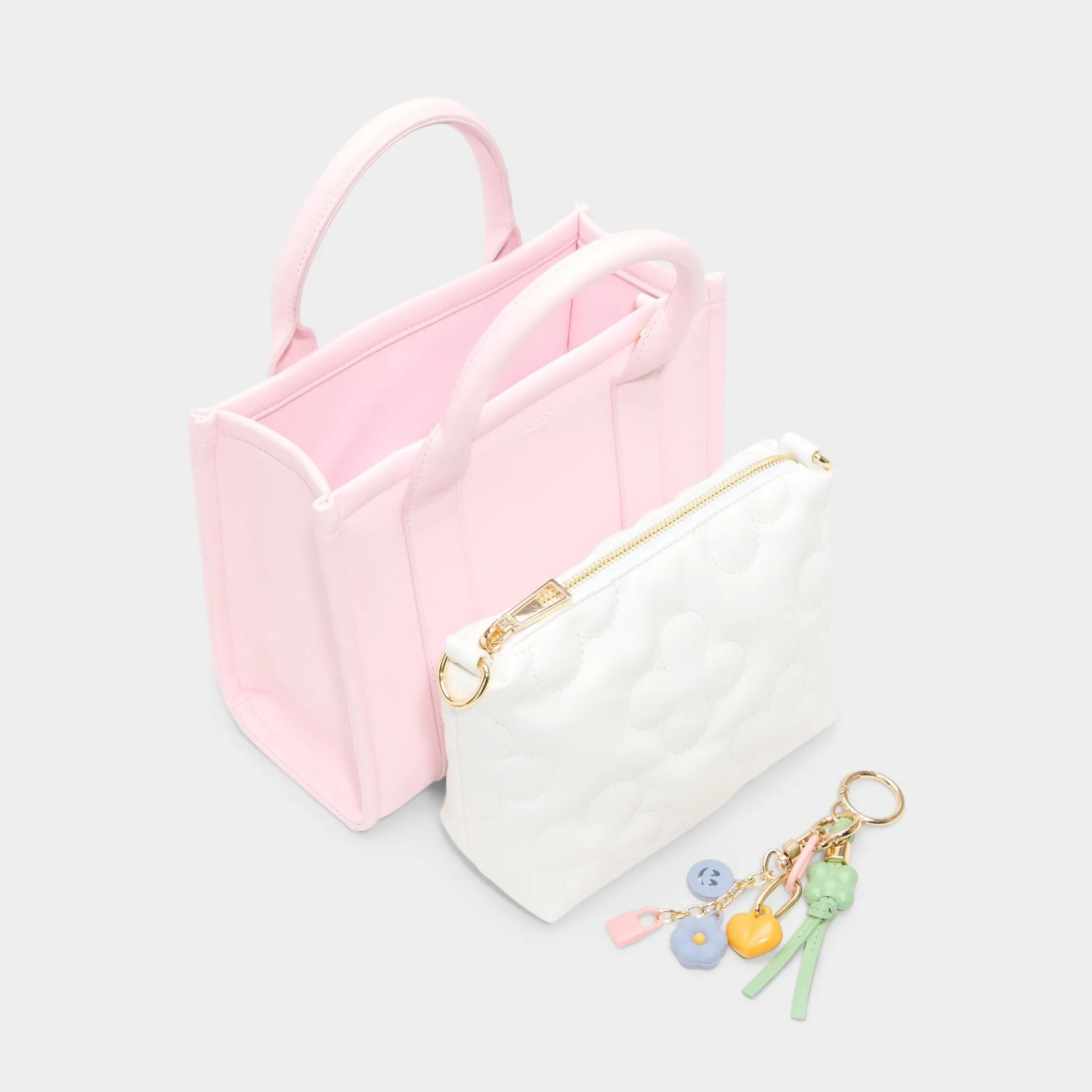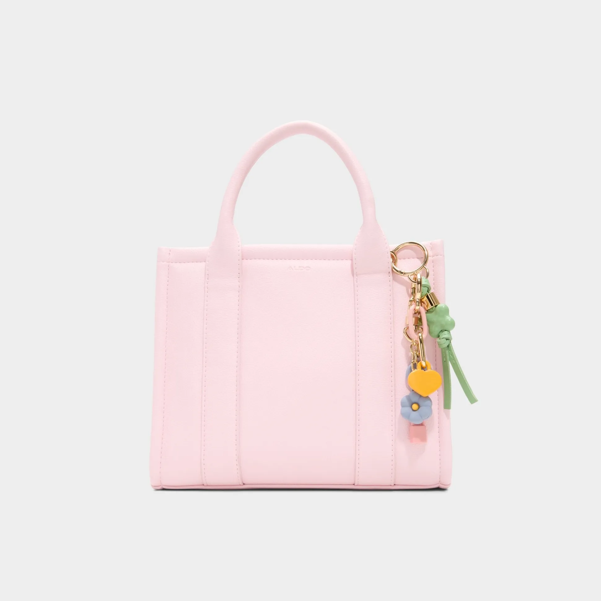 Pillow-soft marshmallow-pink panels frame this petite tote, with clean vertical seams and a flower-and-heart charm that adds playful mood as you go about your day, from morning coffee to sunset strolls. Carry it with linen pants for cafe mornings, or sling it with a sundress and sandals for outdoor dining.