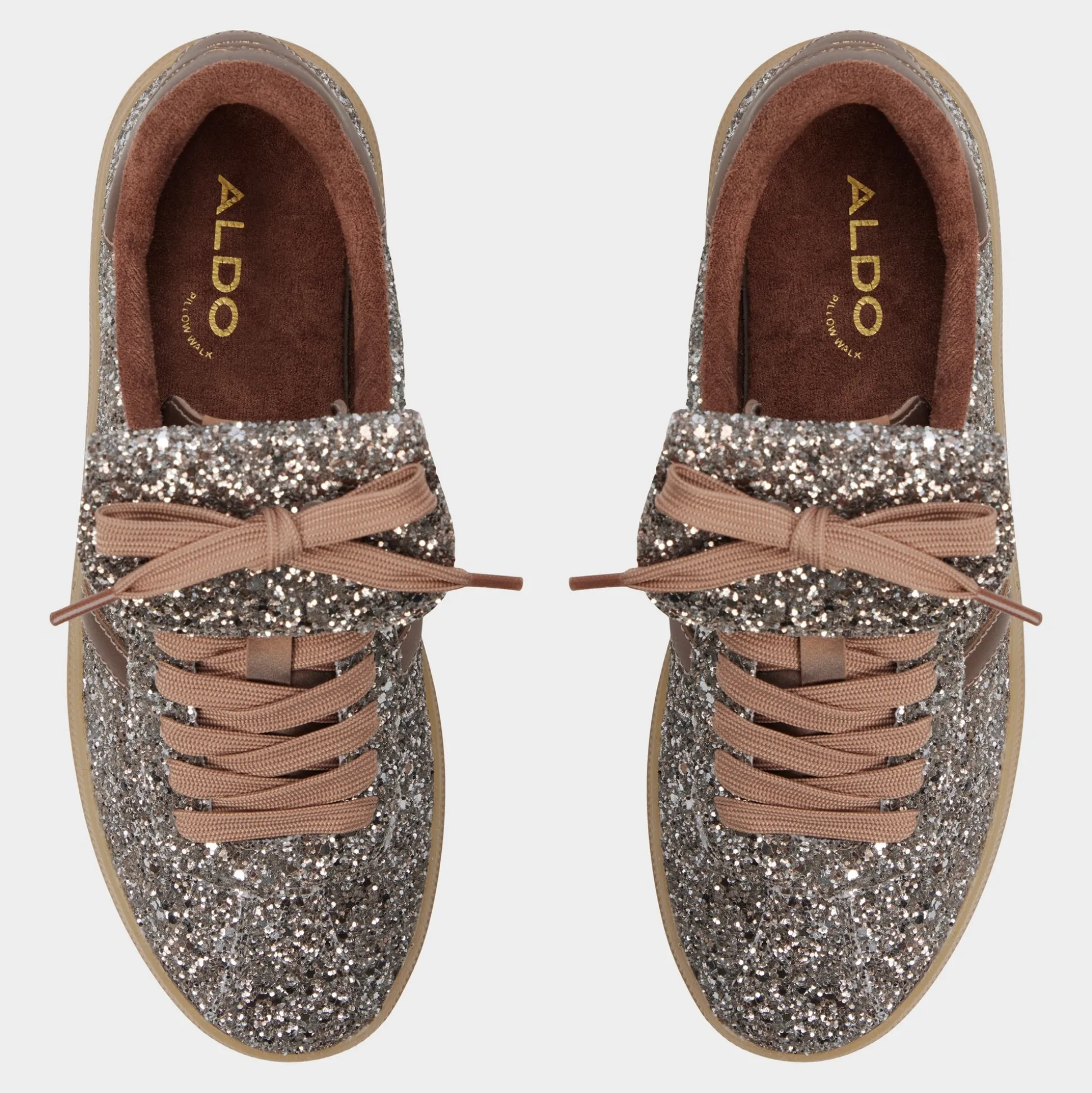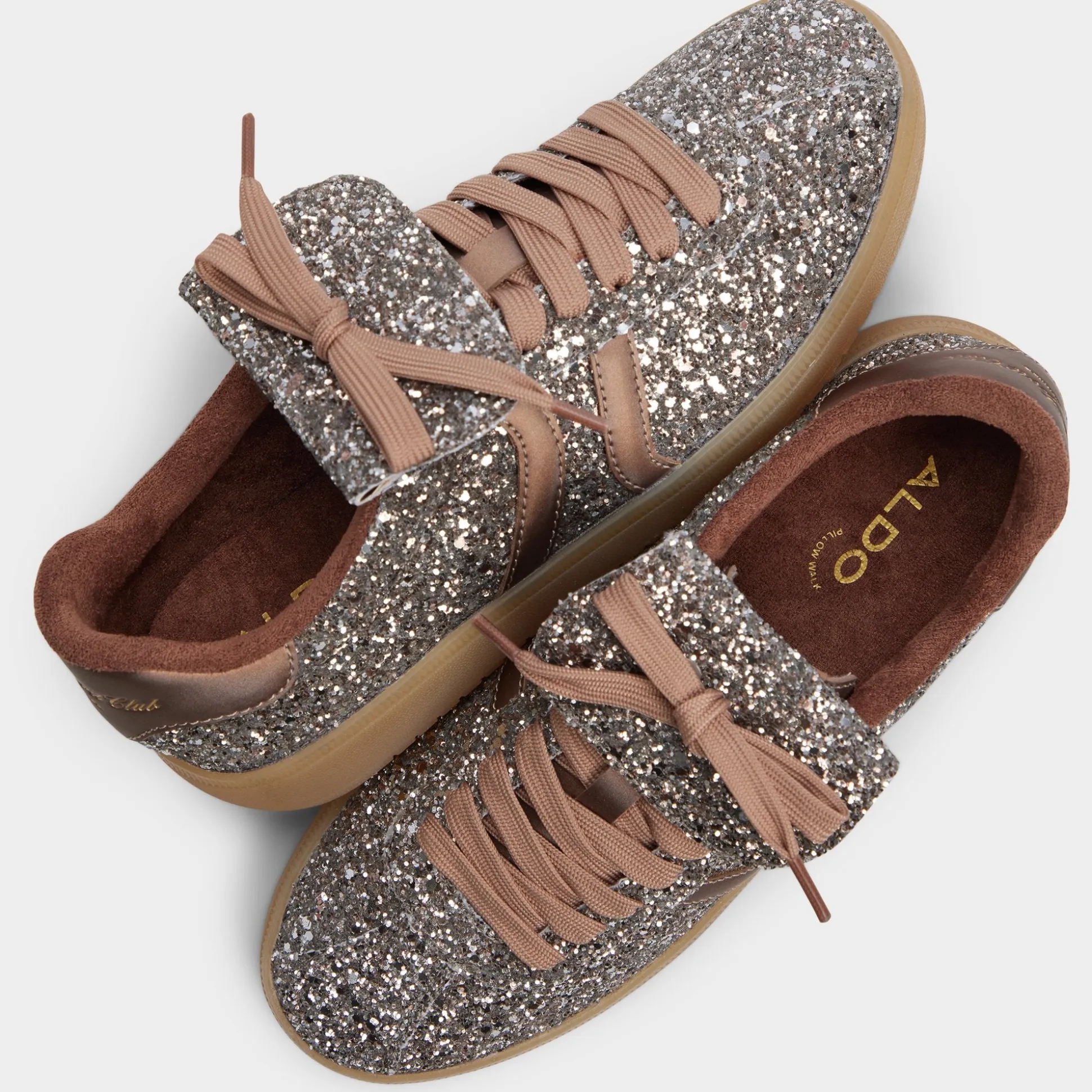 Wall-to-wall glitter crowns this retro sneaker, turning every stride into a disco-ball moment, with buttery trims and a gum sole that grips the rhythm from street to stage. Pair with slouchy denim for brunch catch-ups, or swap in a silky skirt for festival lights and late-night stories.