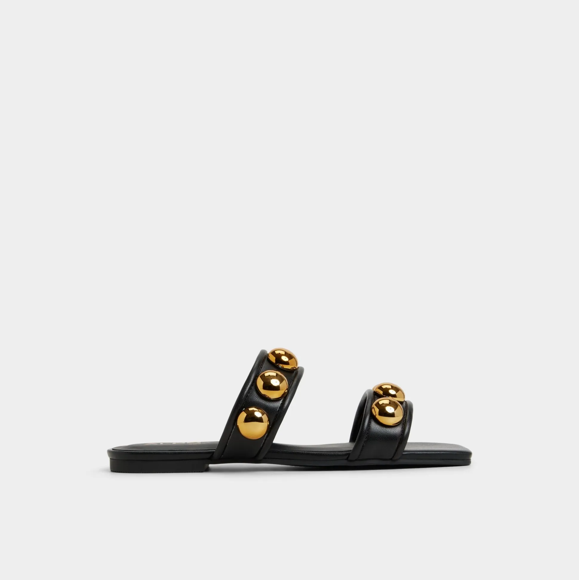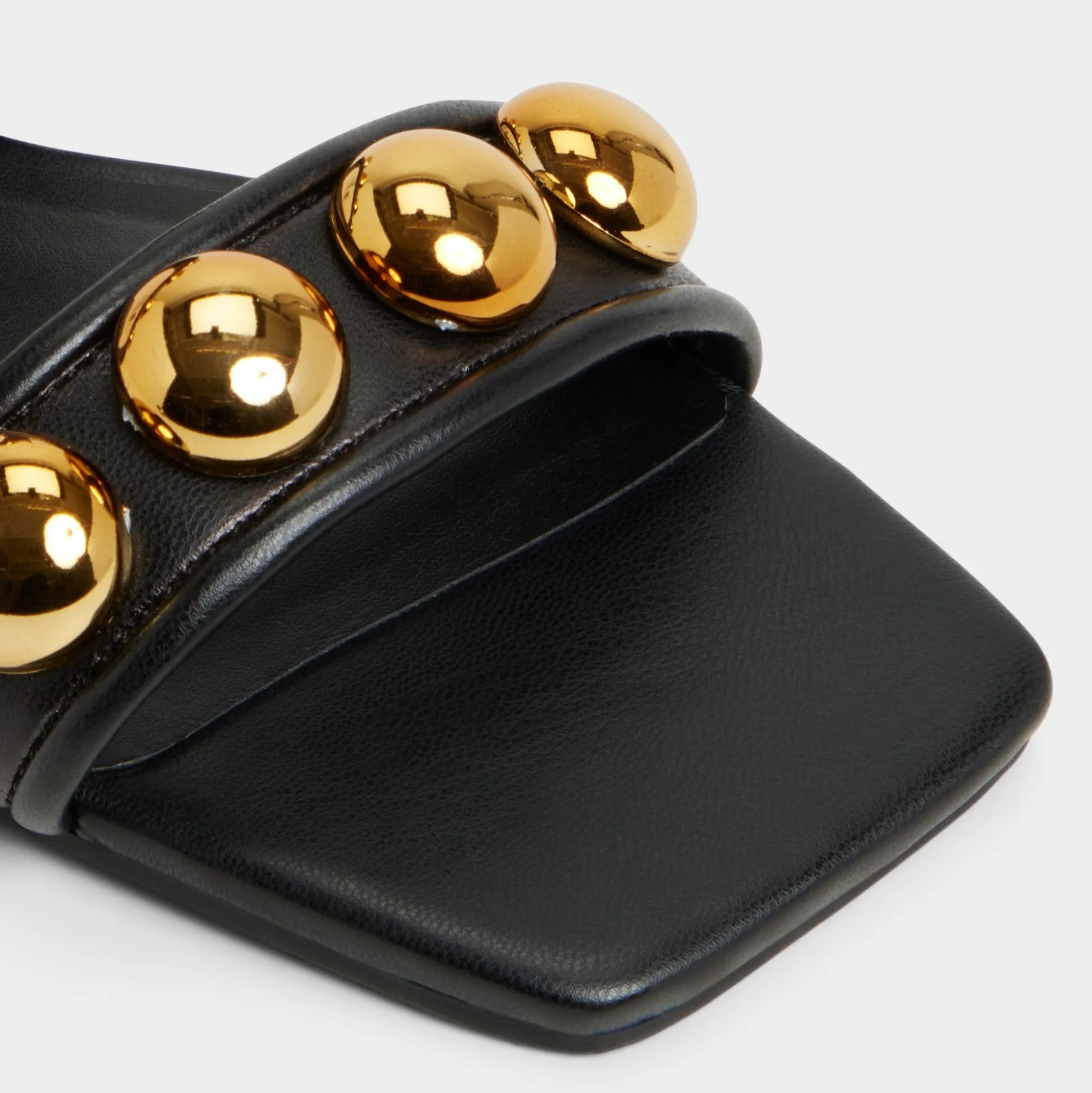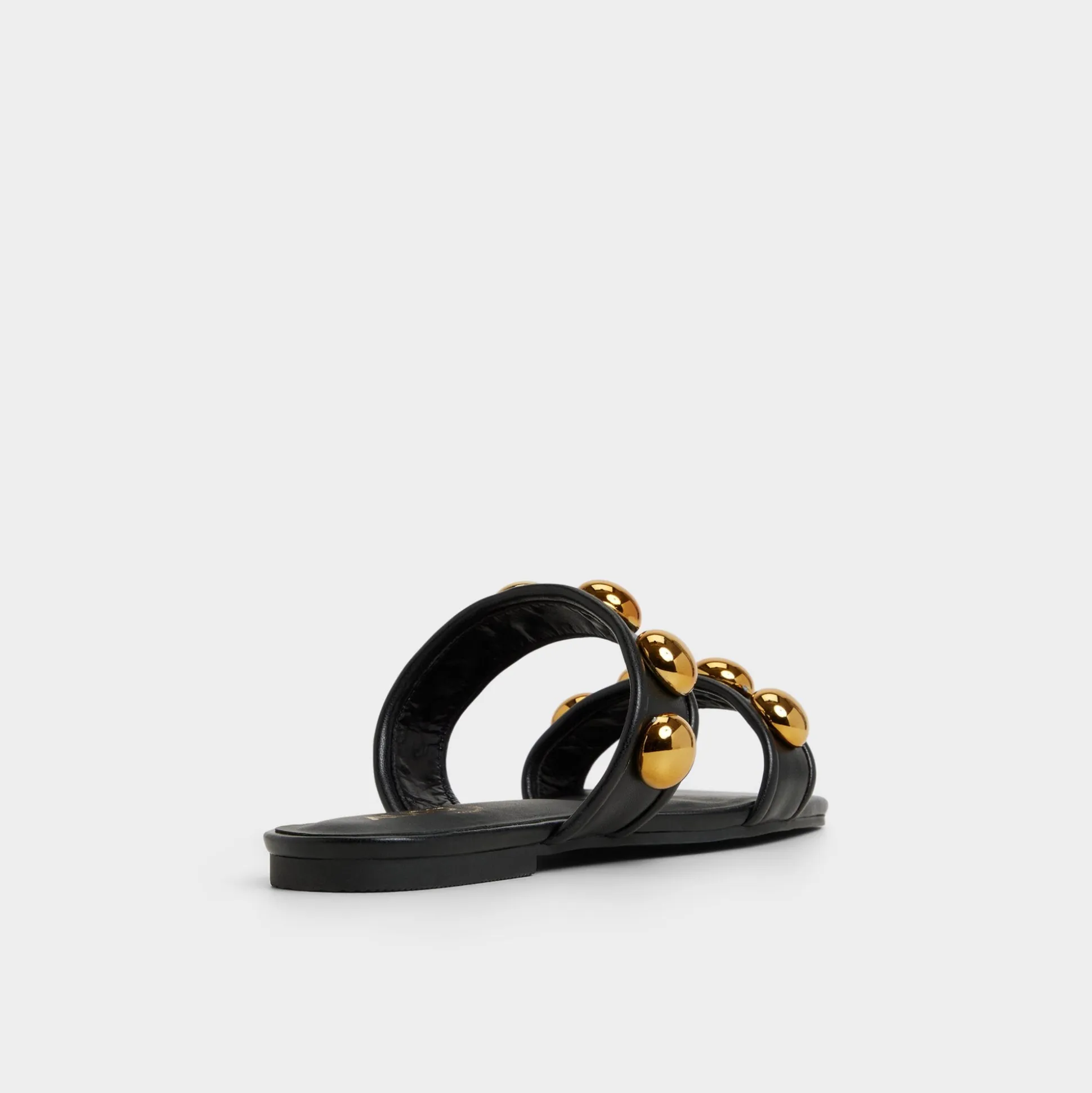 Gold studs crown two smooth straps, turning slides into jewelry as a plush, cushioned footbed keeps every step calm and collected from morning errands to sunset city strollers and ready for spontaneous plans. Pair with linen trousers for art fairs, or slip under a blazer dress for cocktail calls.