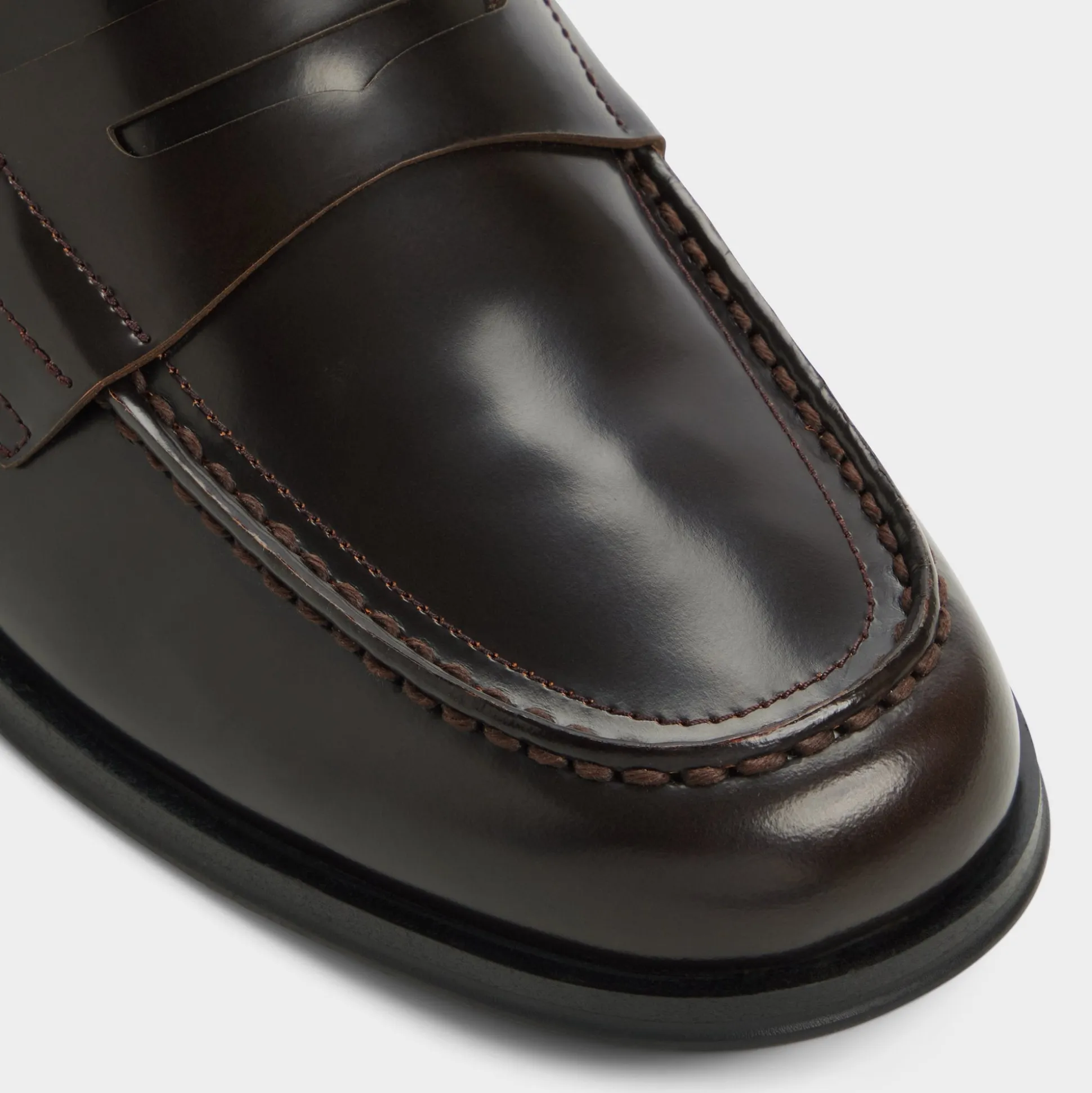 Mirror-gloss espresso leather envelops this penny loafer, with a full leather lining and outsole that breathe while conforming to your feet, delivering comfort from work to evening outings. Pair with charcoal suits for morning meetings or complete rolled selvedge denim for casual date nights-the polished almond toe guarantees a thought-out look every time.