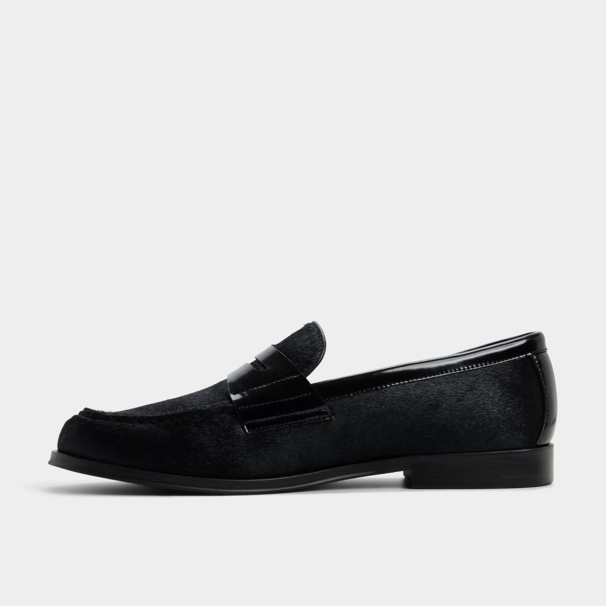 High-shine leather penny strap meets velvety black suede, creating sharp dimension, with a low-profile rubber cupsole offering comfort from early office walks to late lounge sessions. Pair with cropped charcoal trousers for client lunches or style with dark denim at cocktail hour-the minimalist silhouette keeps your look understated.