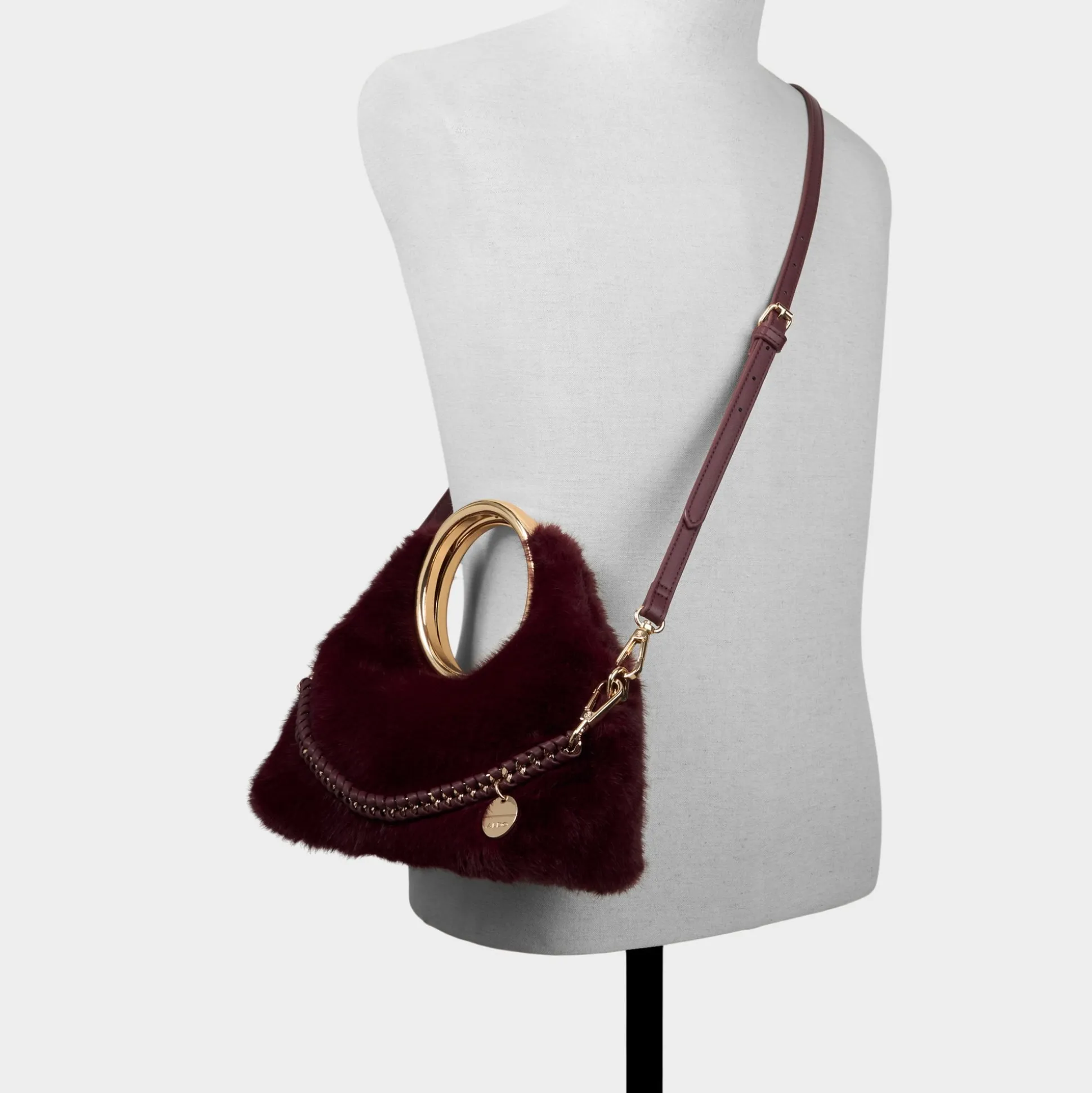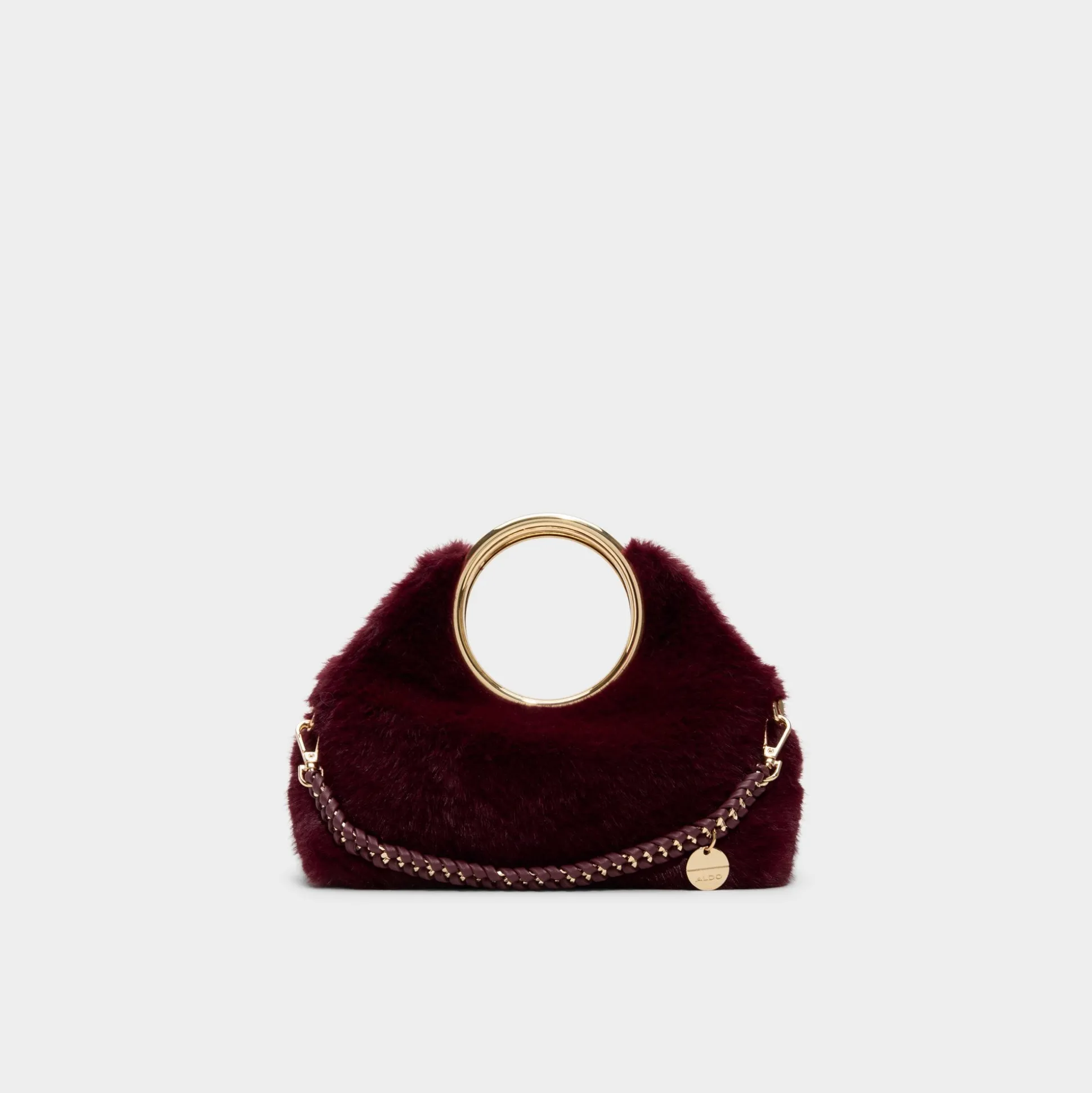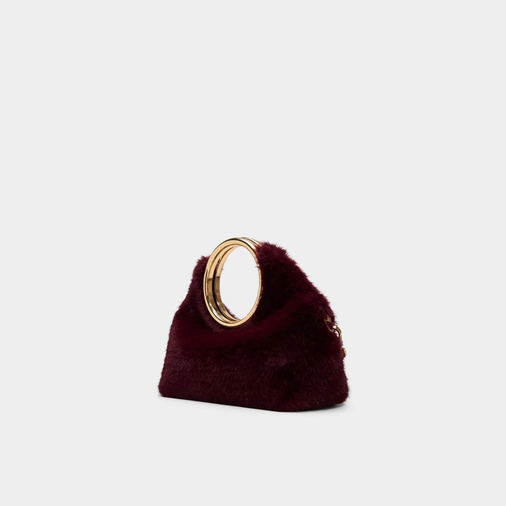 Burgundy faux fur meets gleaming ring handles in a mini bag that switches from arm candy to hands-free in seconds, thanks to a braided chain strap that feels equally ready for party time and casual days. Carry it with velvet for holiday parties or sling over denim on coffee runs to finish the look with effortless polish.