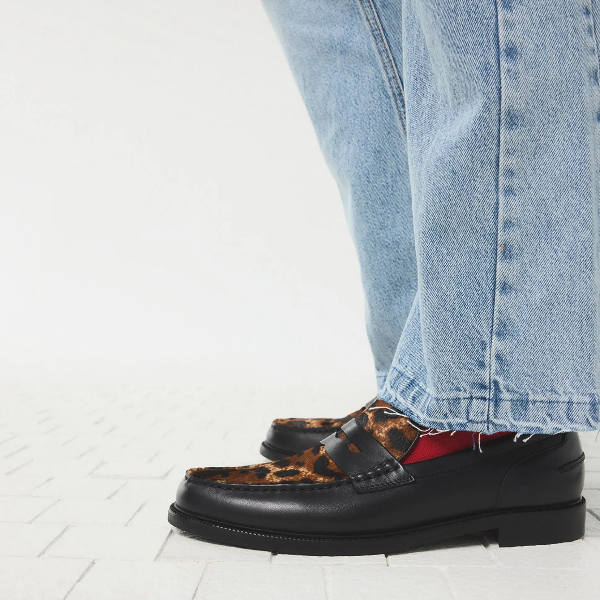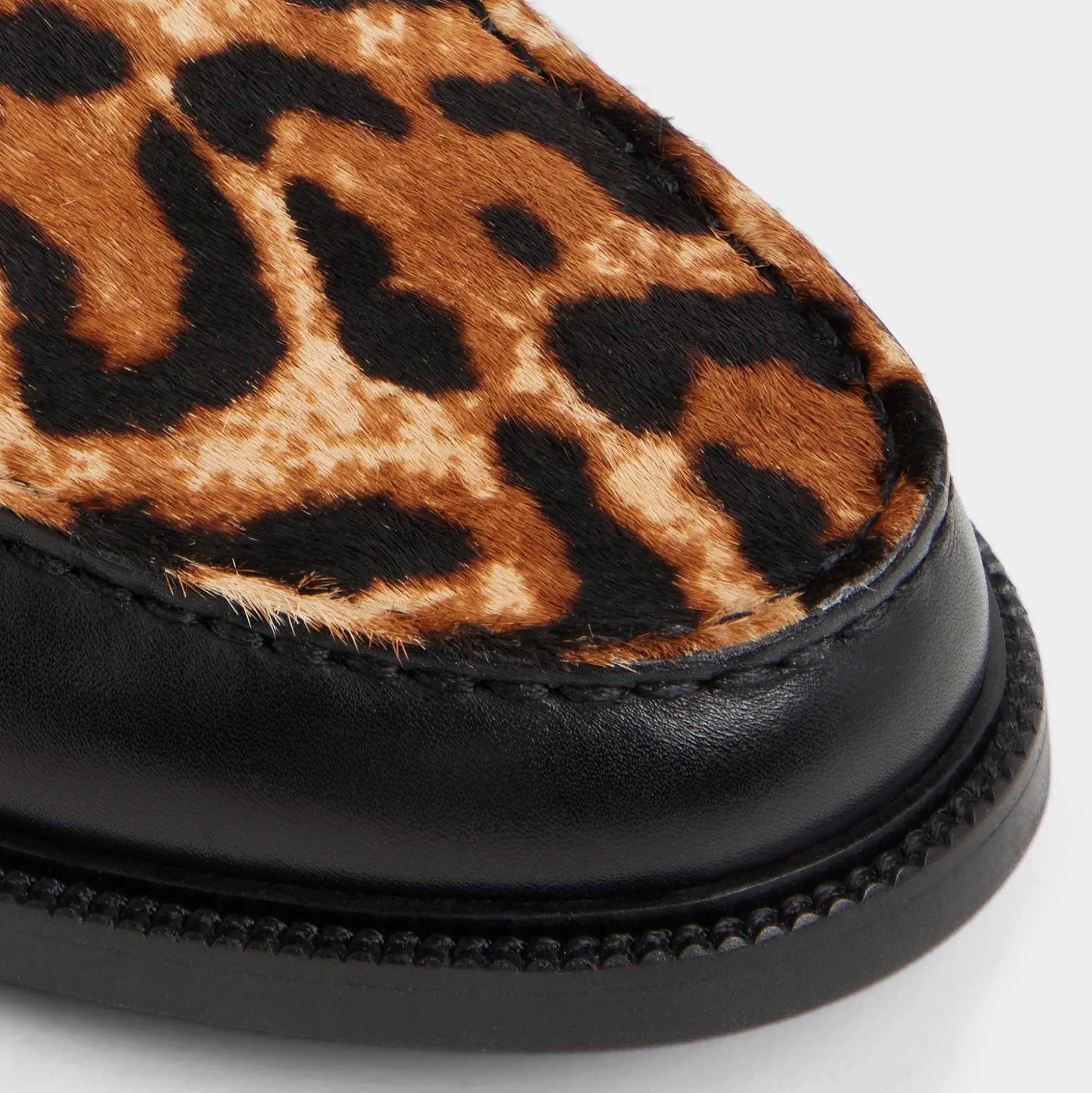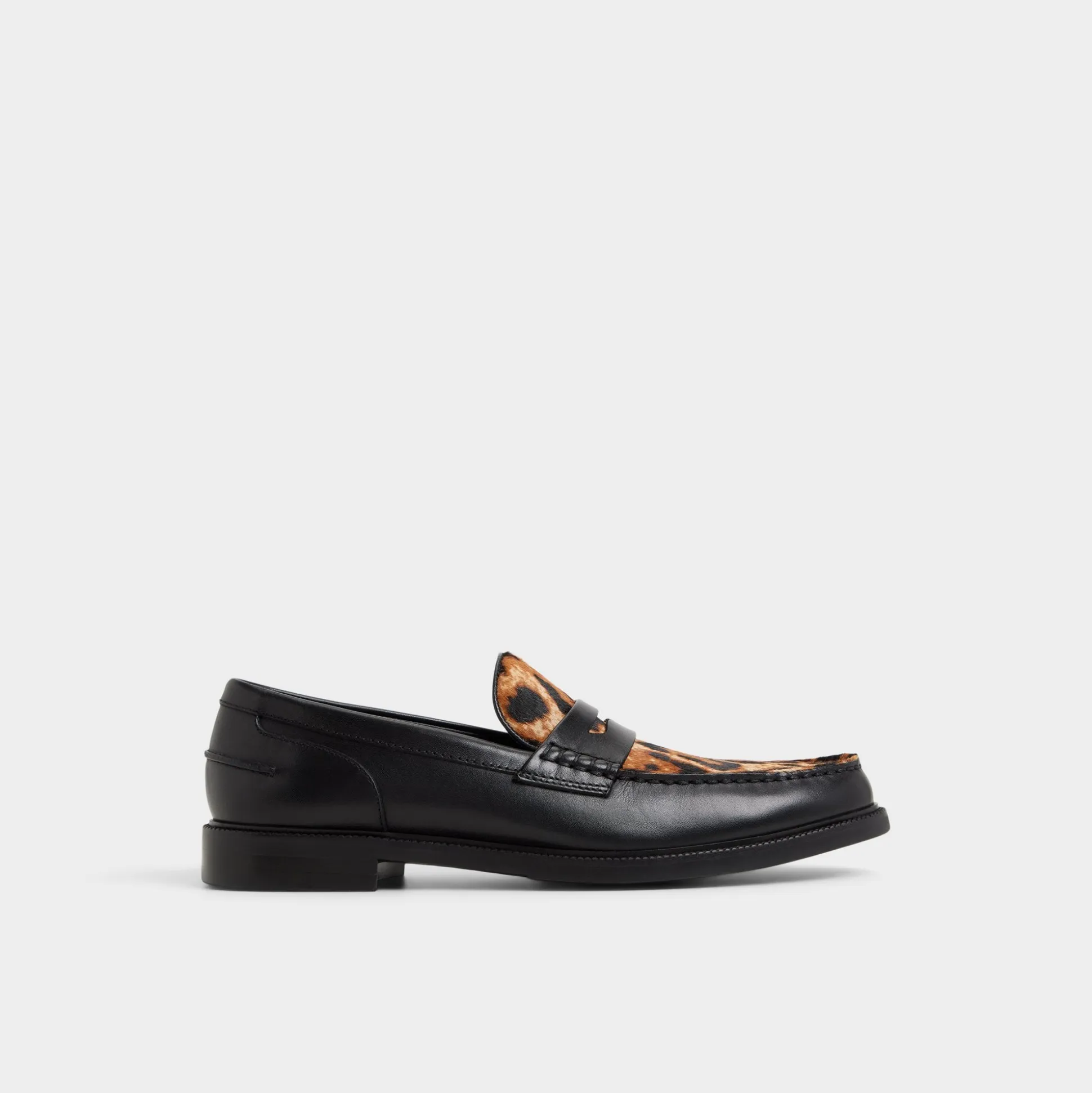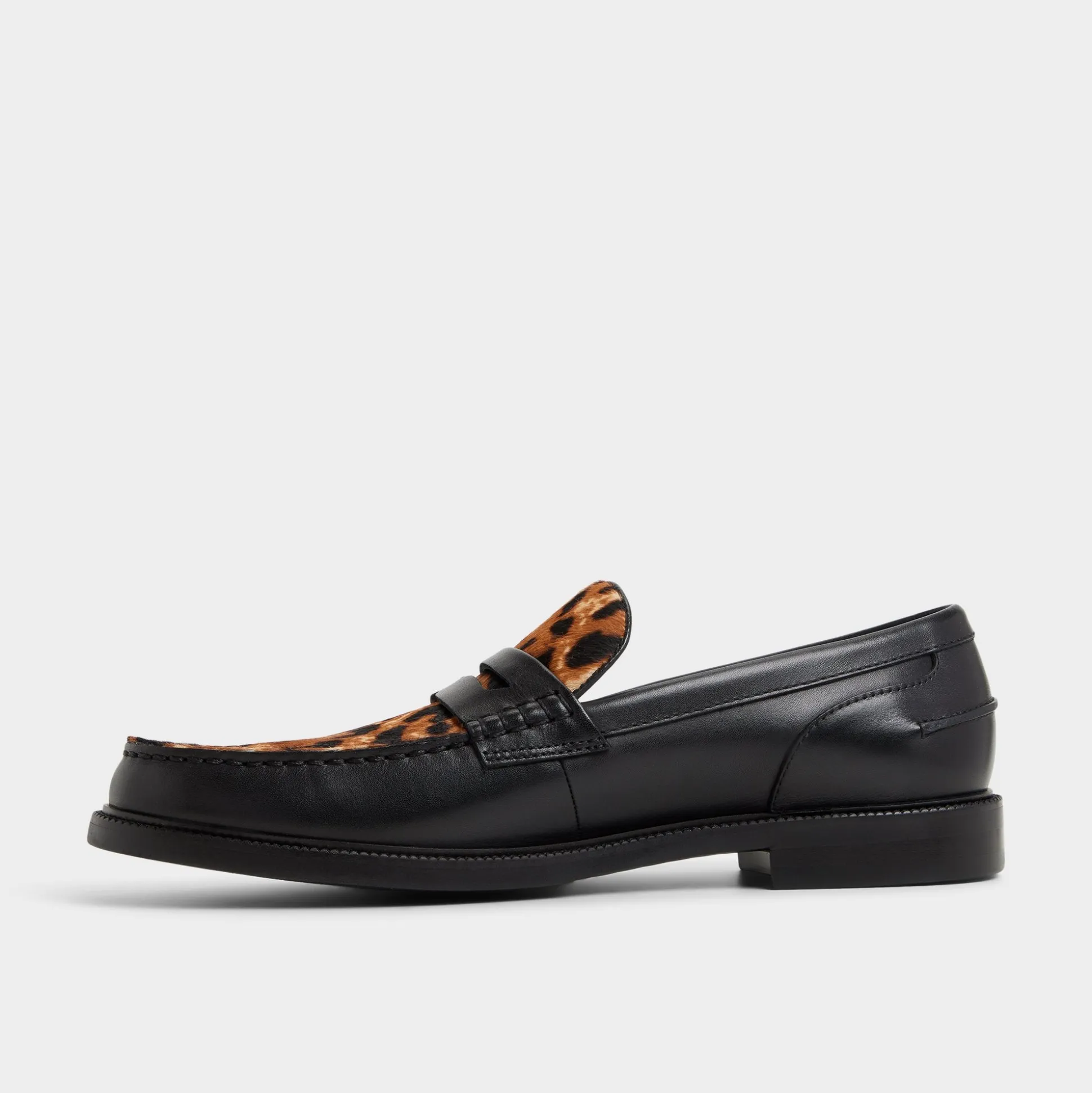 Leopard haircalf on this penny loafer contrasts with leather, delivering an edge that stands out in any room you walk into. Pair with cropped trousers and a knit polo for gallery events, or style with denim and a tee for concert nights, letting the print do the talking.