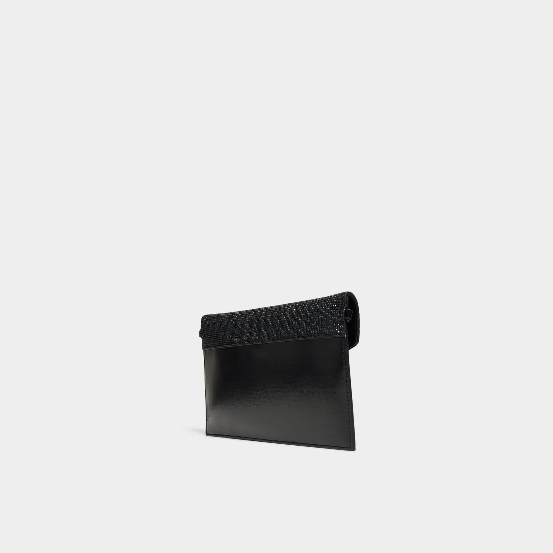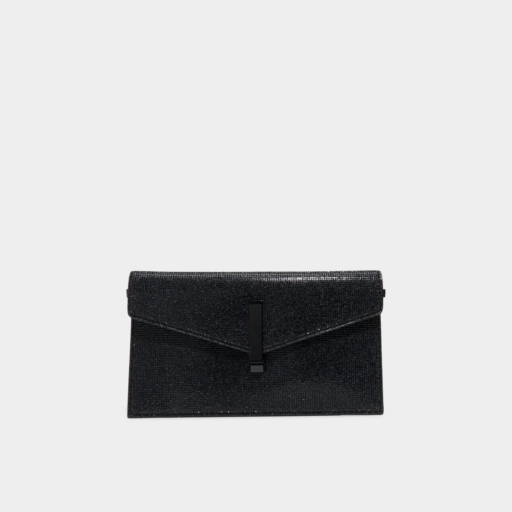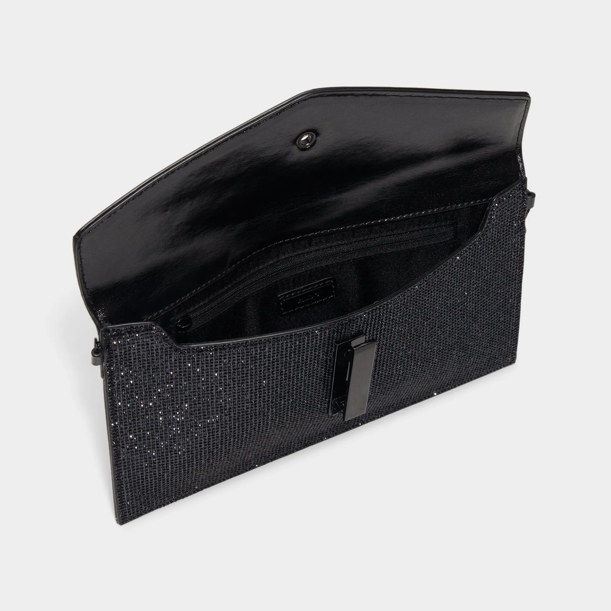 Midnight-sparkle micro beads cover this sleek envelope clutch, glinting under club lights, while a minimalist black bar clasp keeps cards and gloss secure. Clutch it with a satin slip for gala nights or tuck it under an oversized blazer and denim for rooftop hangs to add low-key shimmer.