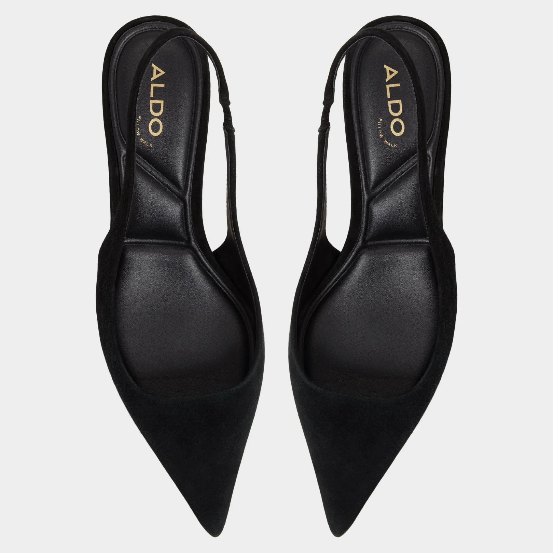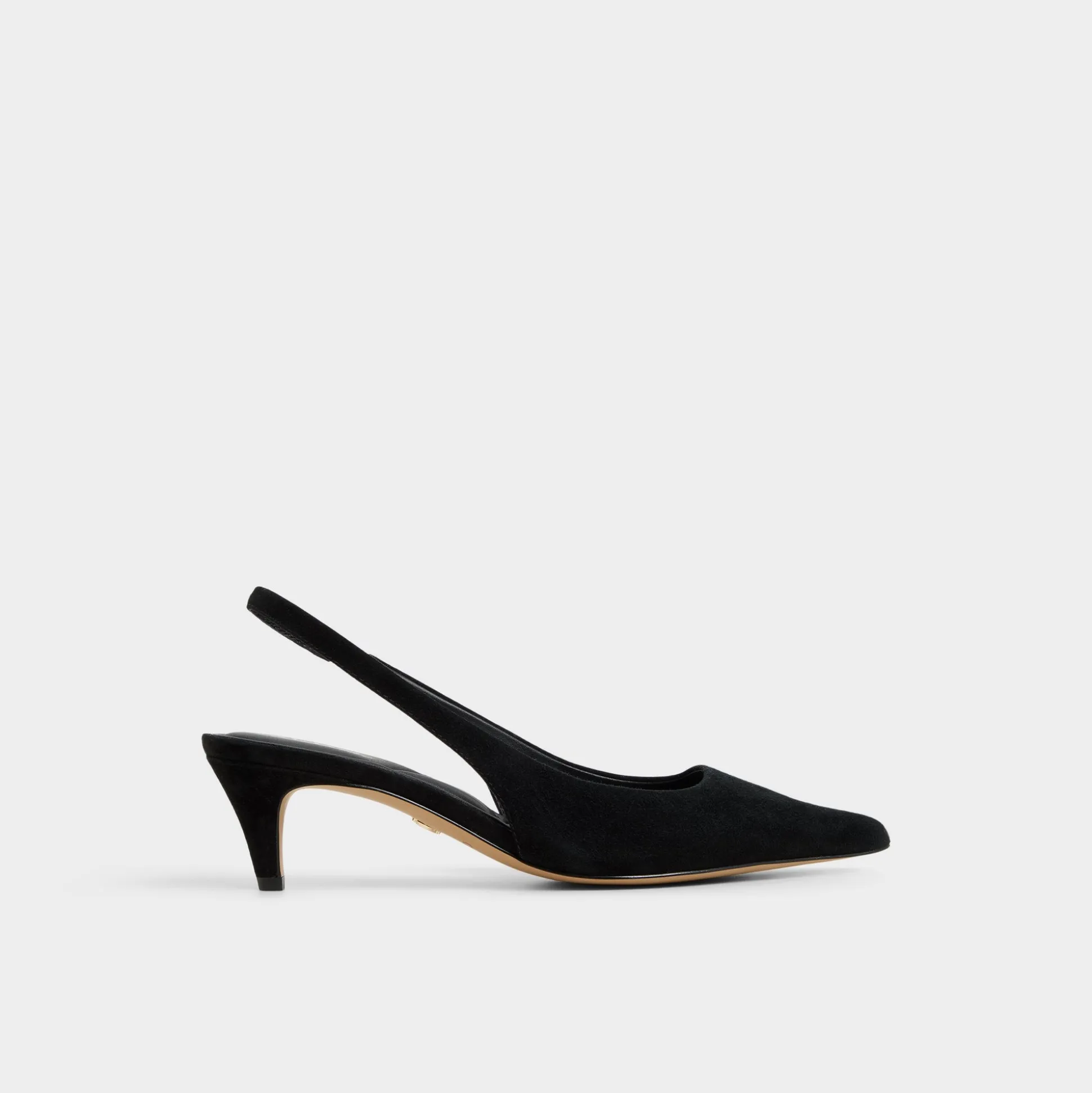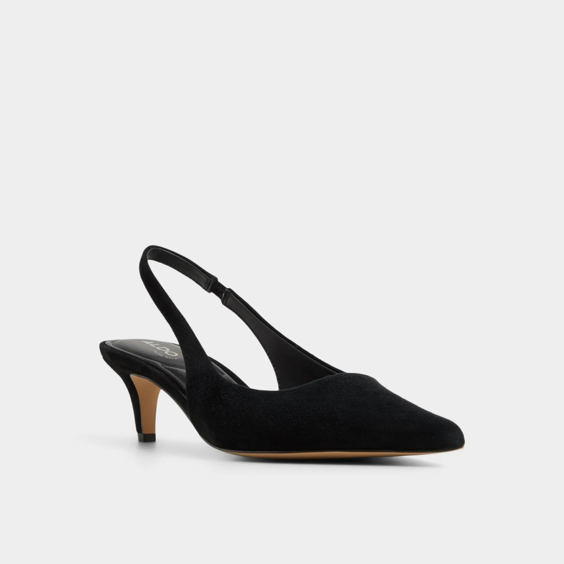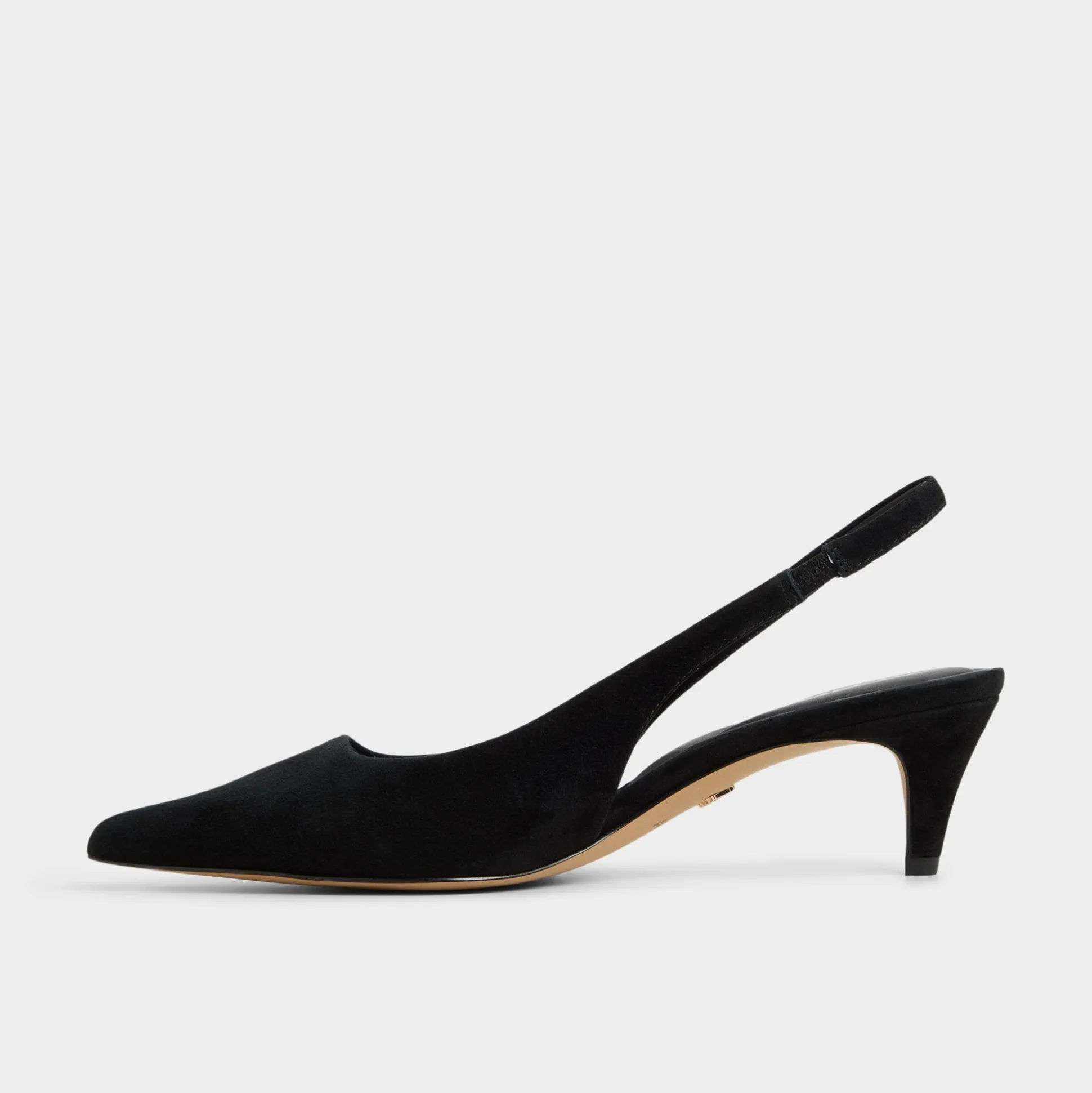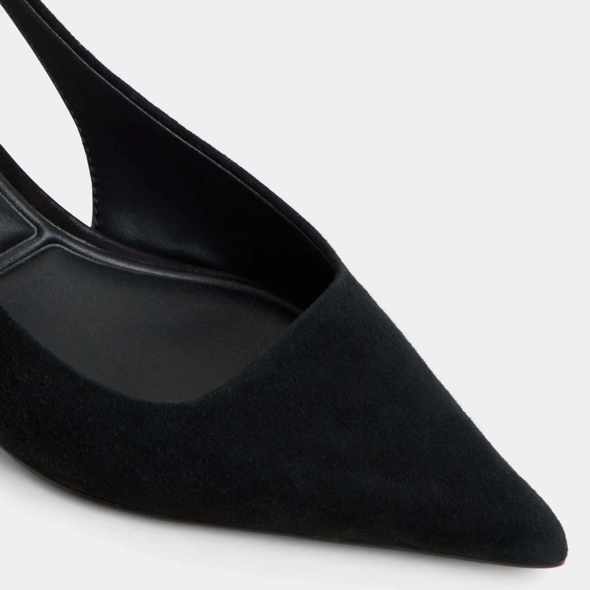 Velvety midnight depths wrap around pointed slingbacks, lending a hush of luxury and a lengthened line that makes every city stride feel deliberate and poised. Pair with cropped trousers for boardroom polish, or slip on under a satin slip as nightlife glows and the skyline lights up.