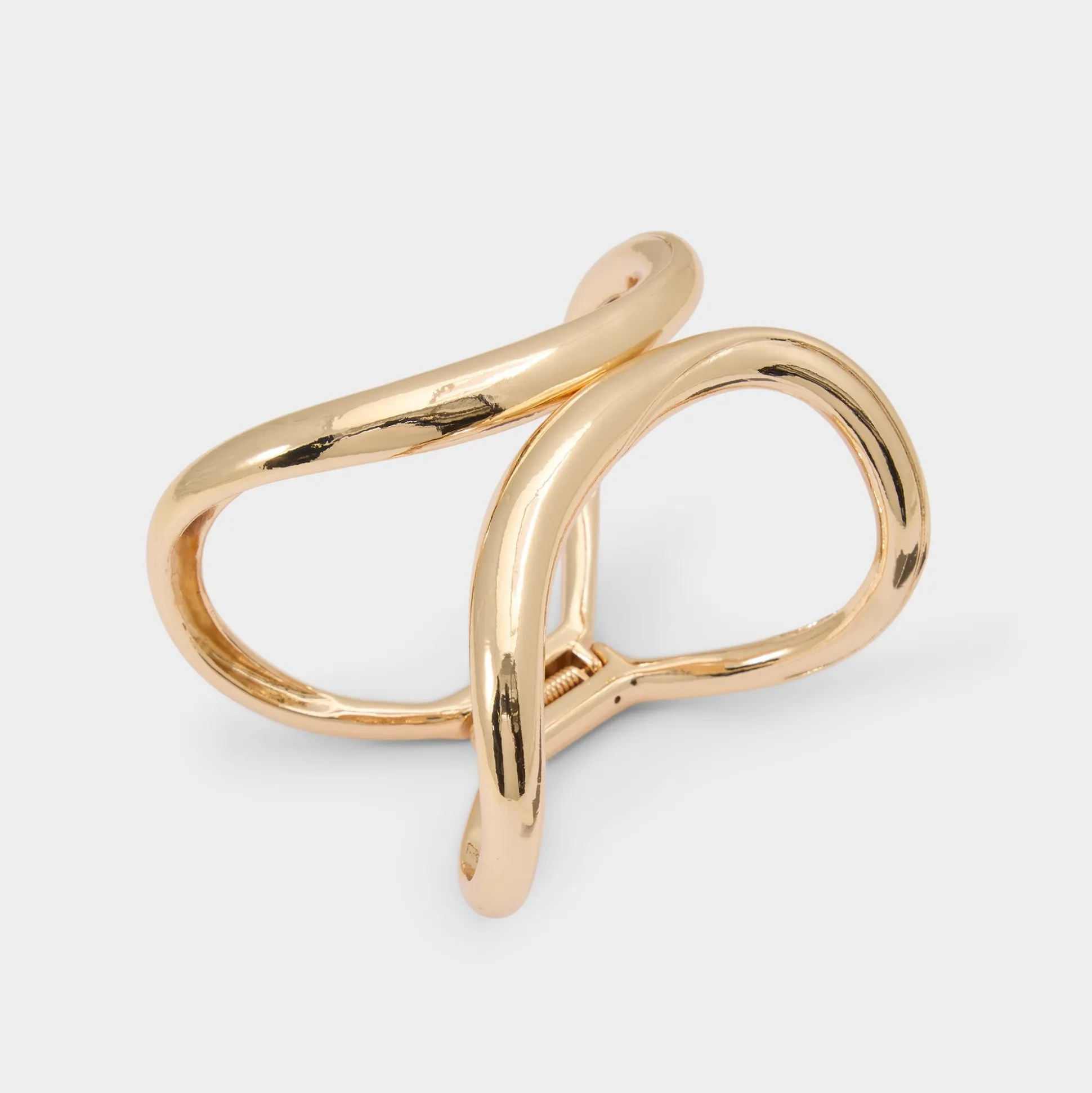 Sculptural twin bands loop into a fluid knot of polished gold that gleams at every gesture as an open-ended fit flexes comfortably from early brunches to late dance floors. Stack it beside skinny midi rings for gallery strolls or let it solo to frame a satin clutch at rooftop weddings.