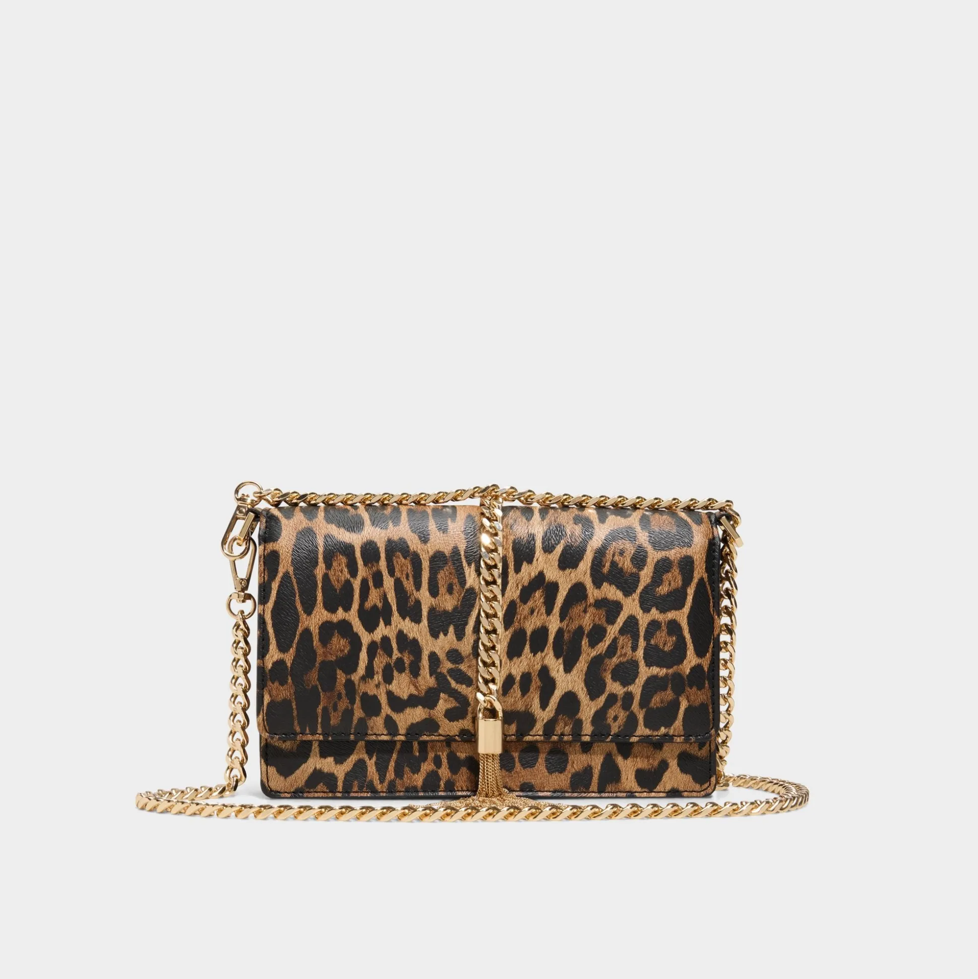 Leopard-print leather meets rope-chain glamour in this crossbody, a hands-free statement that turns errands into a moment of confidence, with a bold animal vibe and a kinetic sense of movement that follows you through the day. Pair it with a tailored blazer for drinks, or sling it with a jumpsuit for dance nights.