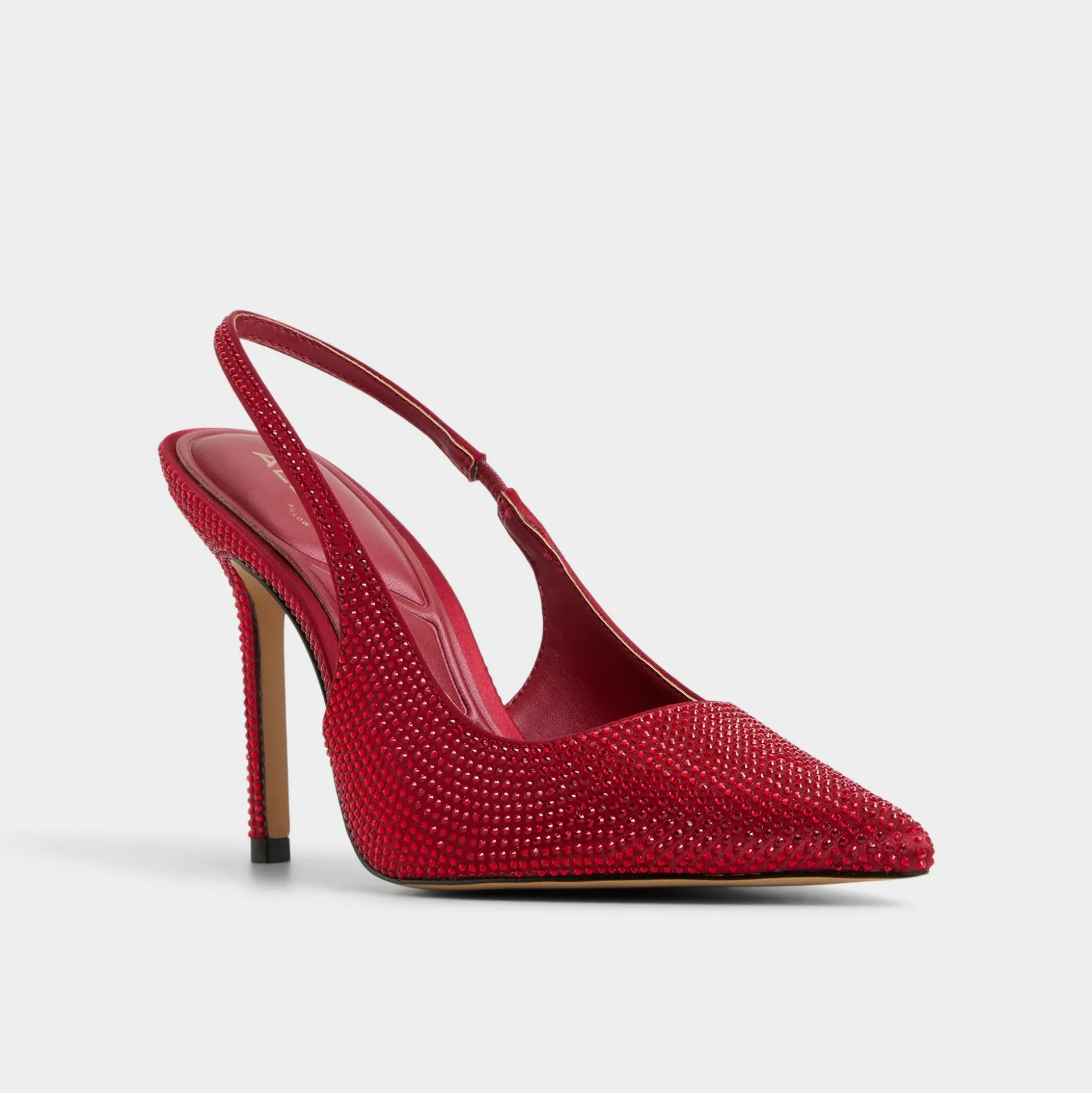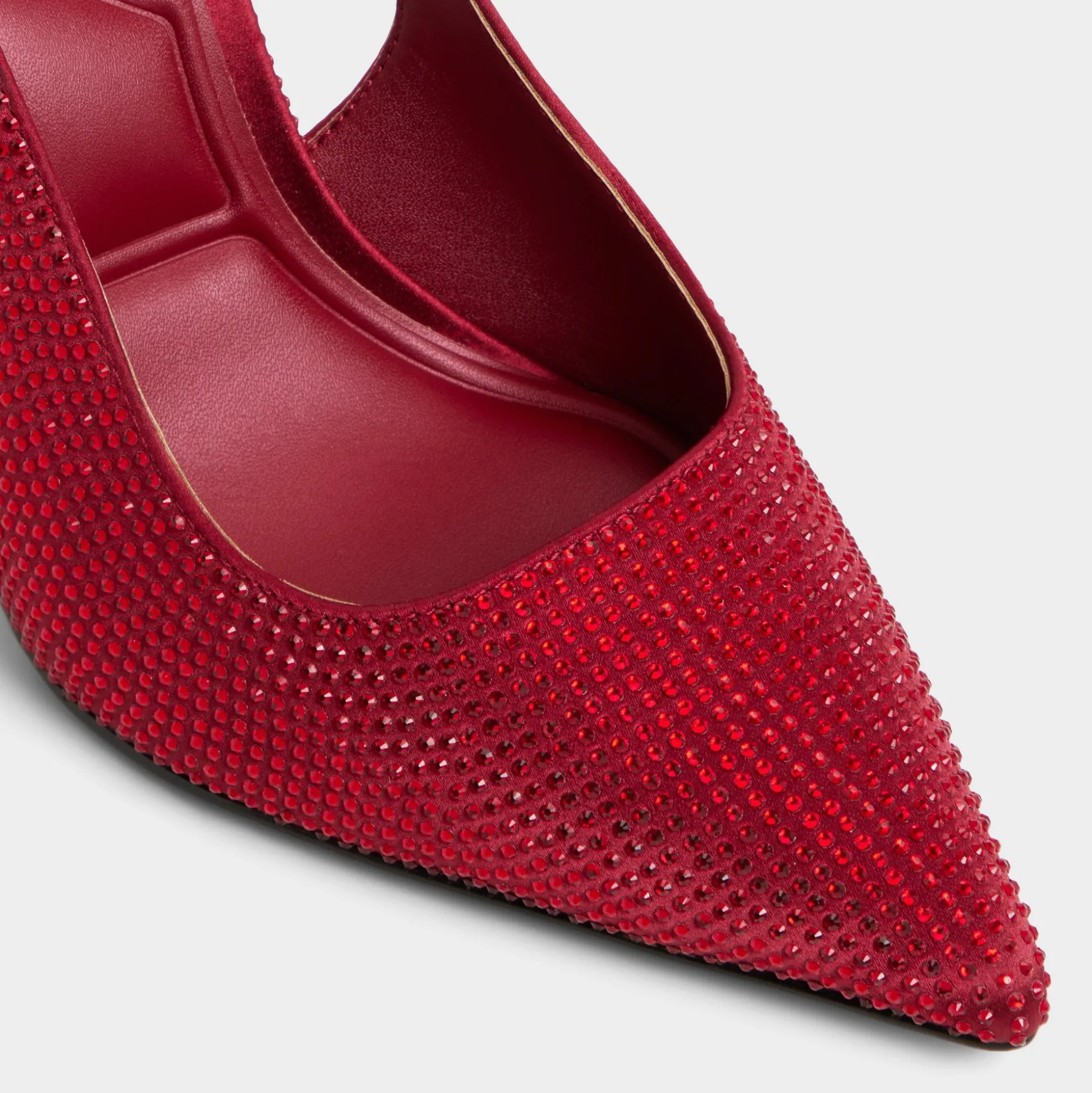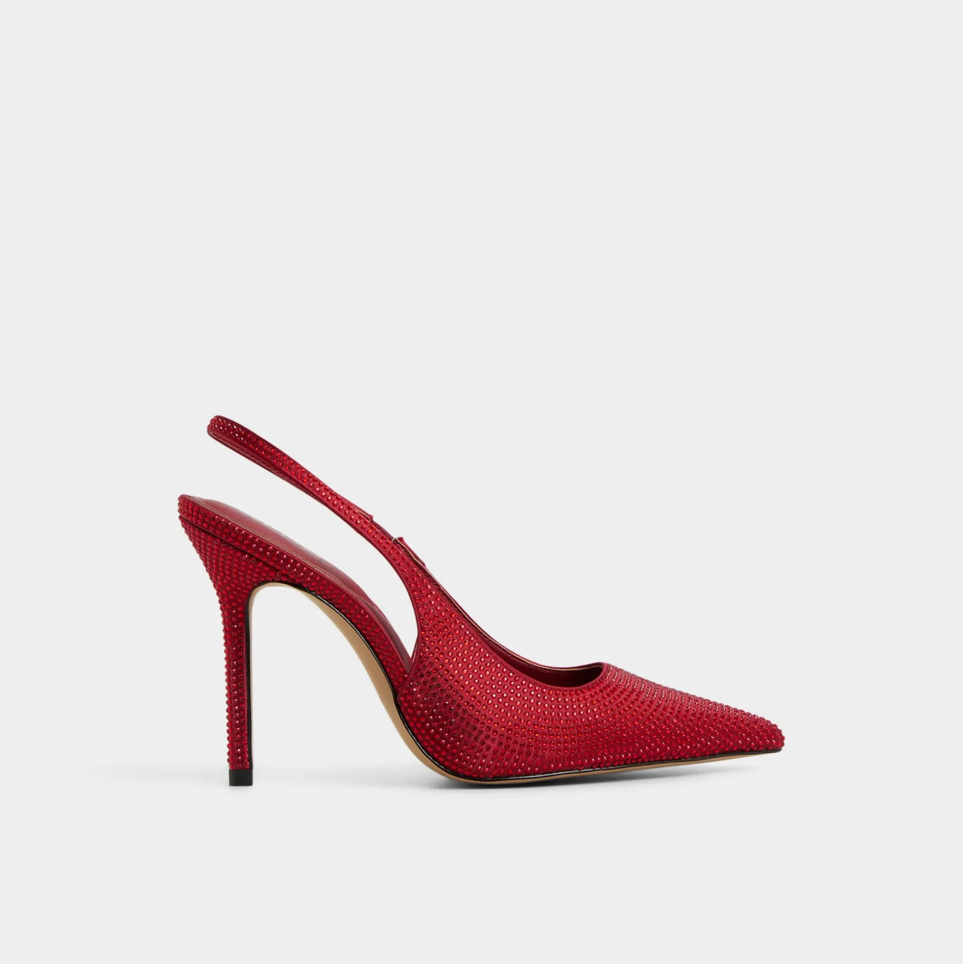 Crystal-dusted slingback catches city light as a razor-thin stiletto rises above a cushioned lining, turning every walk from corridor to club into moments of confident, glide-ready polish for nights that sparkle without shouting. Pair with a tailored ivory suit for gallery openings, or swap in a silky mini when midnight invitations turn up the volume.