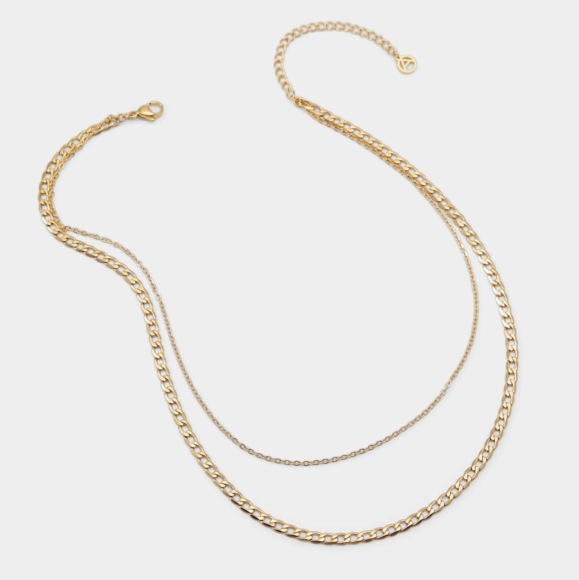 Featuring a double-chain design, this water-resistant necklace combines a bold chain with a delicate finer chain for a layered look that’s effortlessly chic.