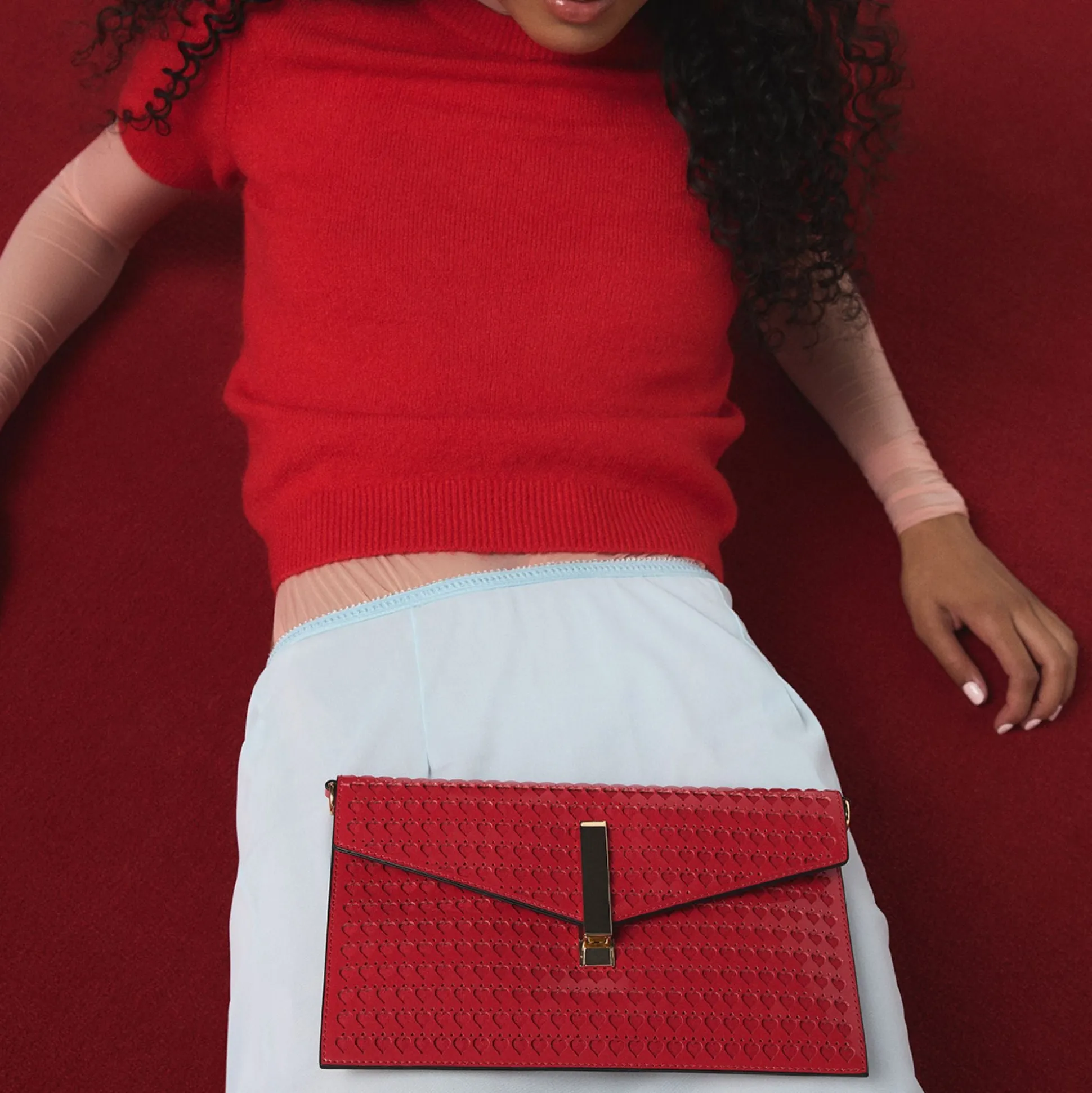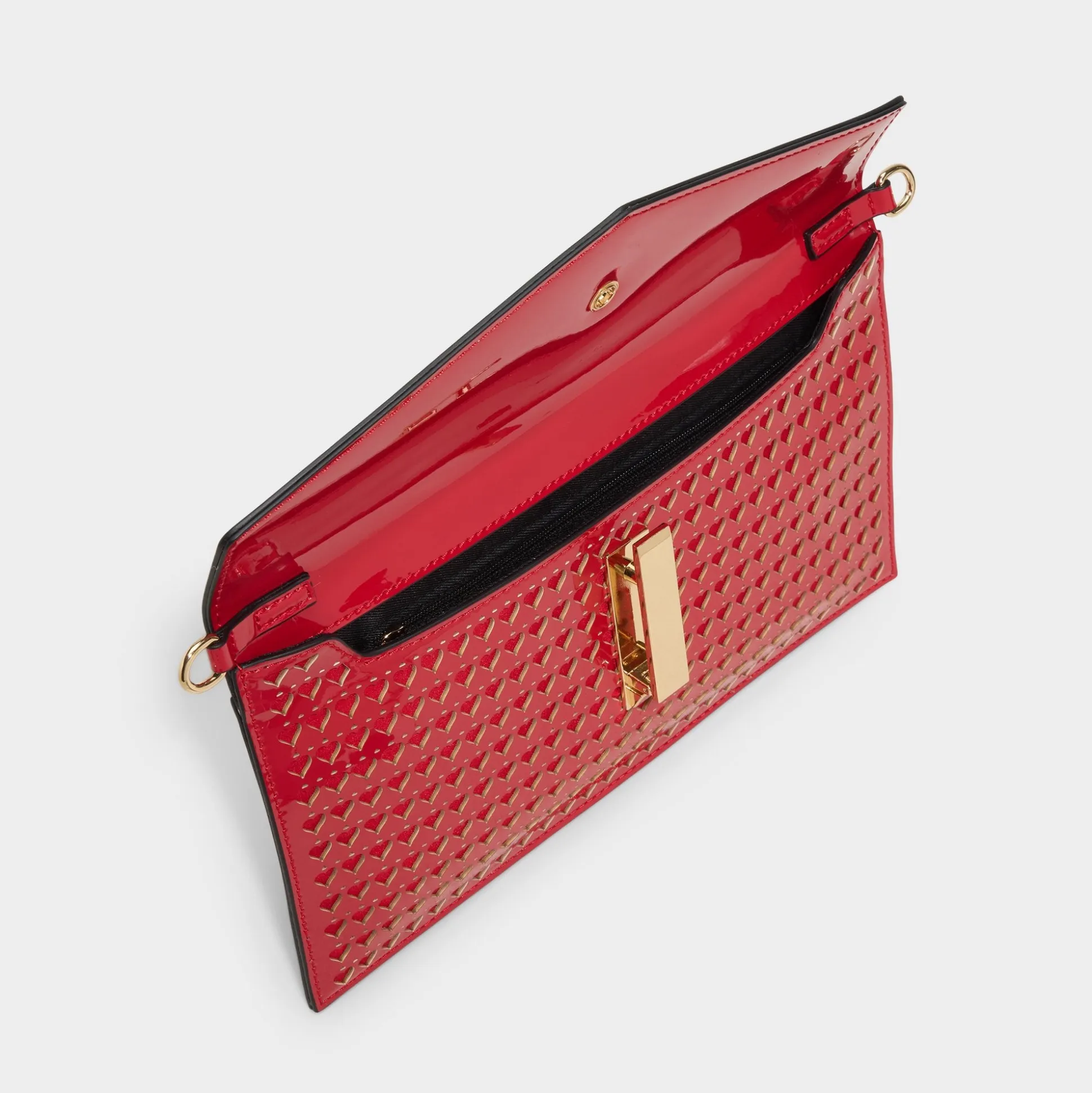 Make a bold statement with the Loveclutchh, a striking hot red heart burnout clutch designed for romance and confidence. The intricate burnout detailing adds texture and visual interest to this eye-catching piece. Carry it as a standalone clutch for evening events or attach the included crossbody strap for versatile, hands-free wear. Whether you’re celebrating love or expressing your passionate side, this Valentine’s Day essential delivers style with attitude.