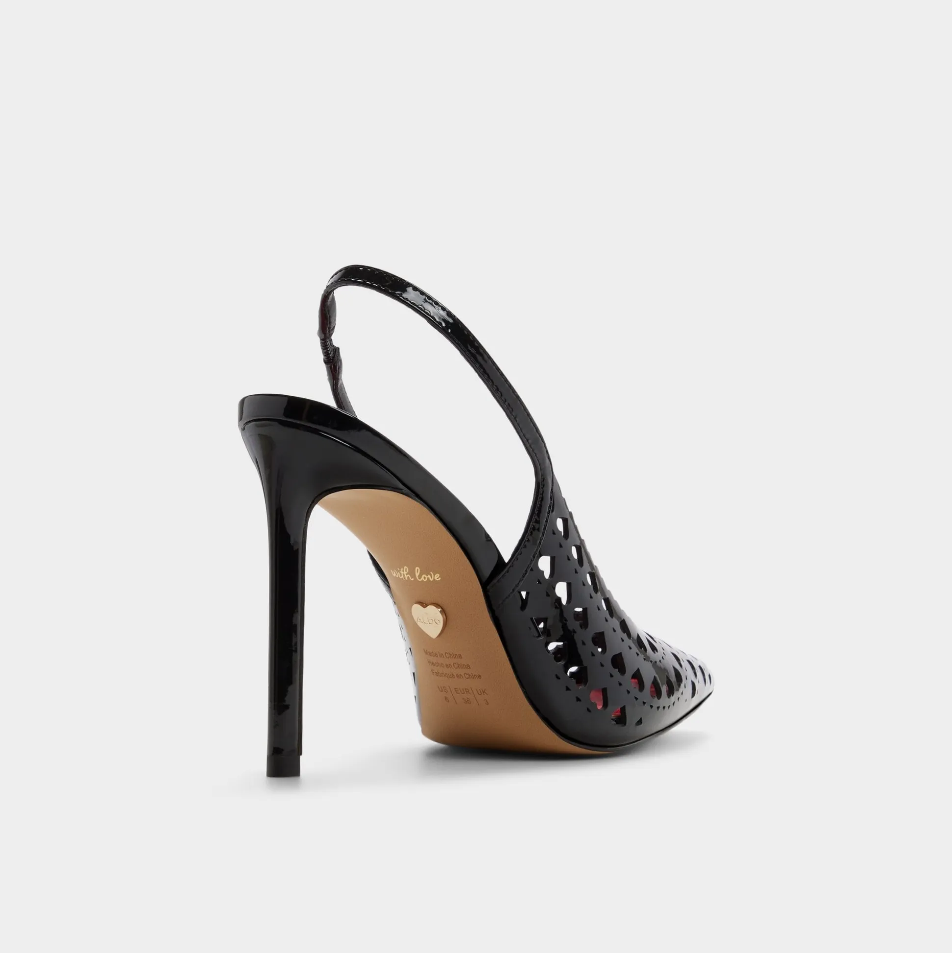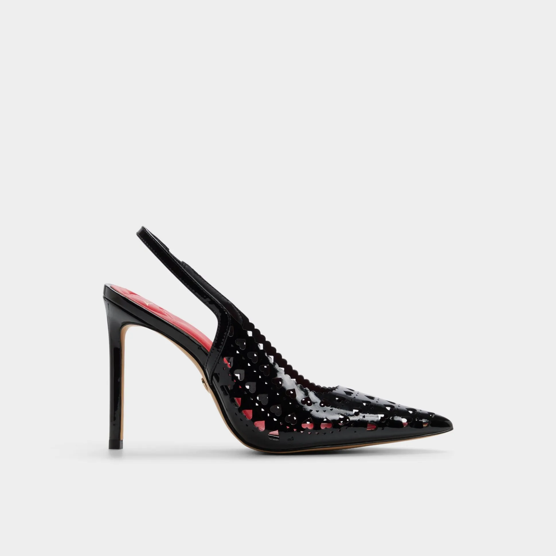 Captivate hearts this season in the Lovesling—a sultry black slingback heel that turns heads. Delicate heart burnout details add romantic flair to the sleek silhouette, creating an effortlessly sexy look perfect for date night or special occasions. The slingback design offers secure comfort while the refined heel elevates any ensemble. Whether you’re celebrating love or simply embracing your confident side, this statement shoe delivers timeless allure with a modern edge.
